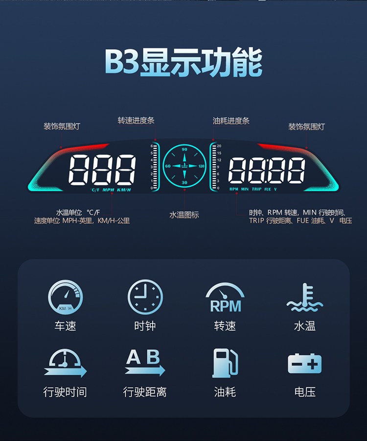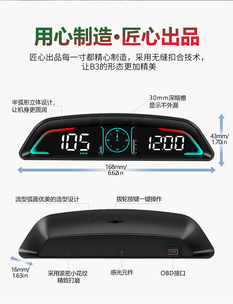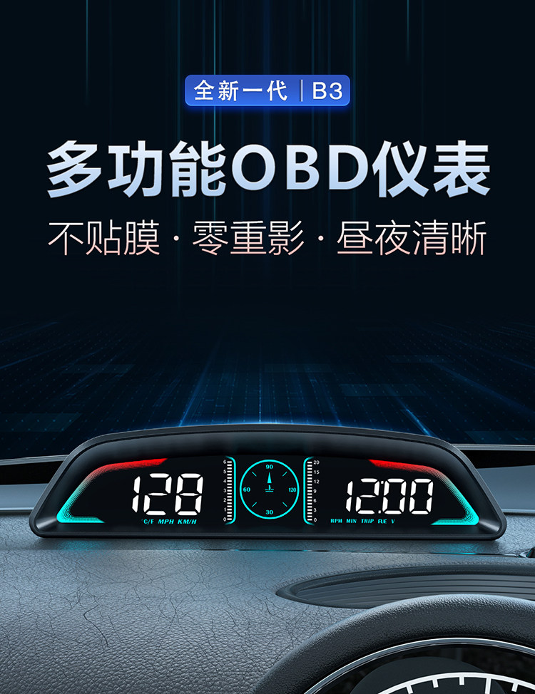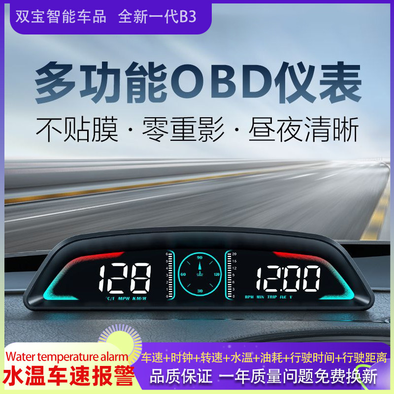 Car head-up display obd multi-function instrument hud car speed water temperature fuel consumption speed no ghosting modified b3