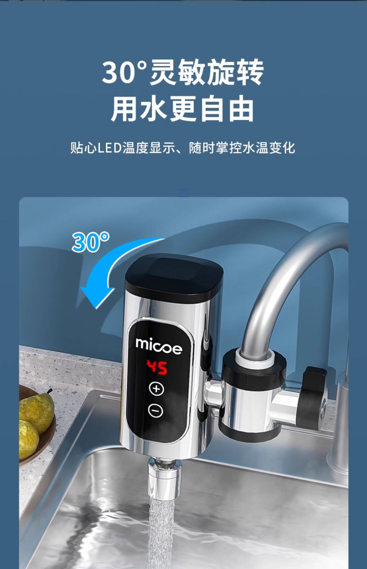 Four Seasons Muge Electric Hot Water Faucet Instant Heating Type for Balcony and Kitchen, No Installation Required, Water Heater for Tap Water