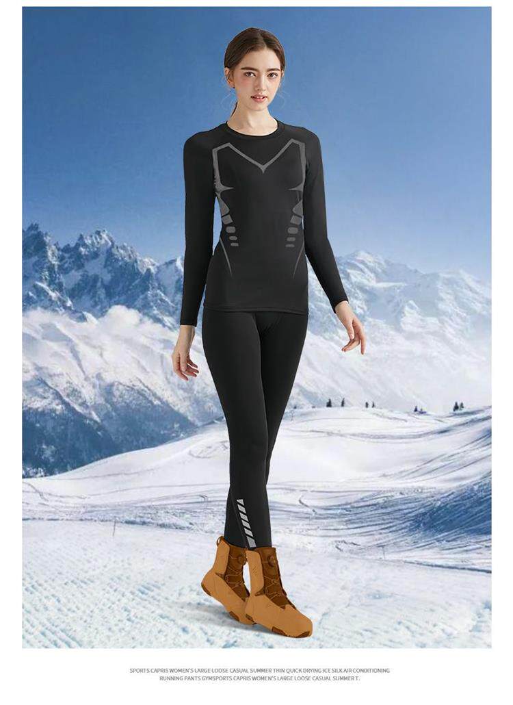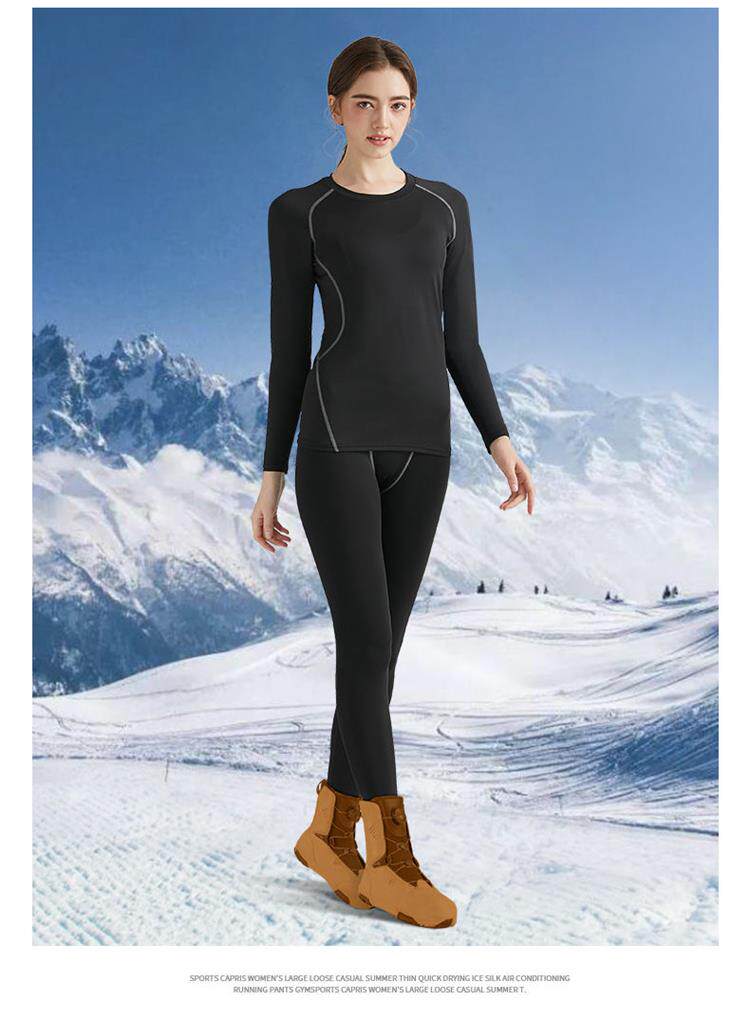 Quick-drying clothing women's ski thermal underwear winter fleece yoga suit mountaineering outdoor sweat-absorbent sports running top