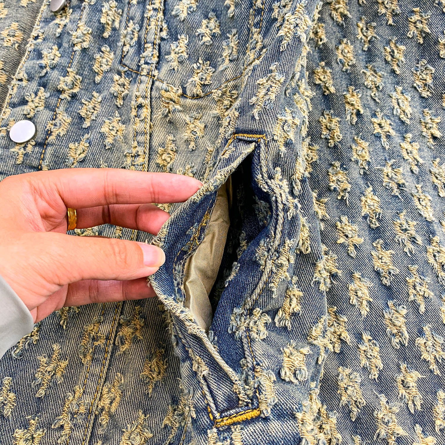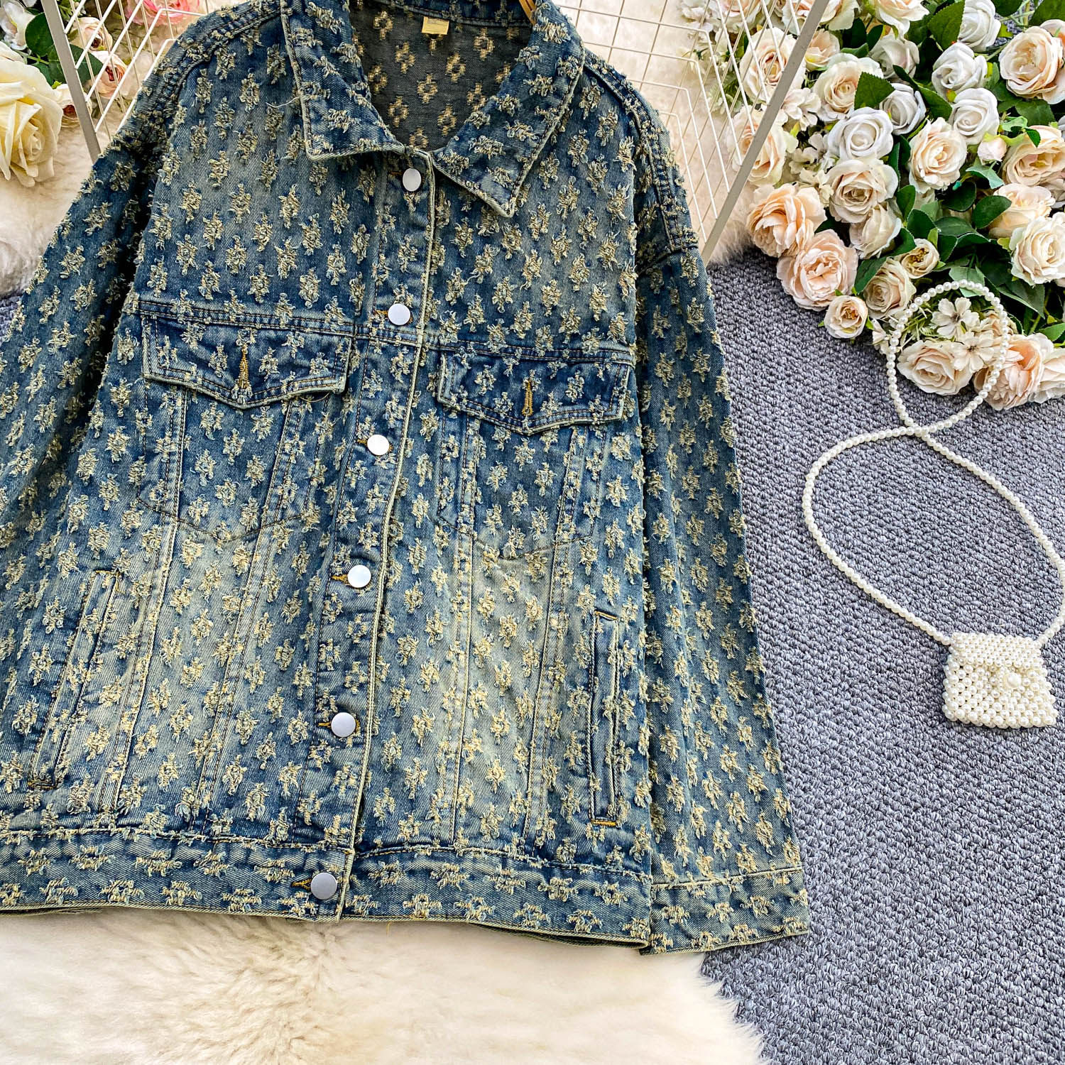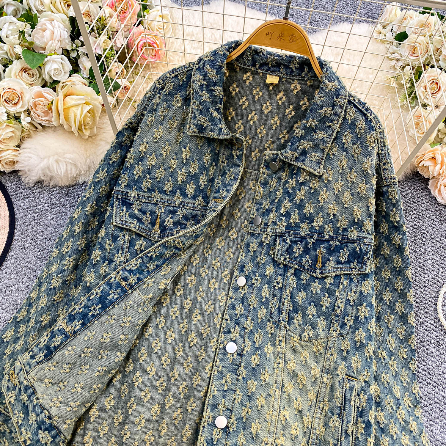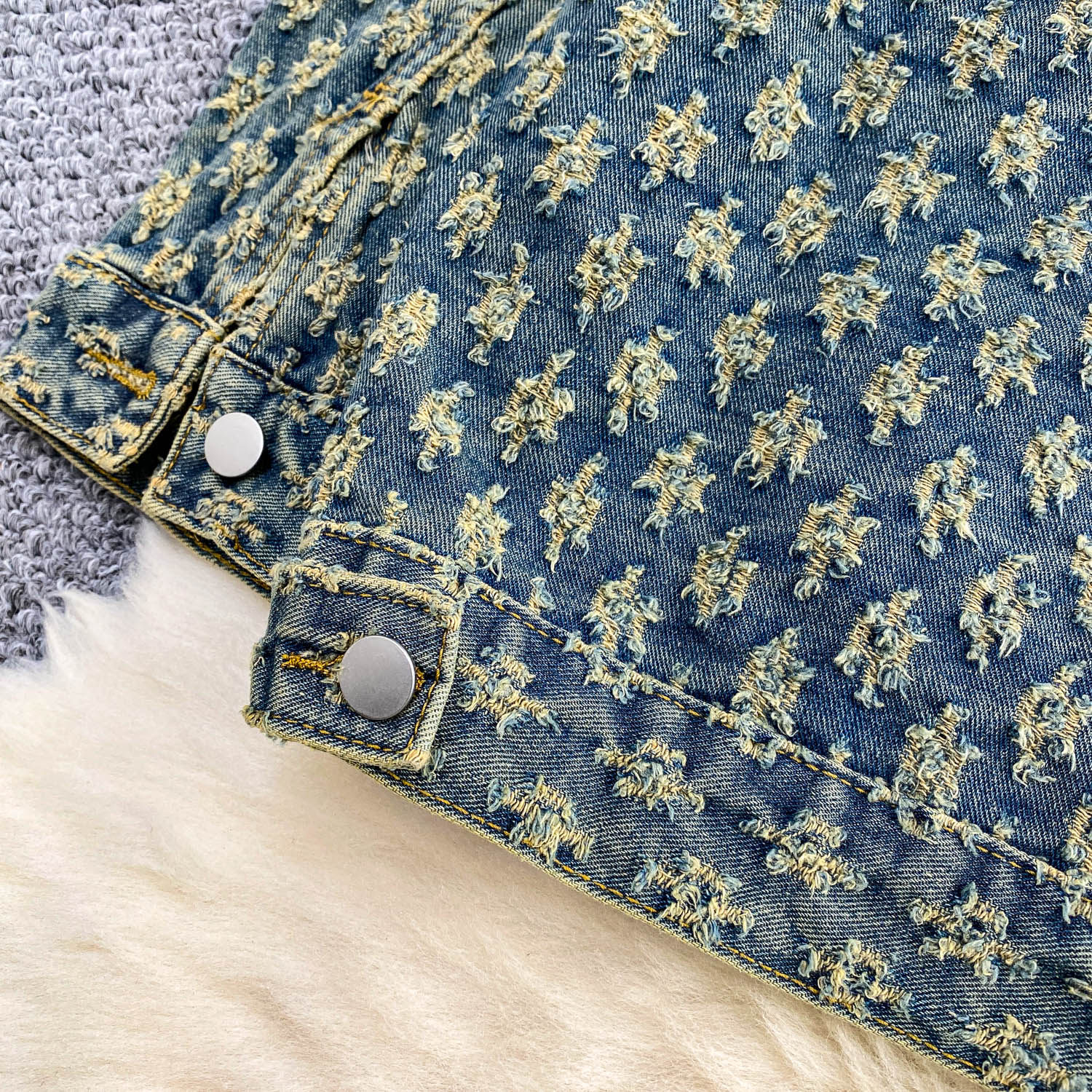 American Retro Distressed Fringed Denim Jacket for Women, Autumn and Winter Niche Street Fashion, Loose and Slimming Top, Trendy
