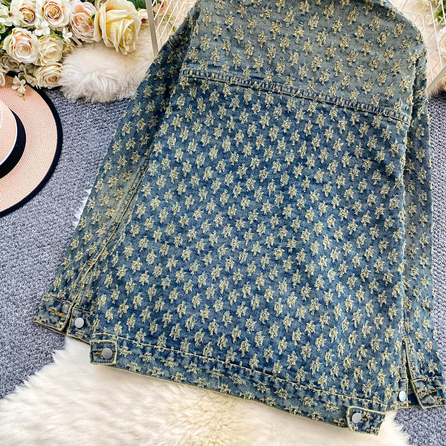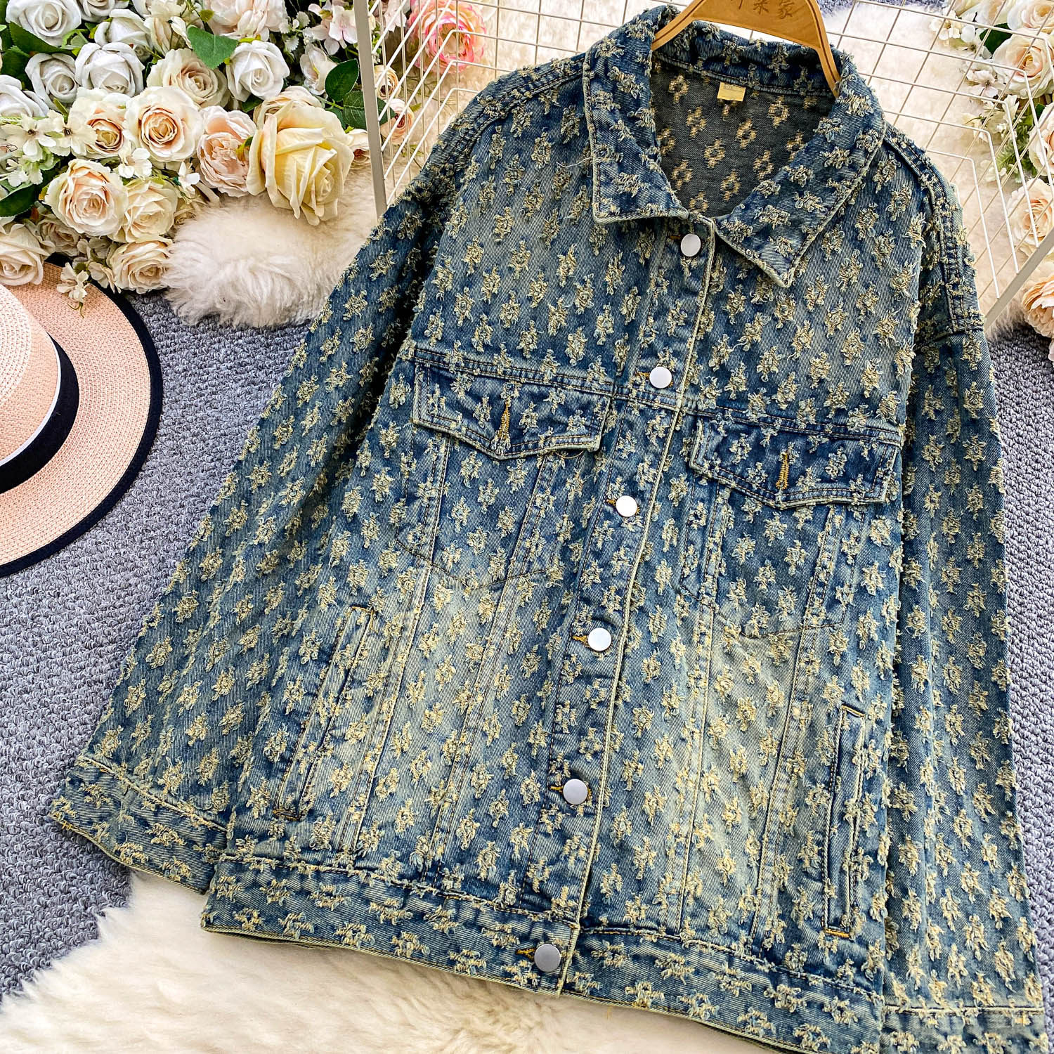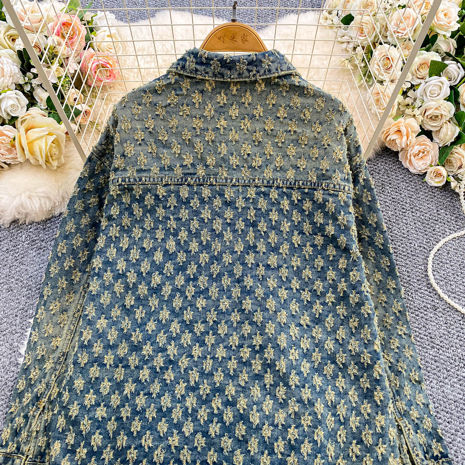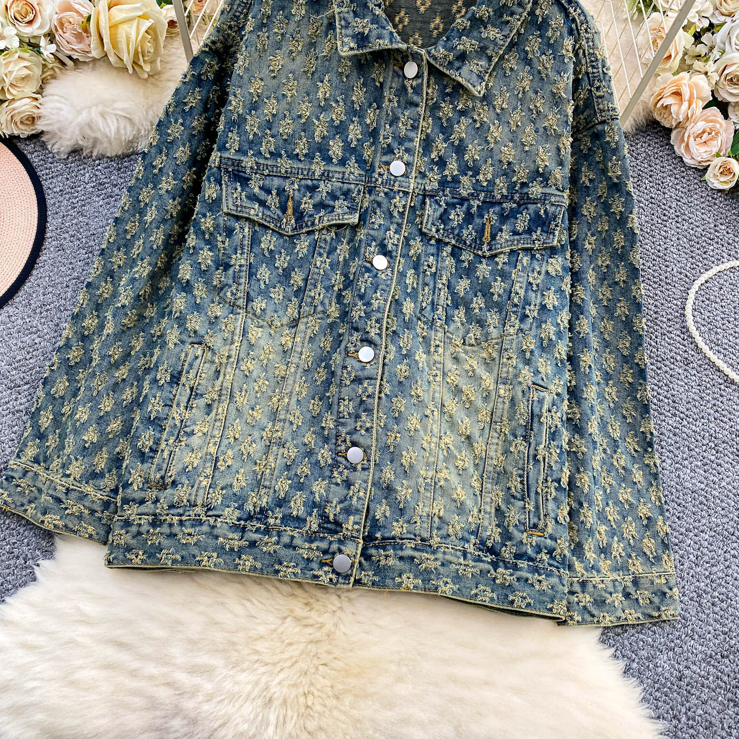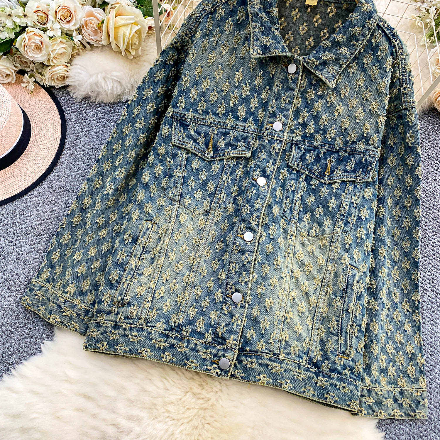 American Retro Distressed Fringed Denim Jacket for Women, Autumn and Winter Niche Street Fashion, Loose and Slimming Top, Trendy