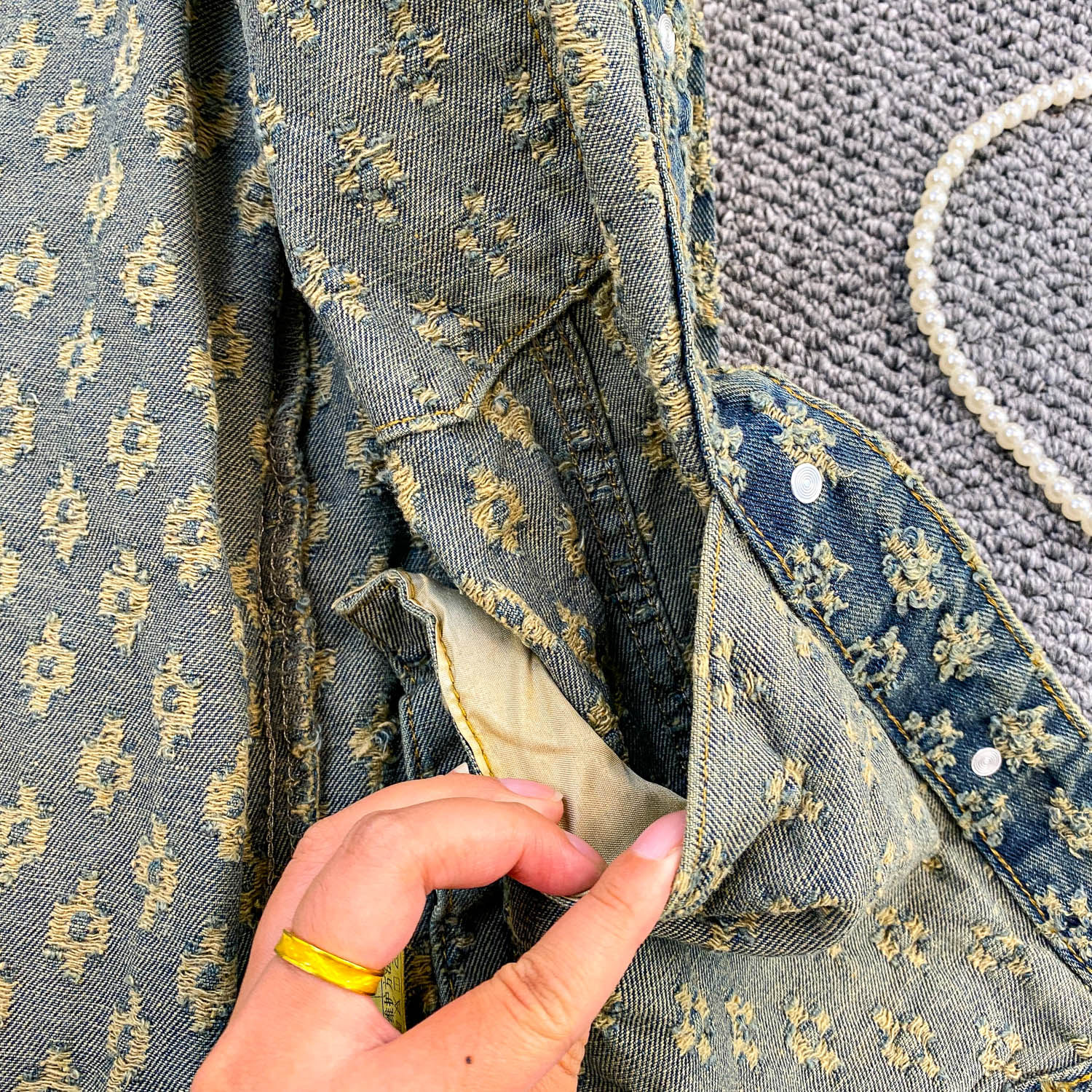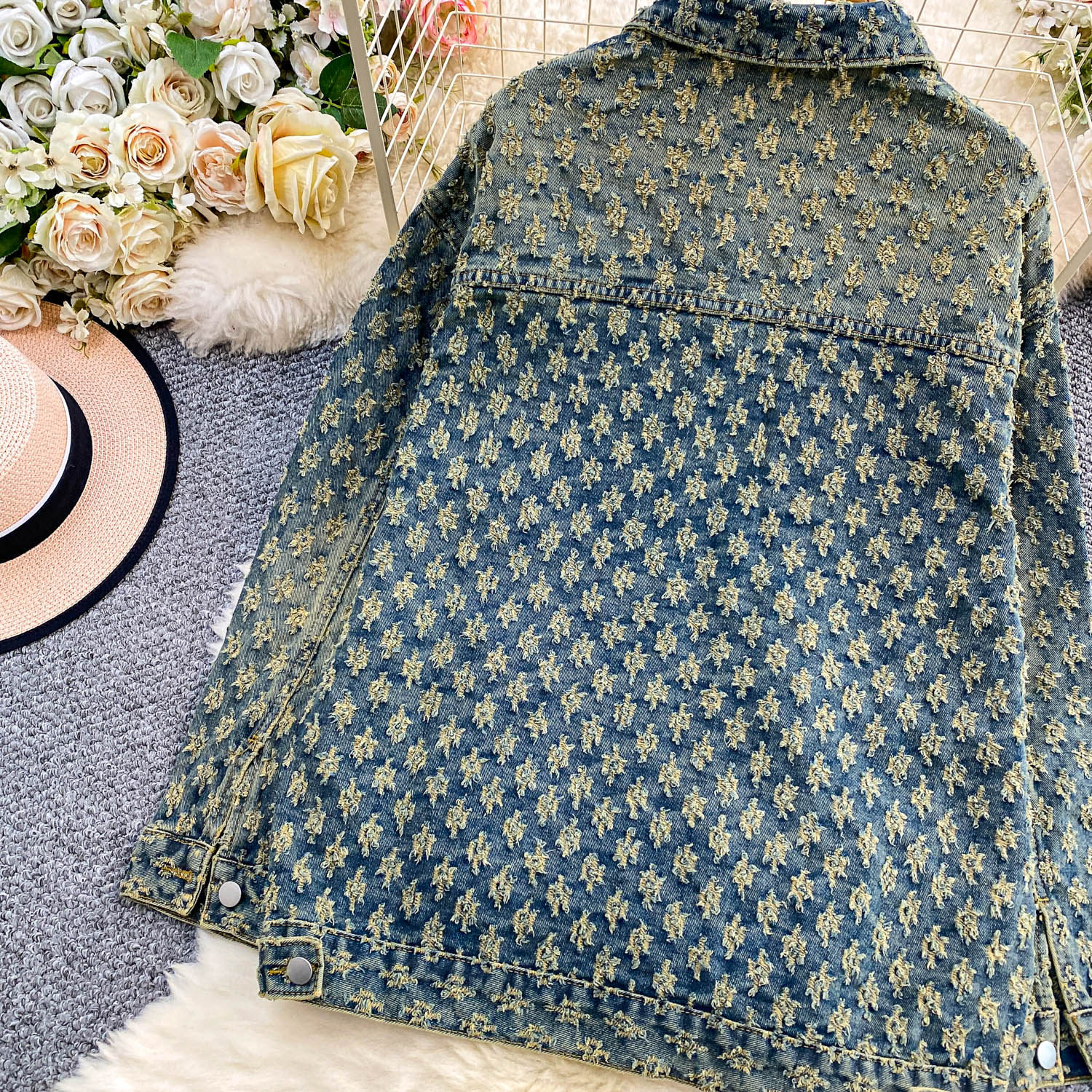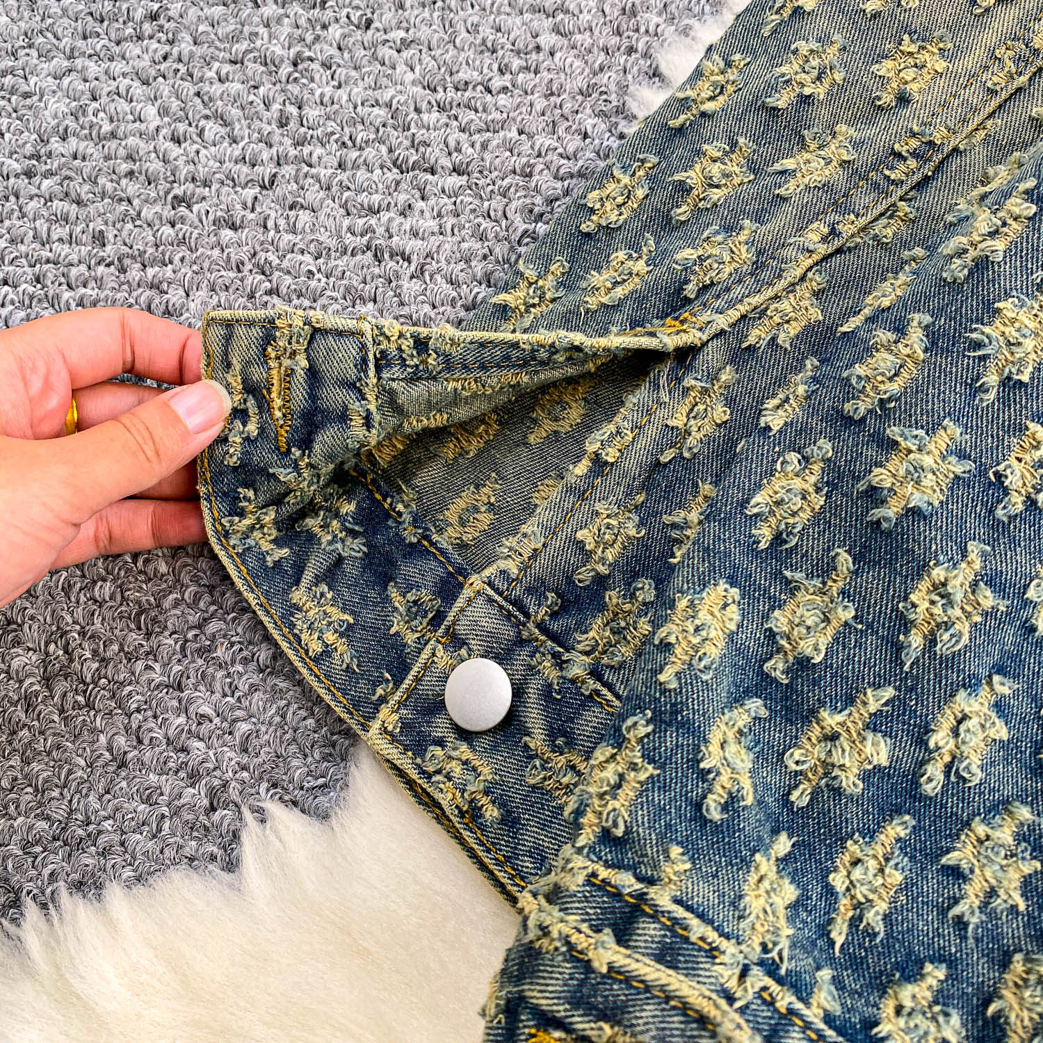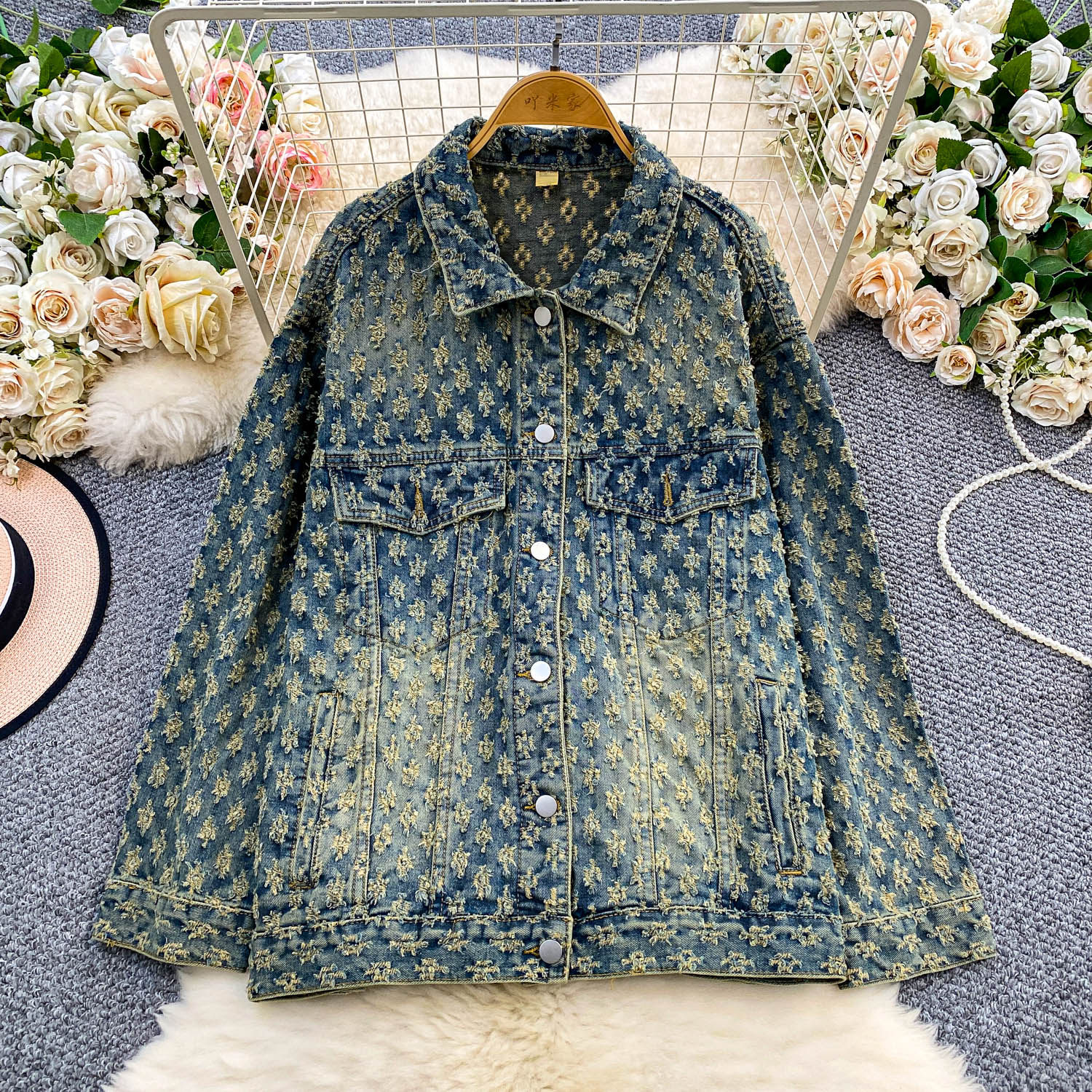 American Retro Distressed Fringed Denim Jacket for Women, Autumn and Winter Niche Street Fashion, Loose and Slimming Top, Trendy