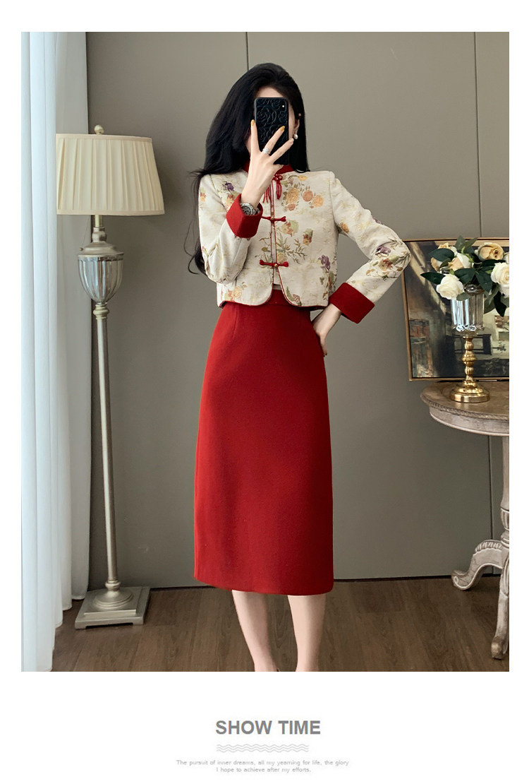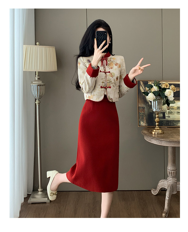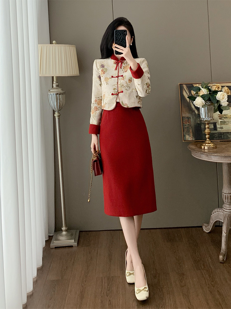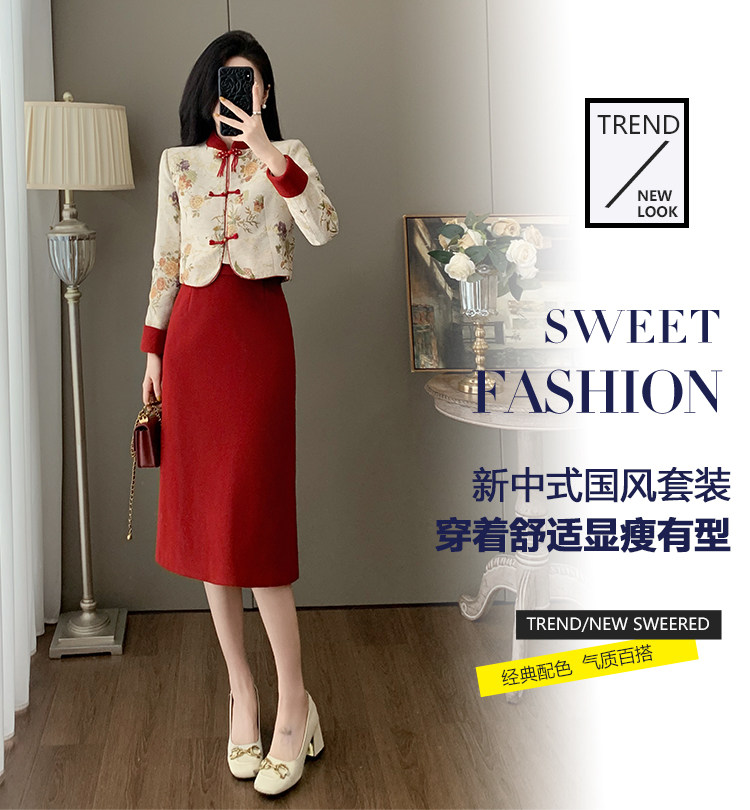 French-Style Socialite Fashion, Light Luxury, Modernized New Chinese Style, National Style, Button-Up Top, Women's Suit, Jacquard Skirt, Two-Piece Set