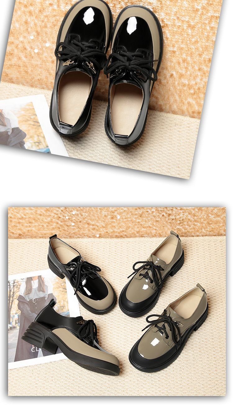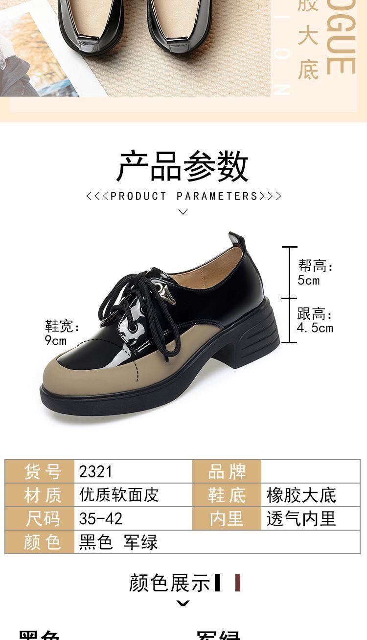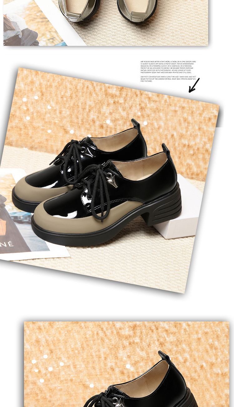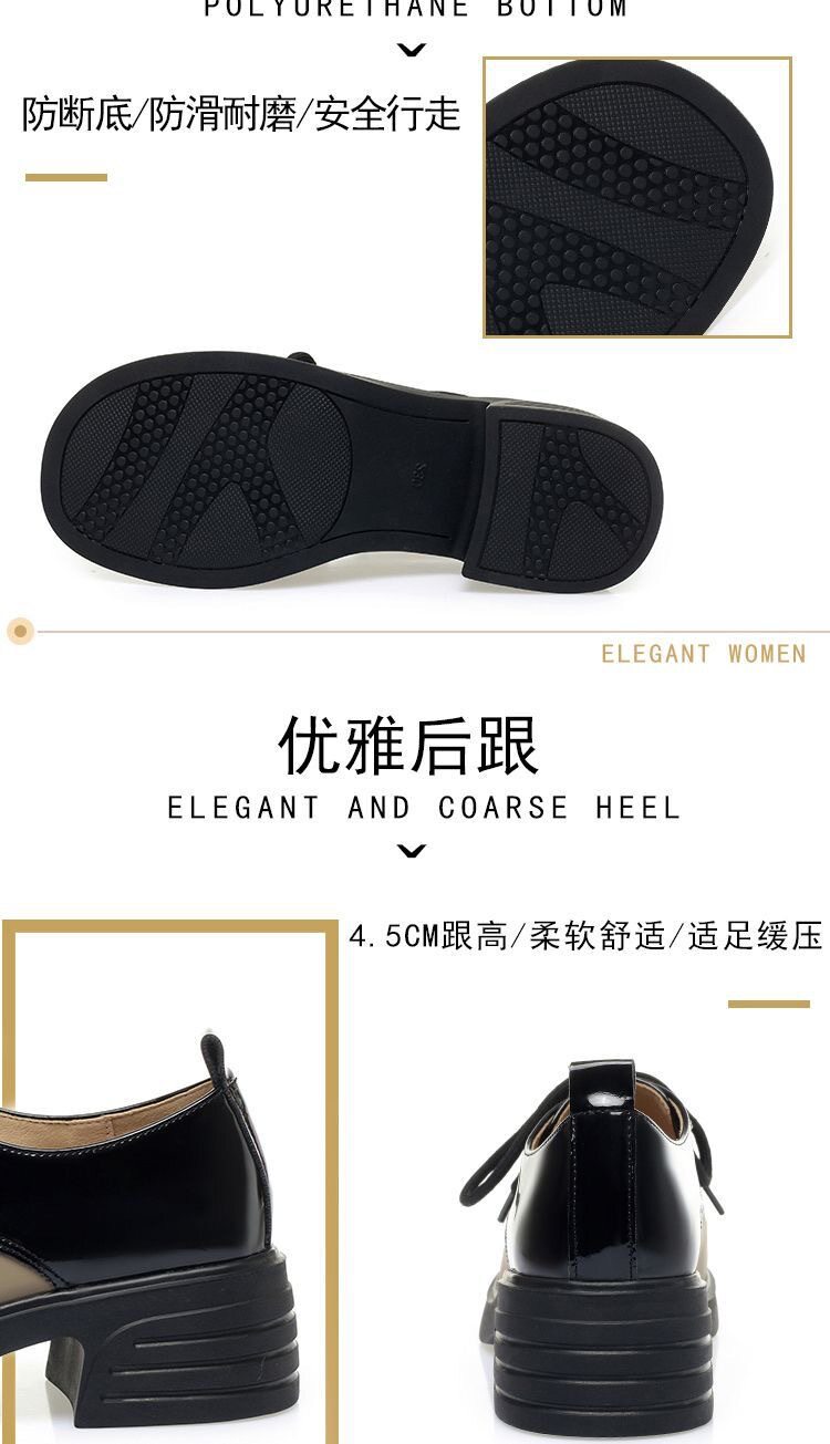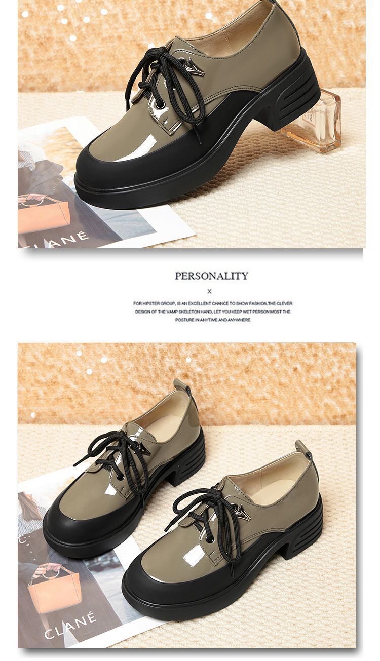 British Style Color-Block Lace-Up Leather Shoes 2025 Spring and Autumn New Versatile Women's Shoes with Chunky Heels and Thick Soles