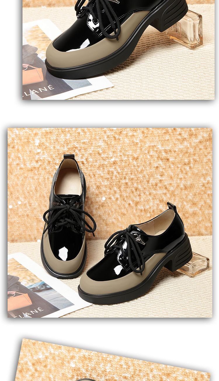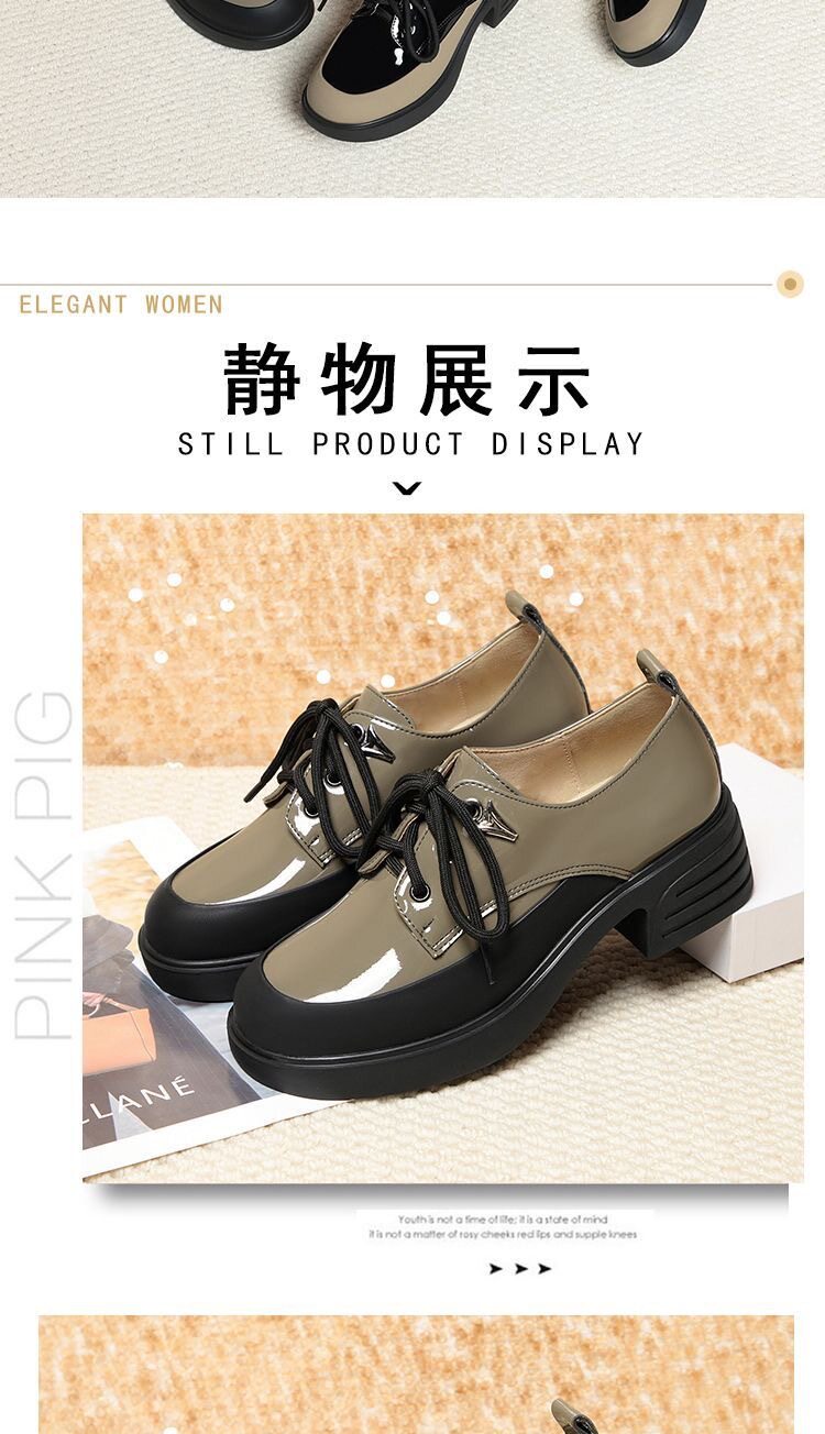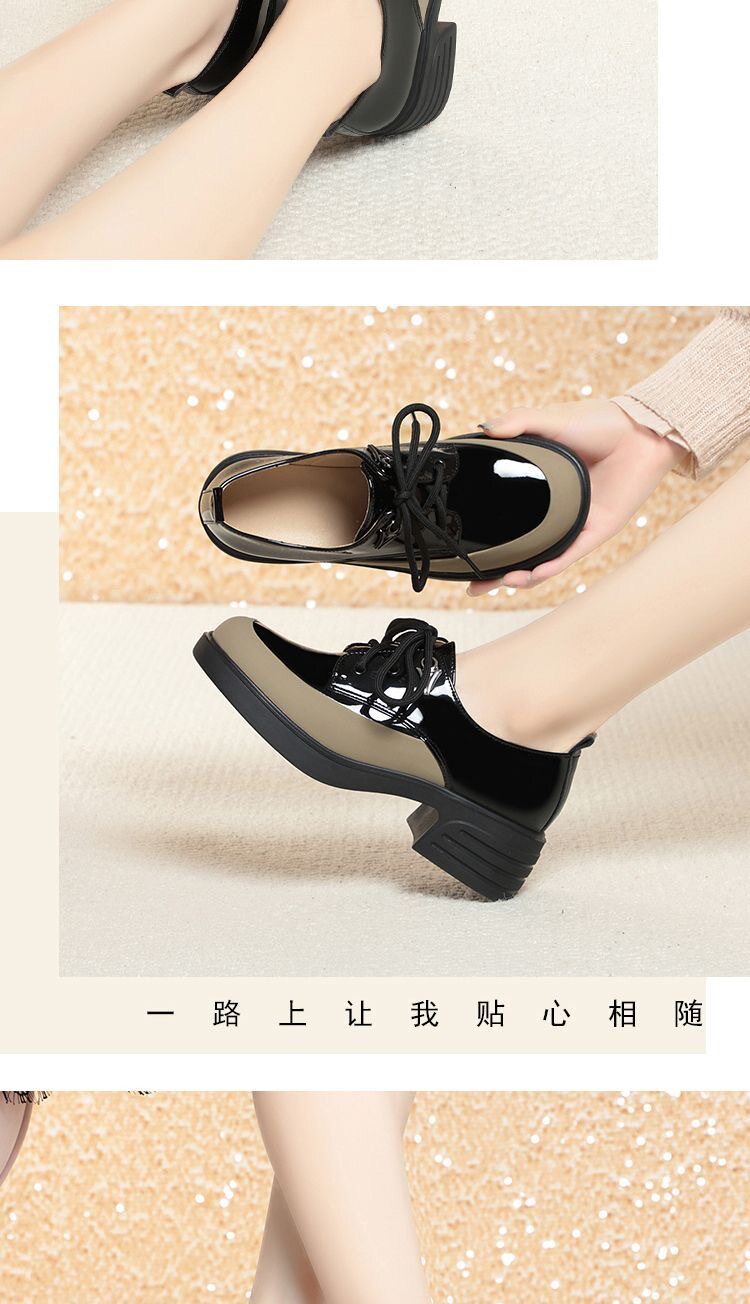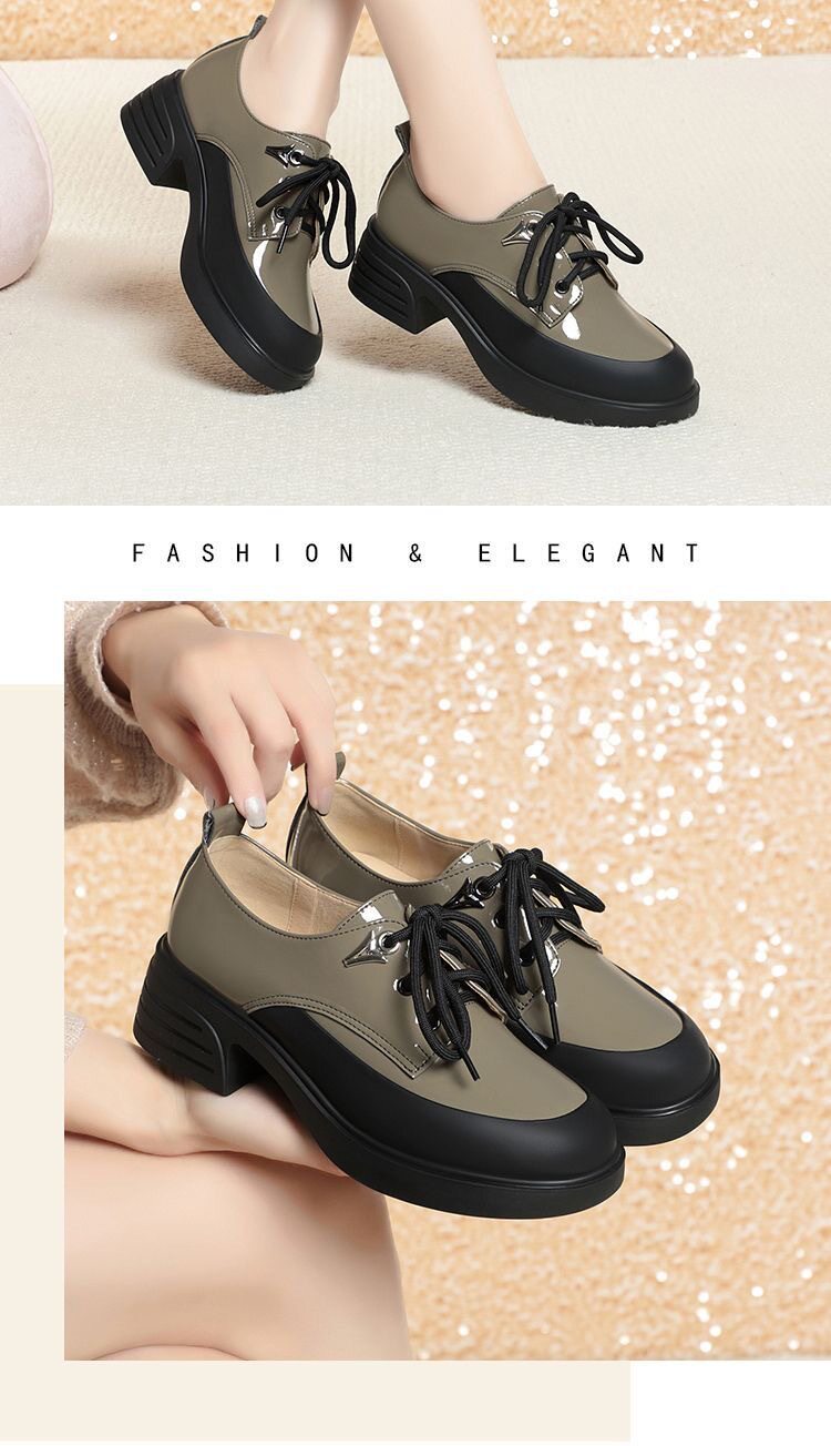 British Style Color-Block Lace-Up Leather Shoes 2025 Spring and Autumn New Versatile Women's Shoes with Chunky Heels and Thick Soles