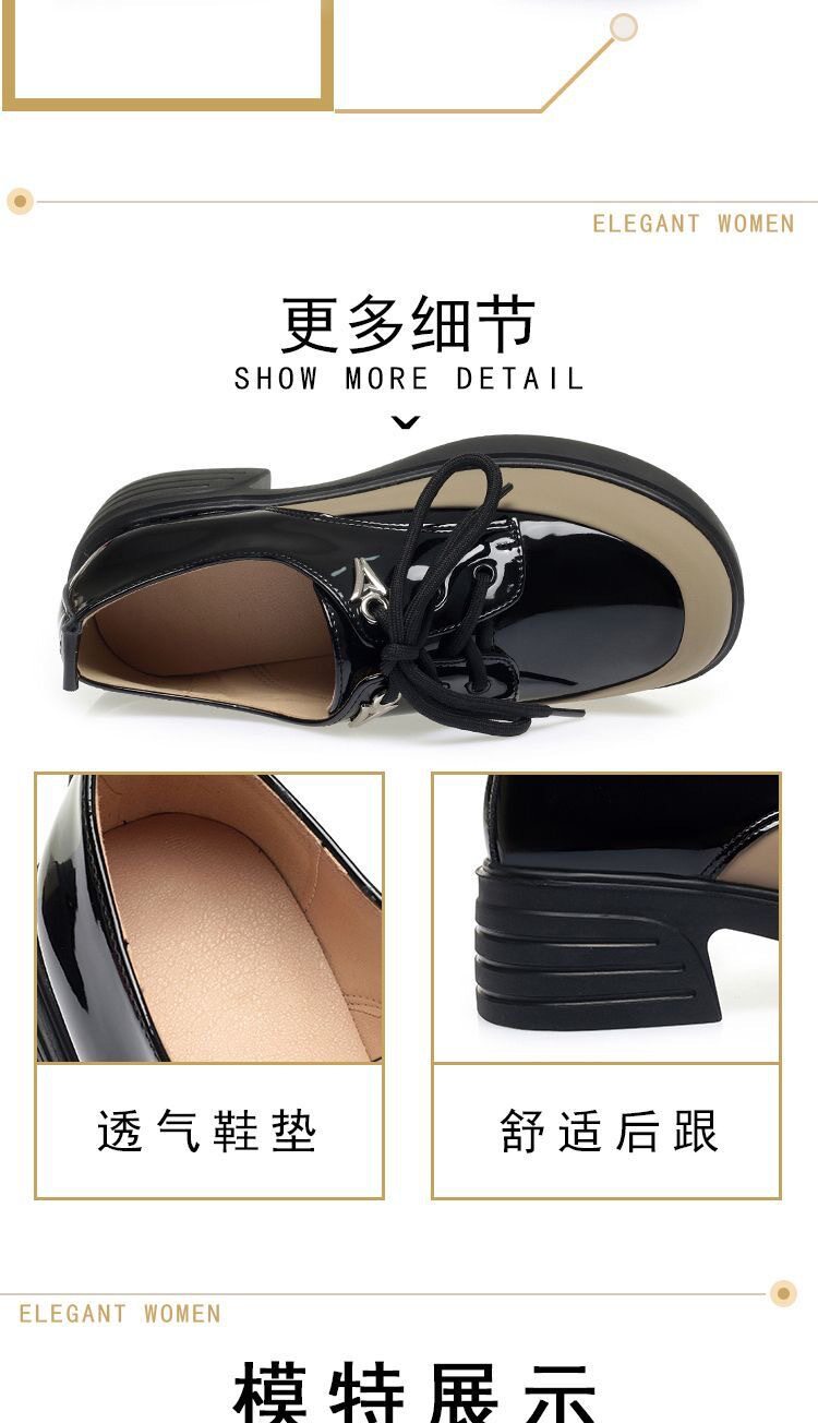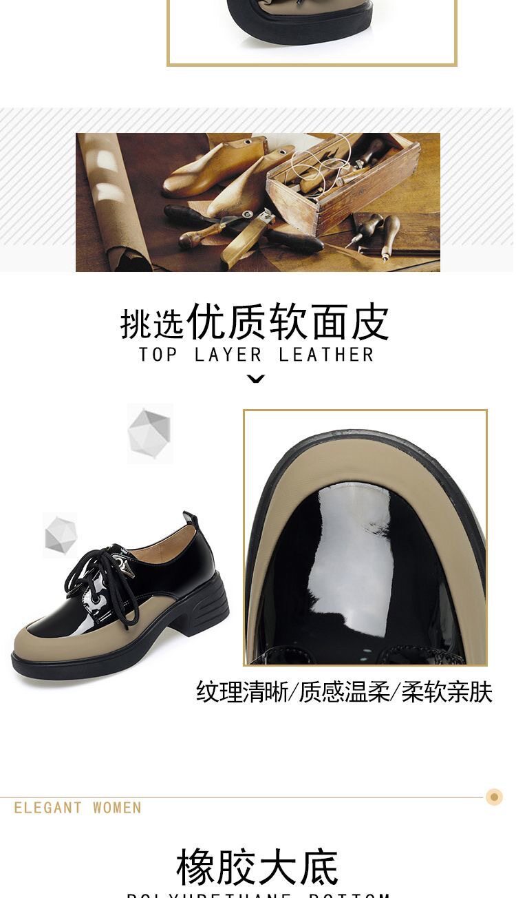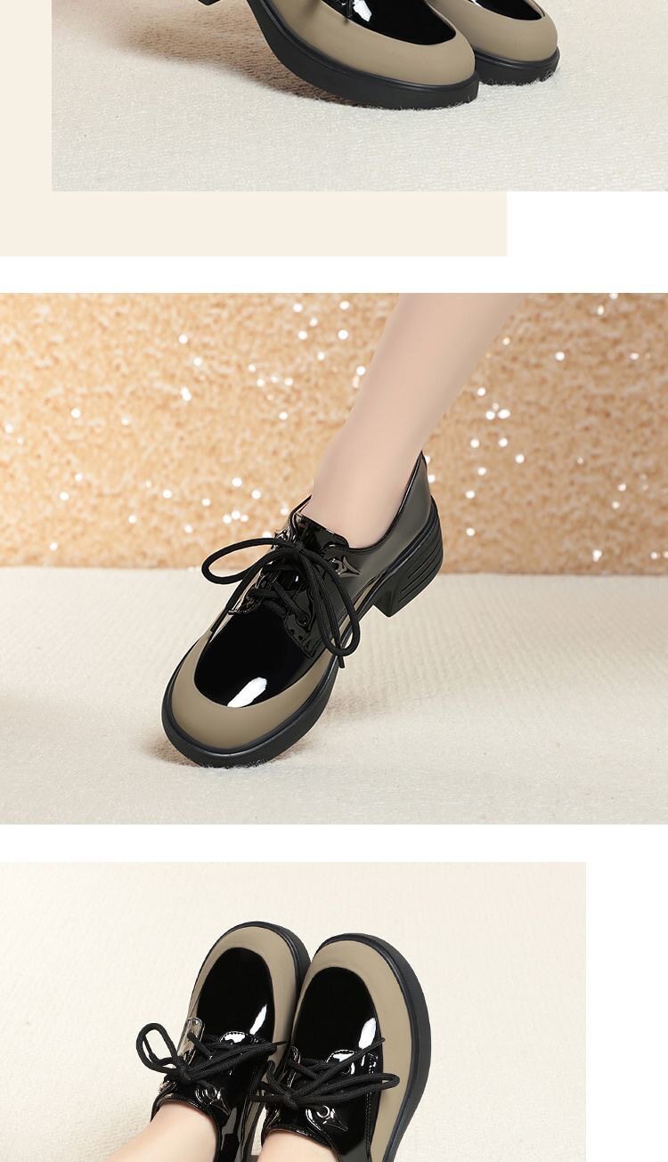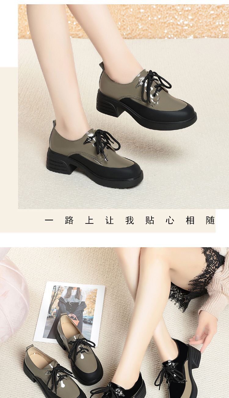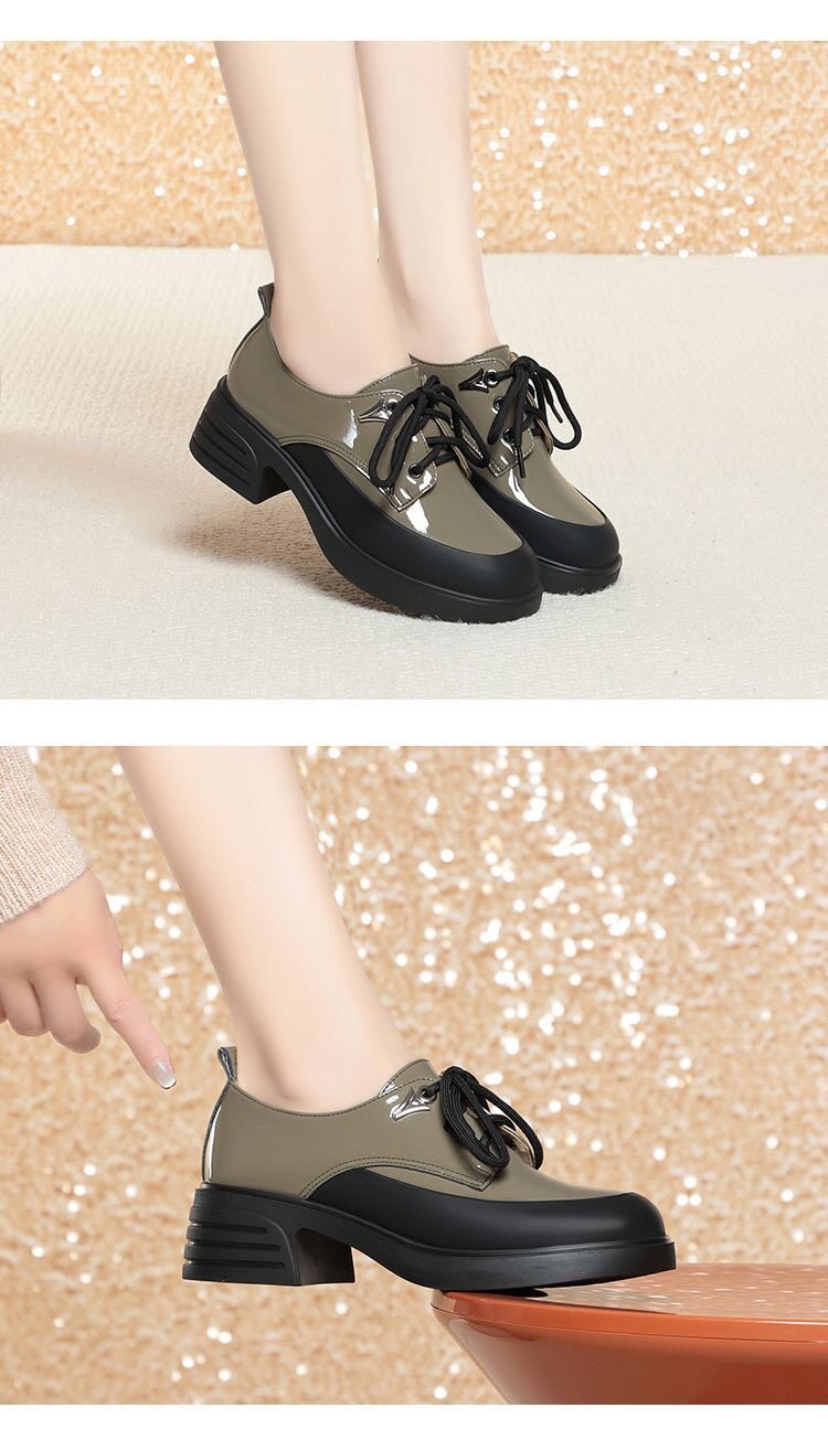 British Style Color-Block Lace-Up Leather Shoes 2025 Spring and Autumn New Versatile Women's Shoes with Chunky Heels and Thick Soles