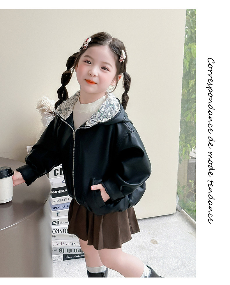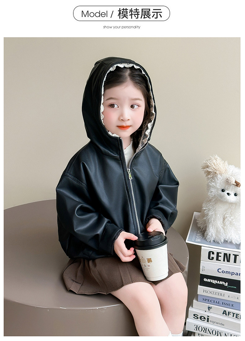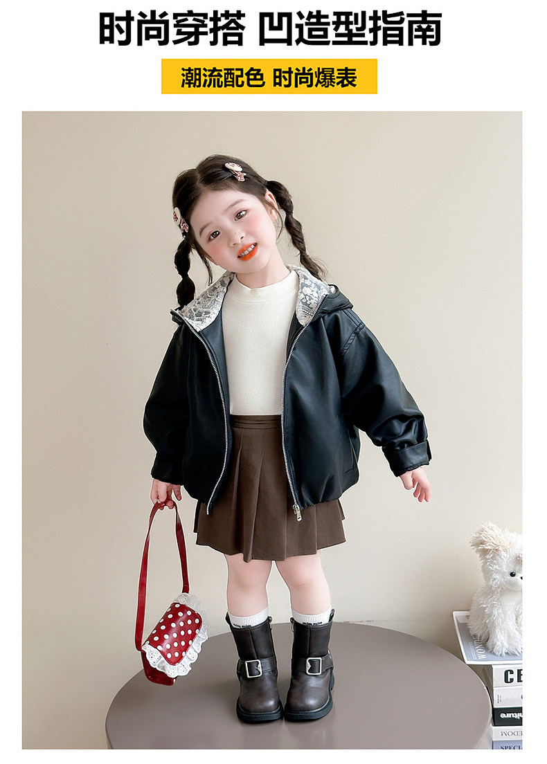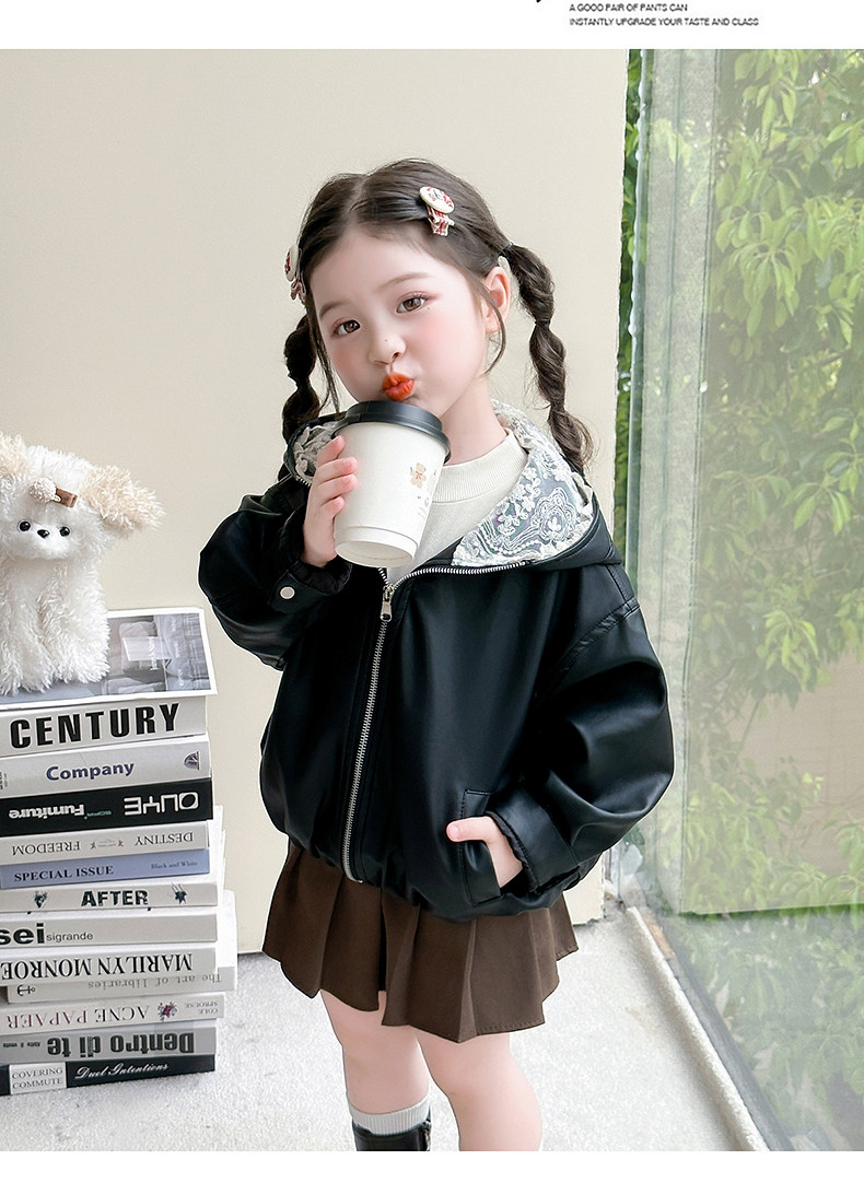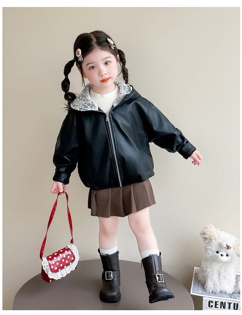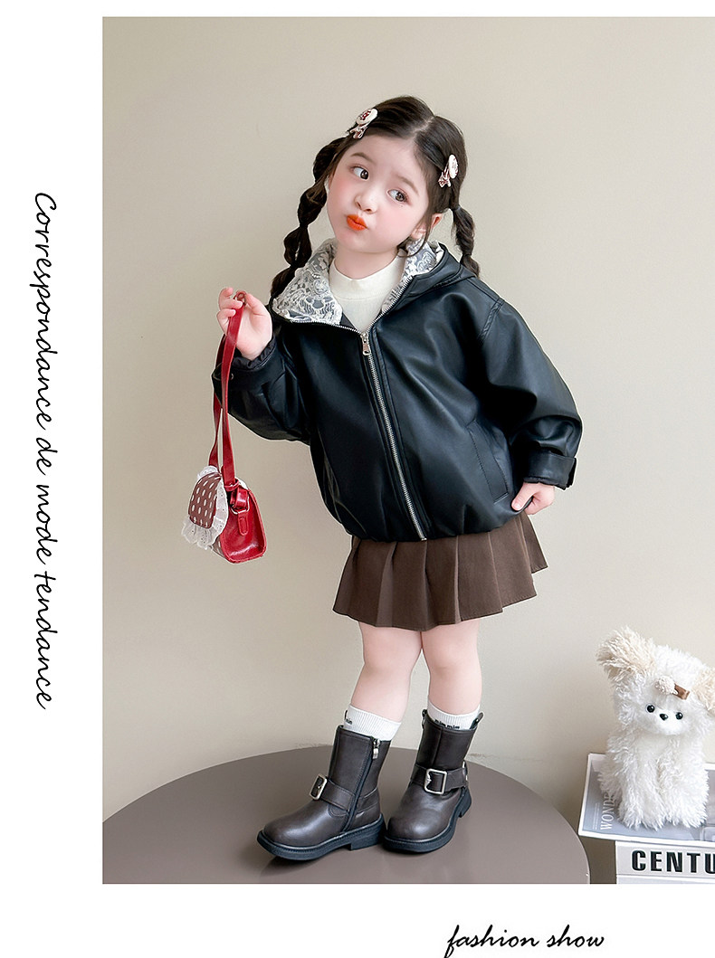 Girls' Leather Jacket Autumn 2025 New Fashionable Children's Hooded Leather Jacket Little Girl's Autumn Windproof Top