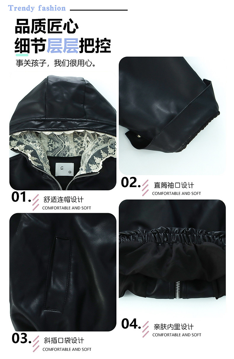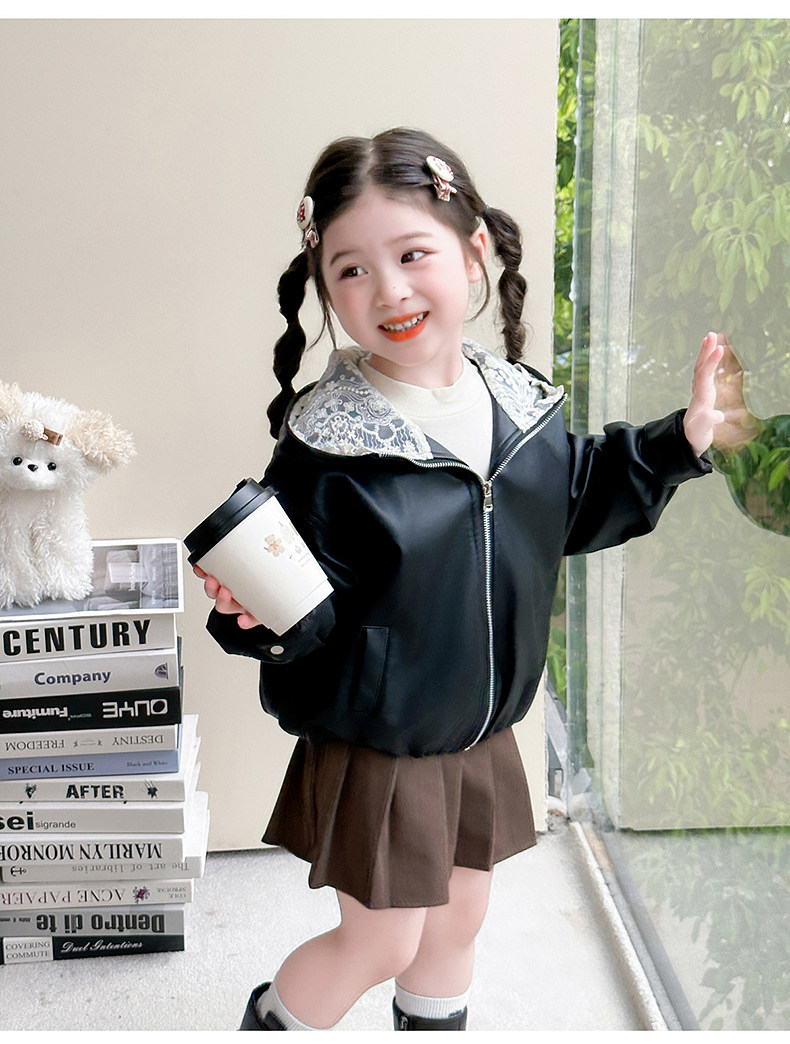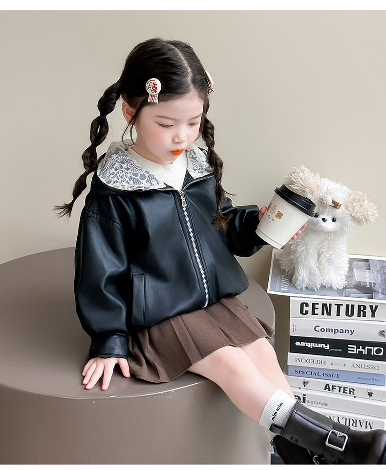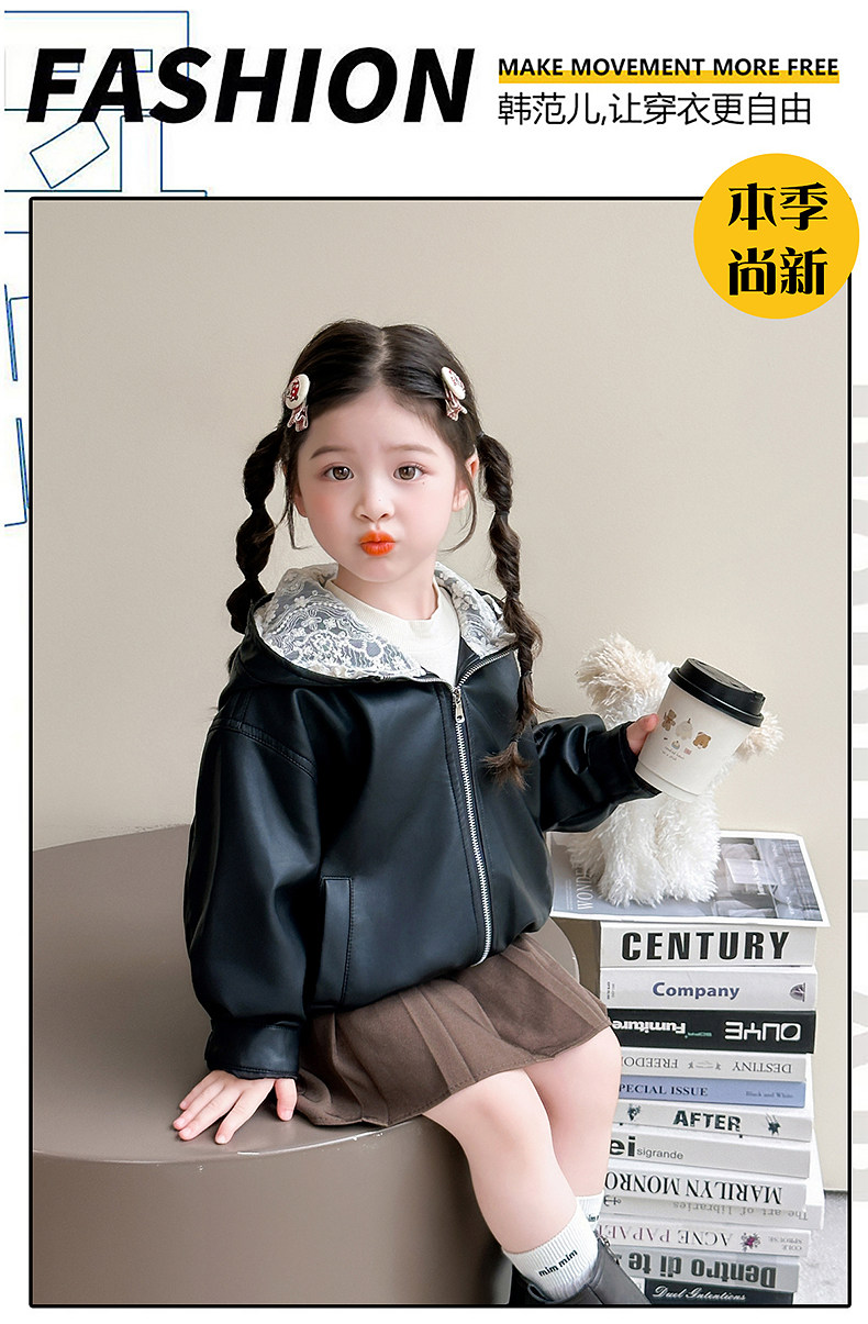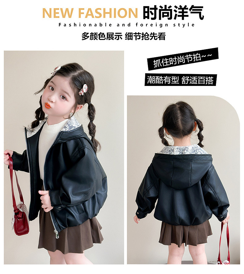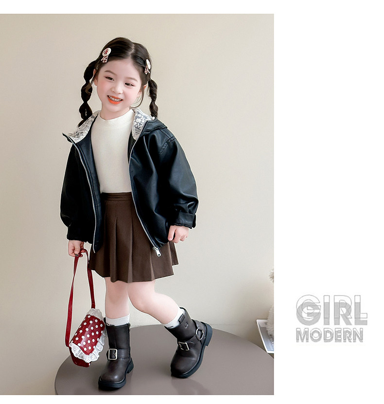 Girls' Leather Jacket Autumn 2025 New Fashionable Children's Hooded Leather Jacket Little Girl's Autumn Windproof Top