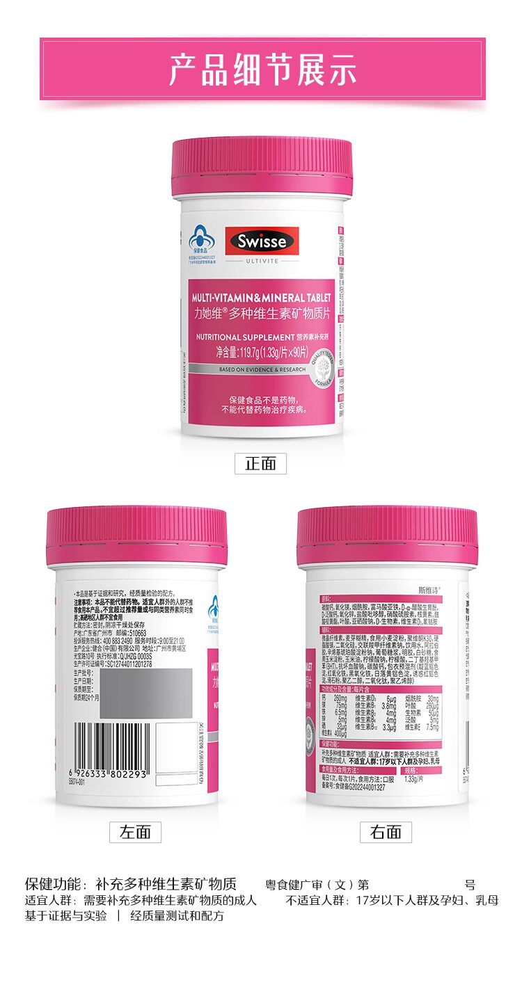 Swisse Women's Multivitamin Supplement Contains Multiple Vitamins, Minerals, Niacinamide, and Folic Acid