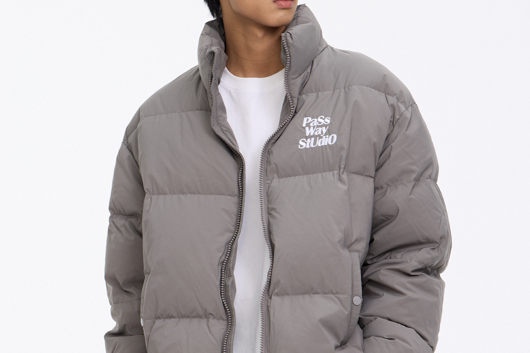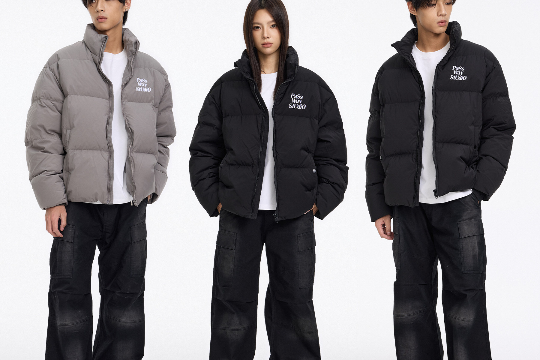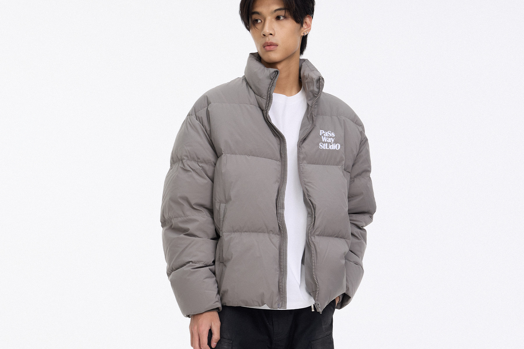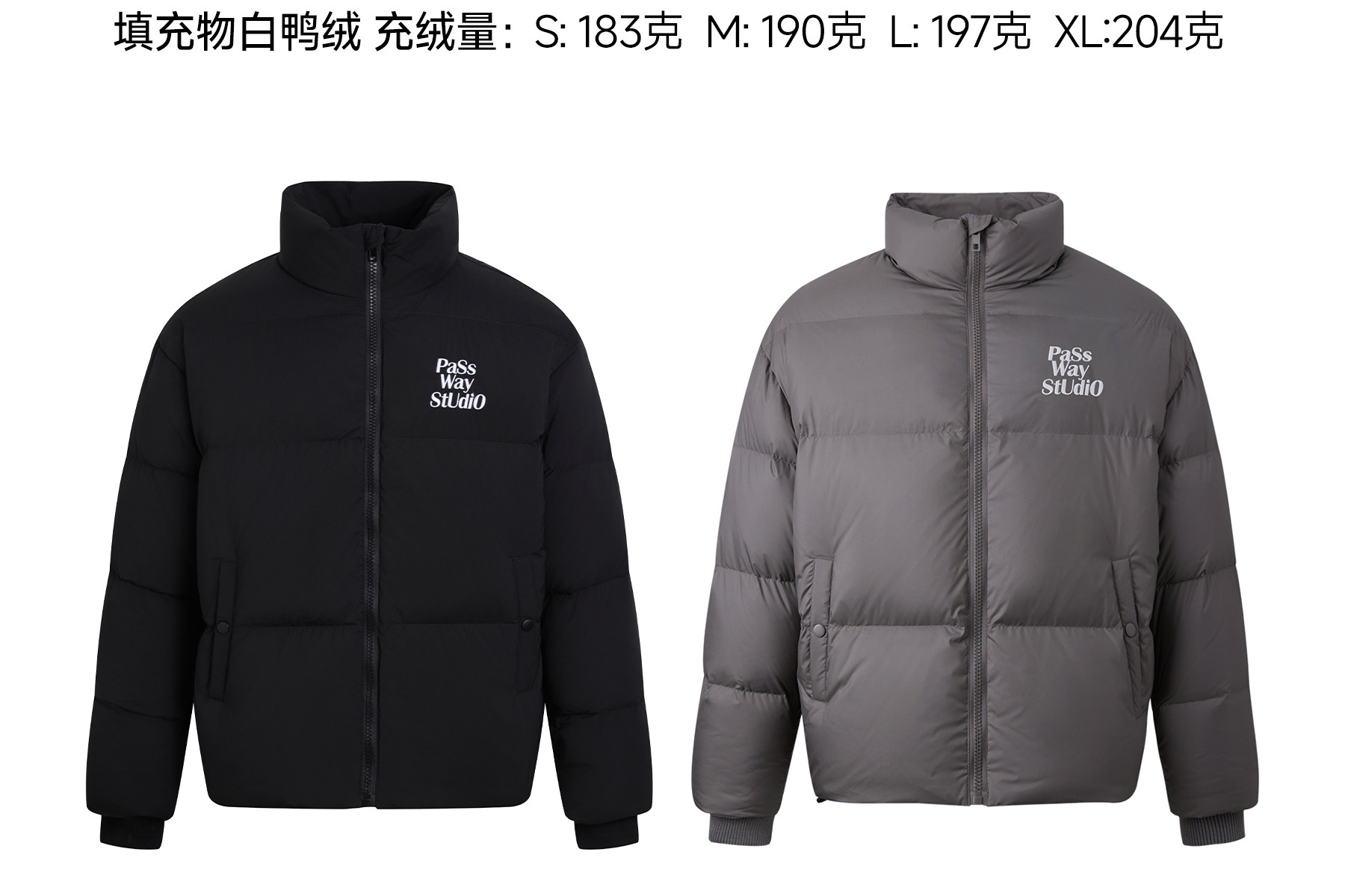 Passway Studio White Duck down Jacket with Stand Collar for Men and Women, Versatile Thickened Warm Puffer Jacket for Winter, Trendy