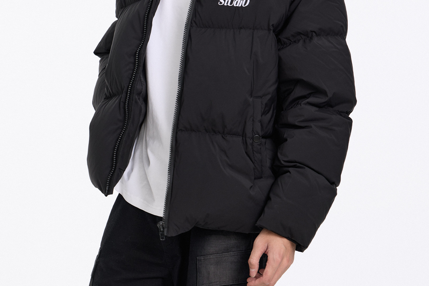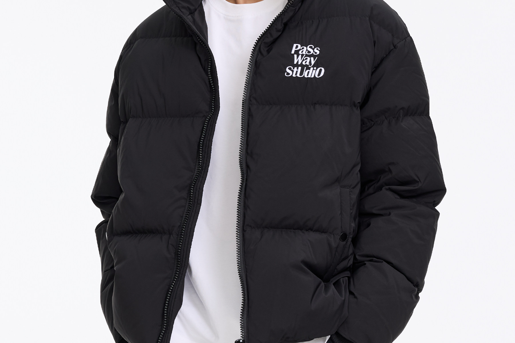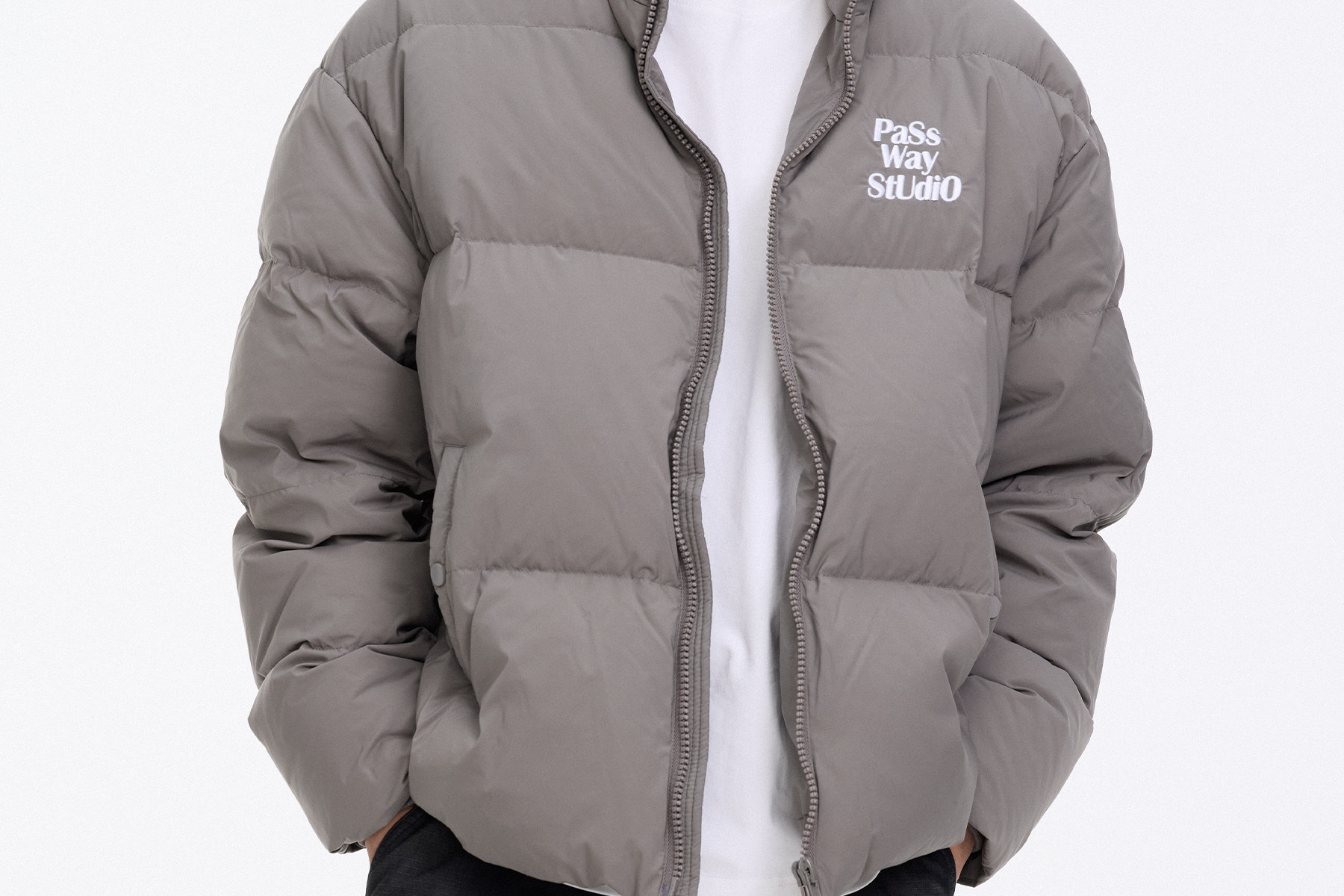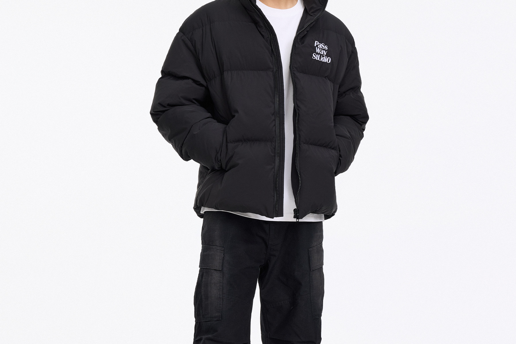 Passway Studio White Duck down Jacket with Stand Collar for Men and Women, Versatile Thickened Warm Puffer Jacket for Winter, Trendy