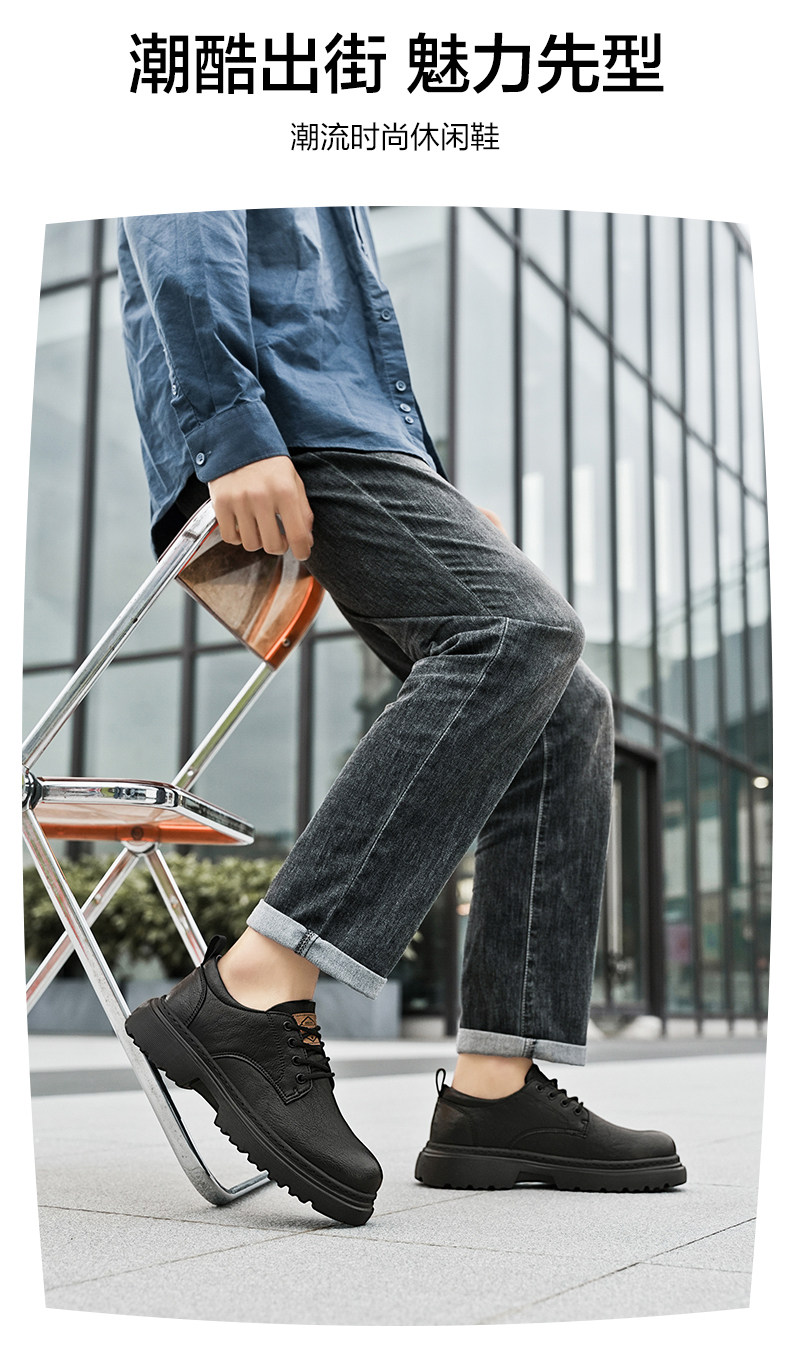 Heilan Home Men's Shoes 2026 New Summer Retro Durable Large-Toe Work Shoes Casual Leather Shoes Men's Black Sneakers