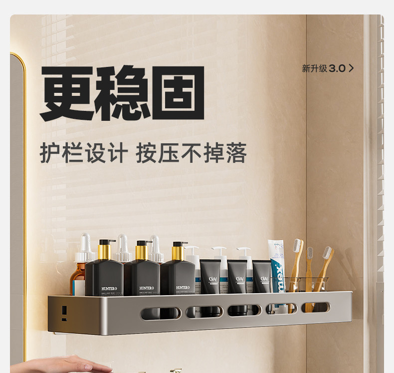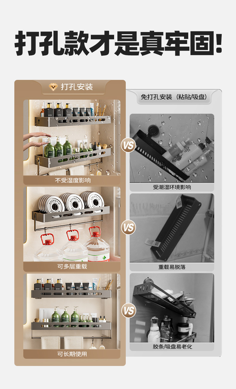 Perforated Bathroom Storage Rack, Bathroom Corner Shelf, Toilet Shower Room Washbasin Wall-Mounted Mirror, Wall-Mounted Organizer
