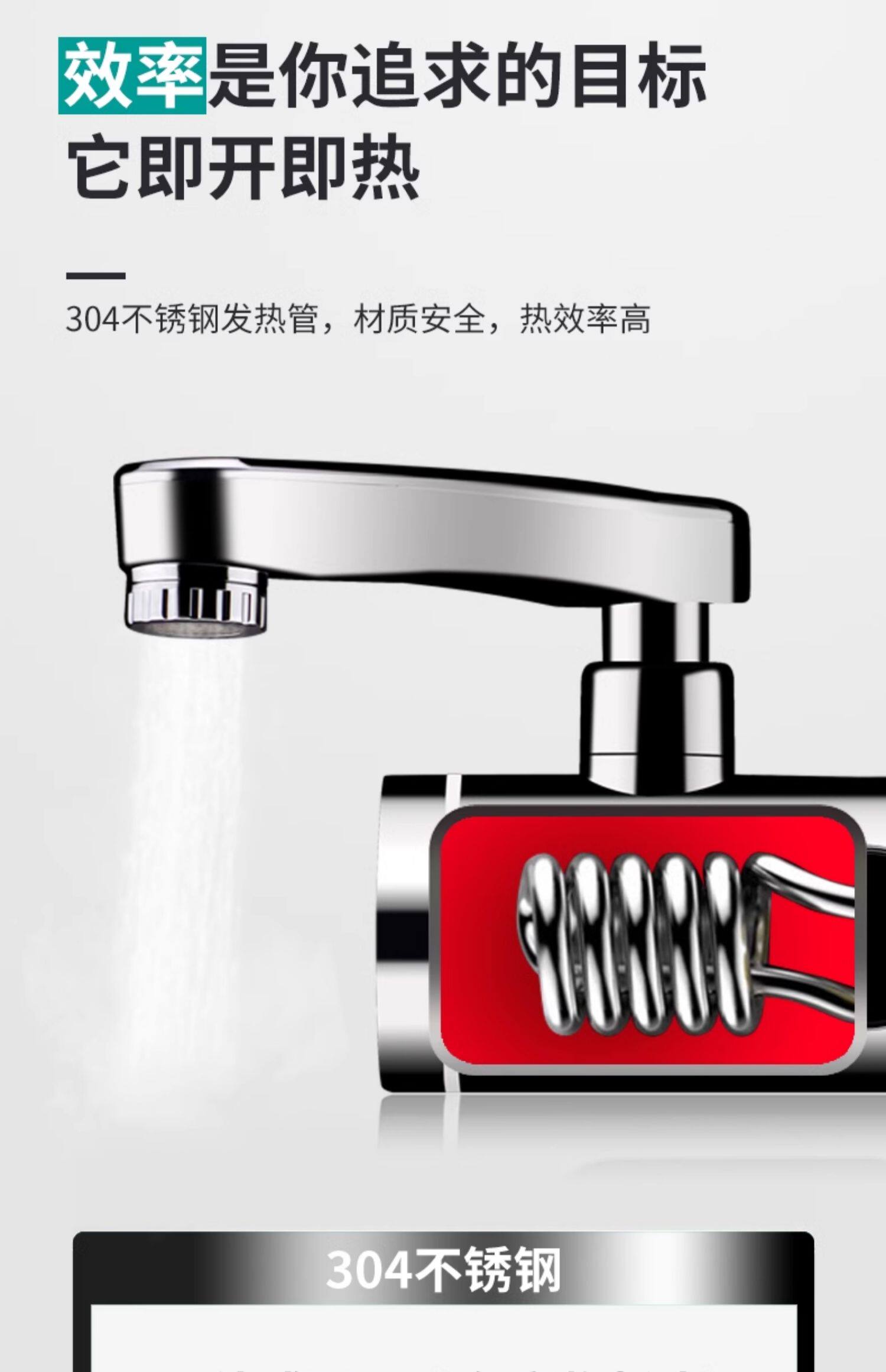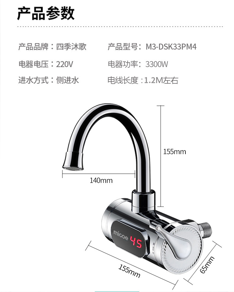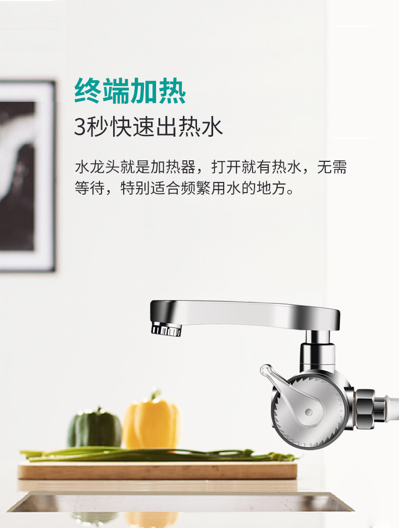 Four Seasons Muge Electric Hot Water Faucet with Side Water Inlet for Kitchen, Bathroom, and Balcony, Fast Water Flow Water Heater