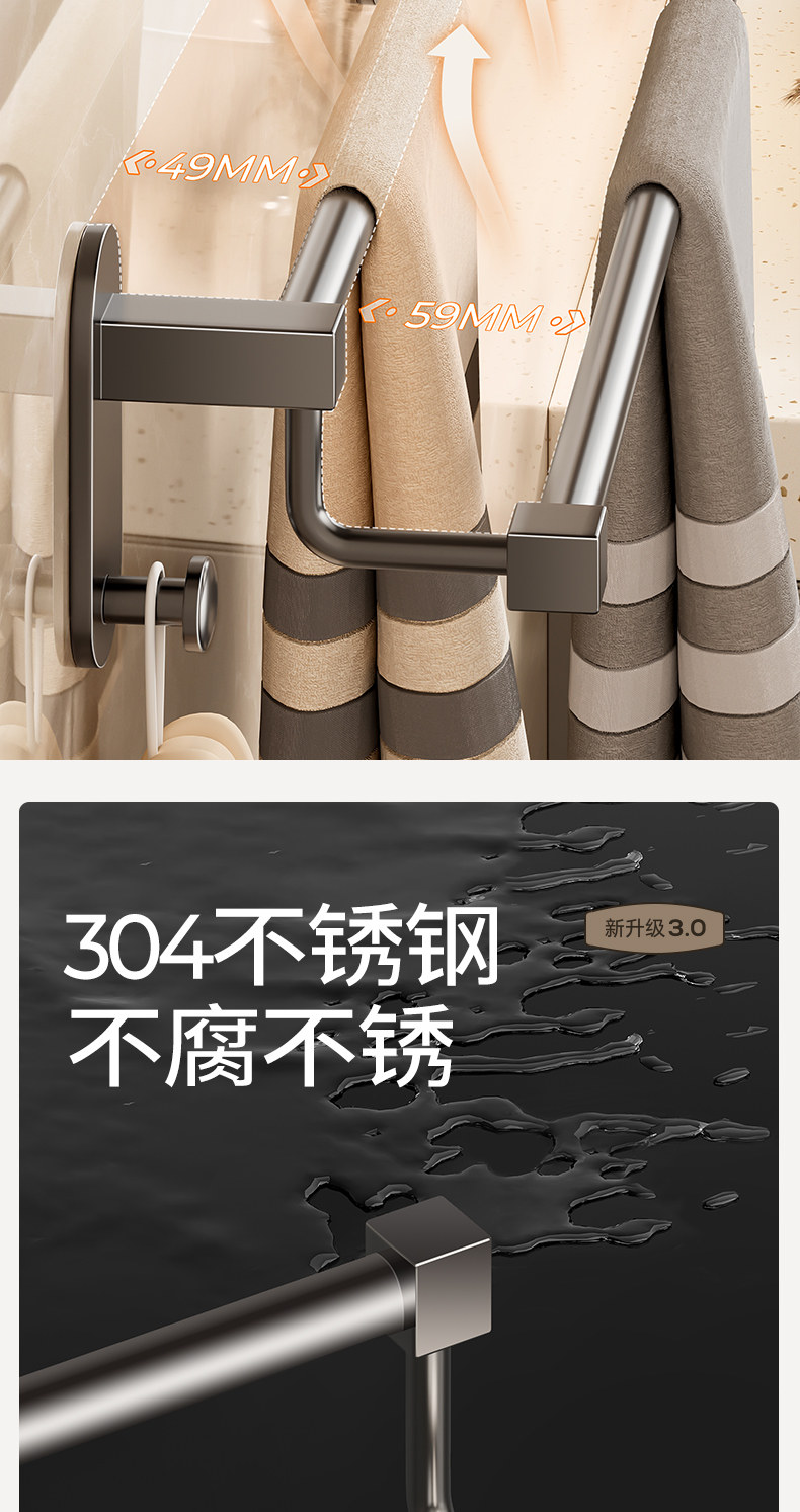 Perforated Installation Towel Rack 304 Stainless Steel Towel Bar Single/Double Rod Bathroom Towel Rack Bathroom Shelf Hanging Rod