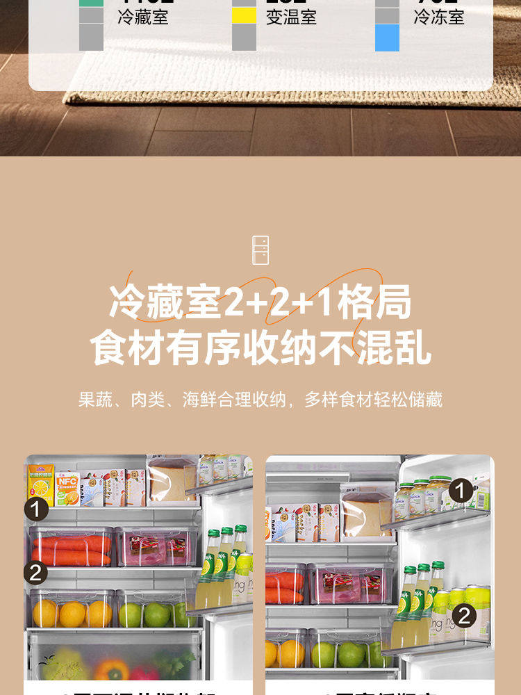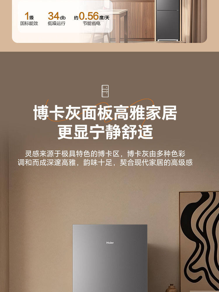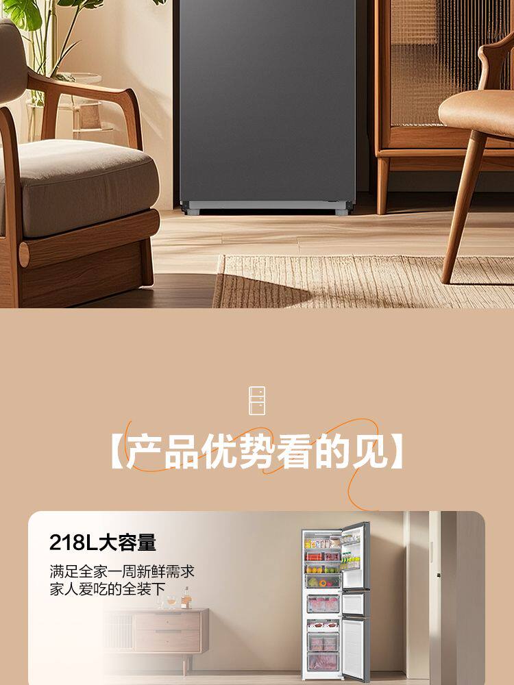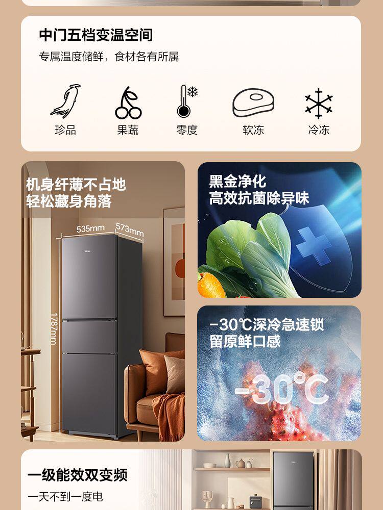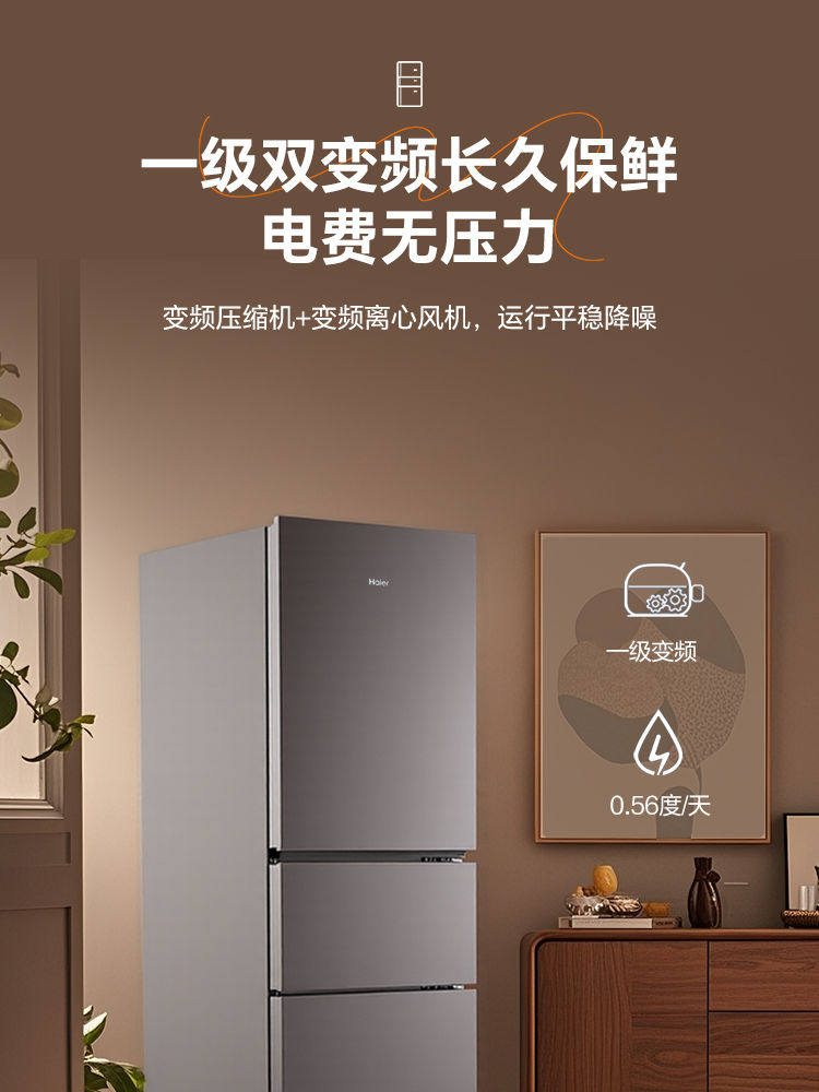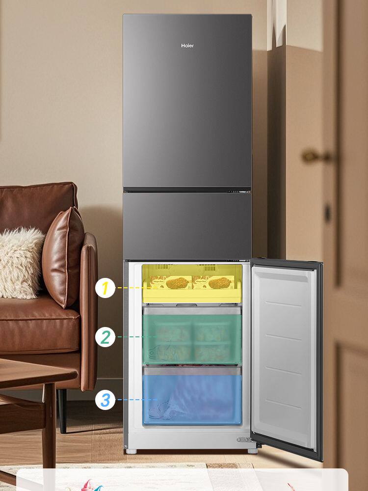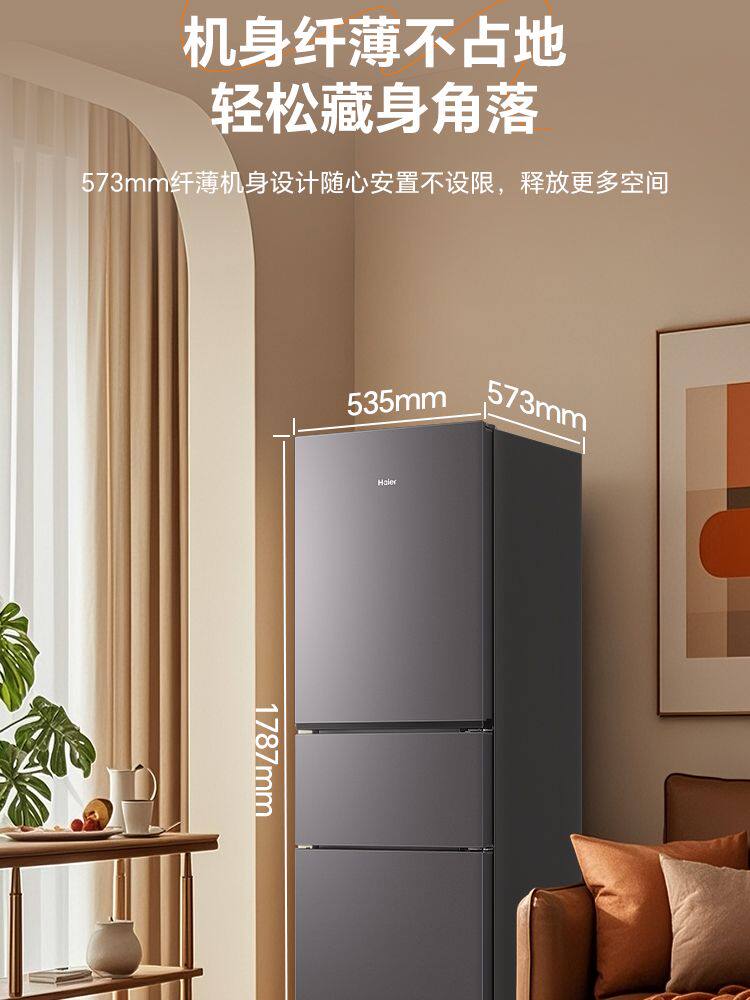 Haier Refrigerator First-Class Dual-Inverter Frost-Free Small Household Three-Door Model for Rental Bcd-218Wghc3E9Bk