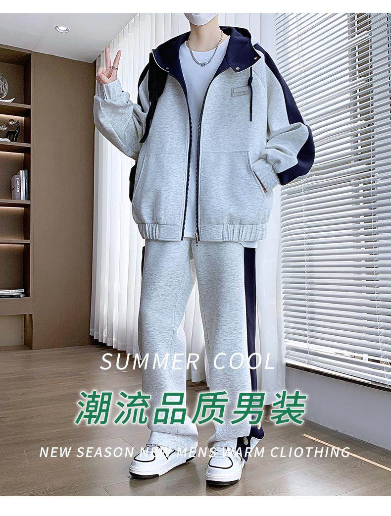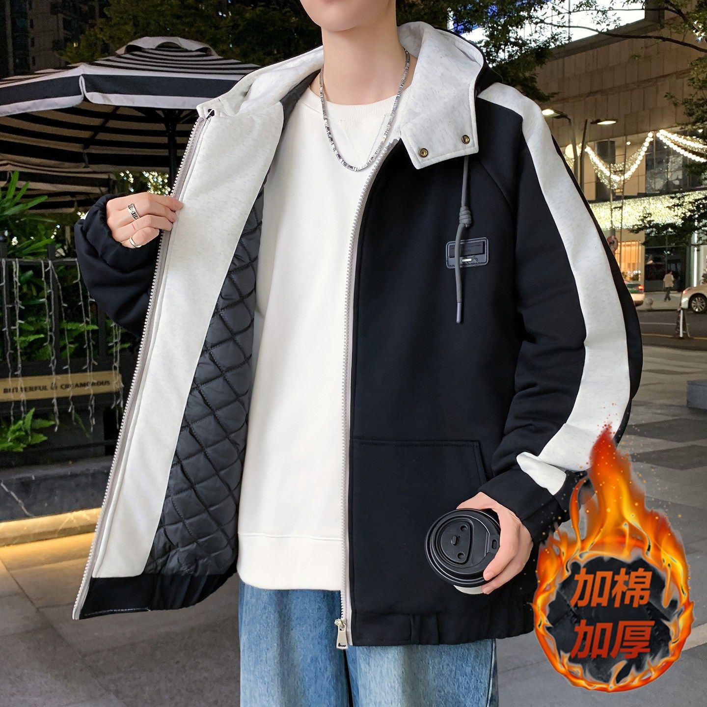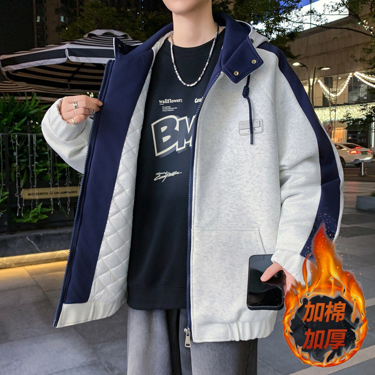 Casual sports suit men's autumn and winter jacket cotton thickened coat handsome student older children sweatshirt hoodie