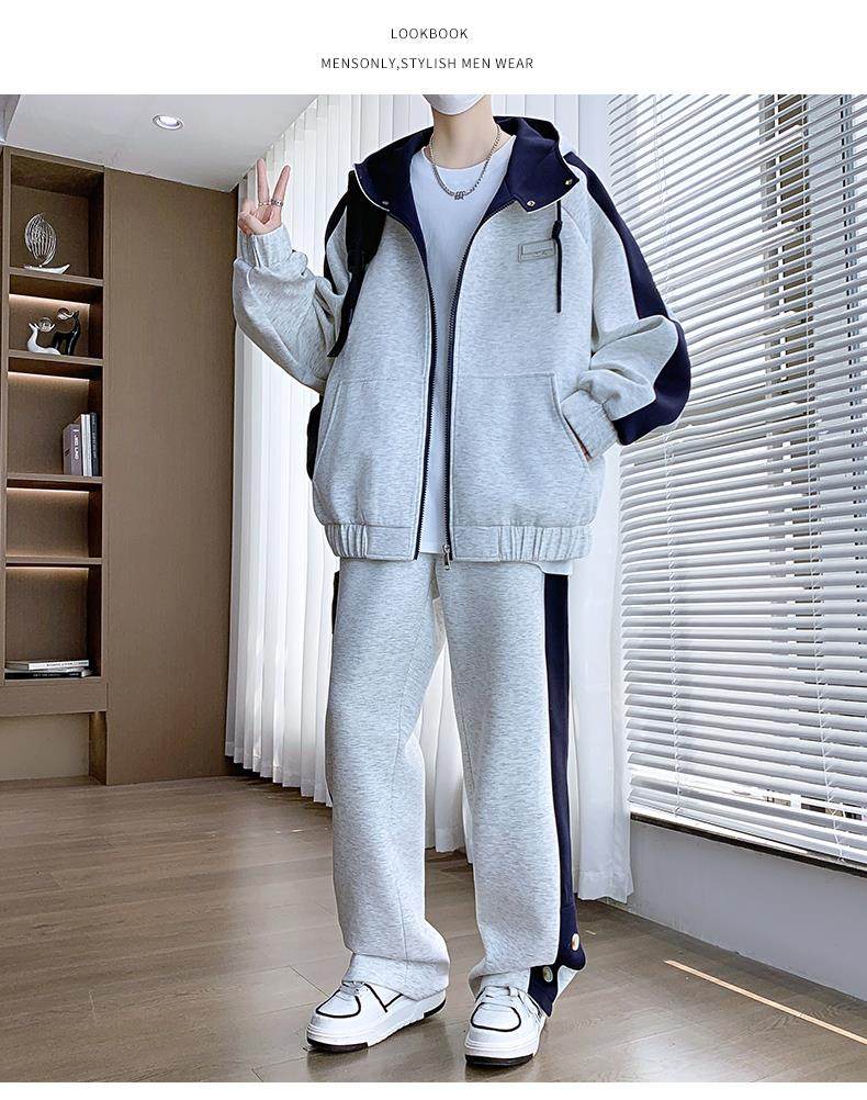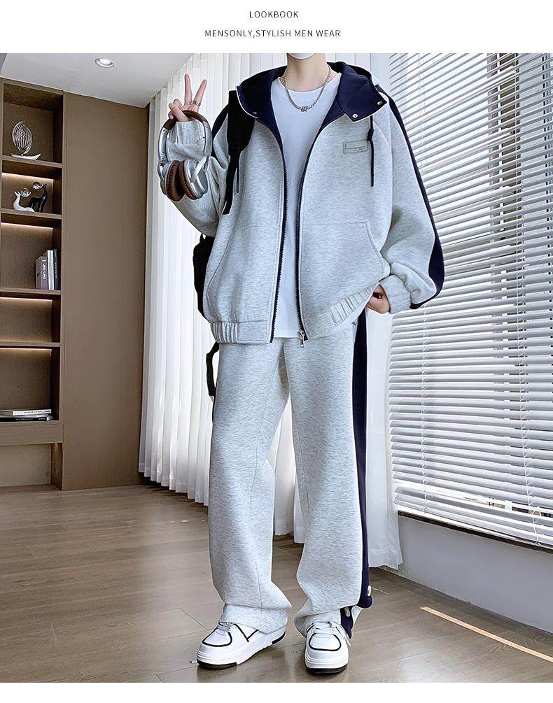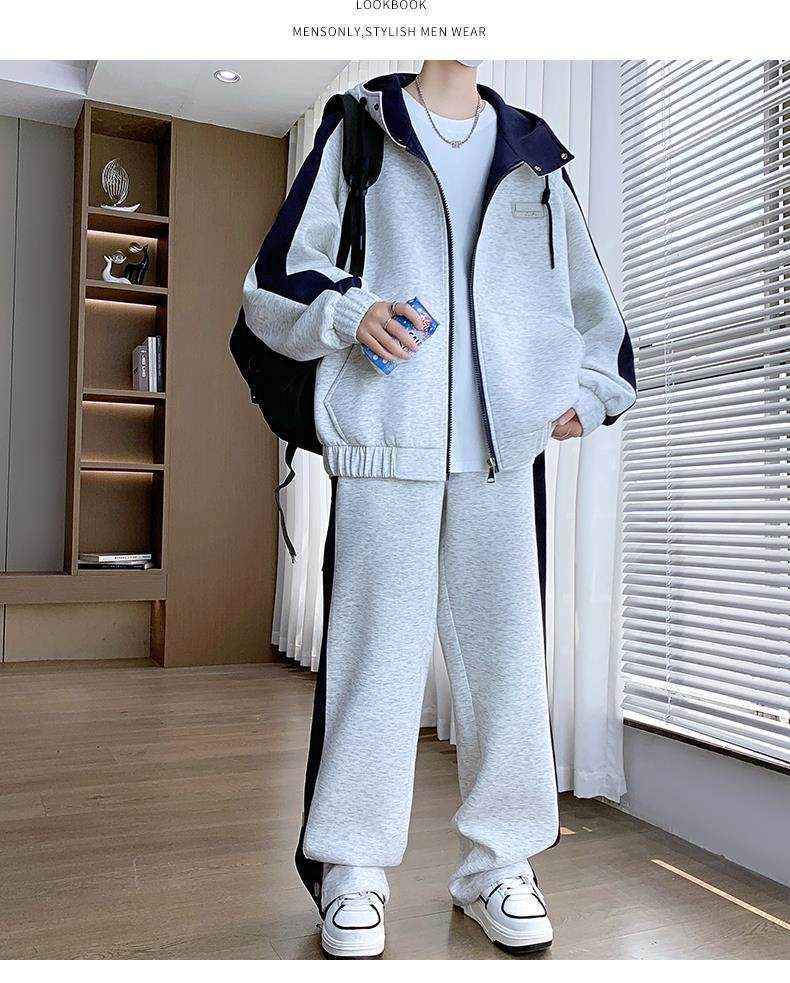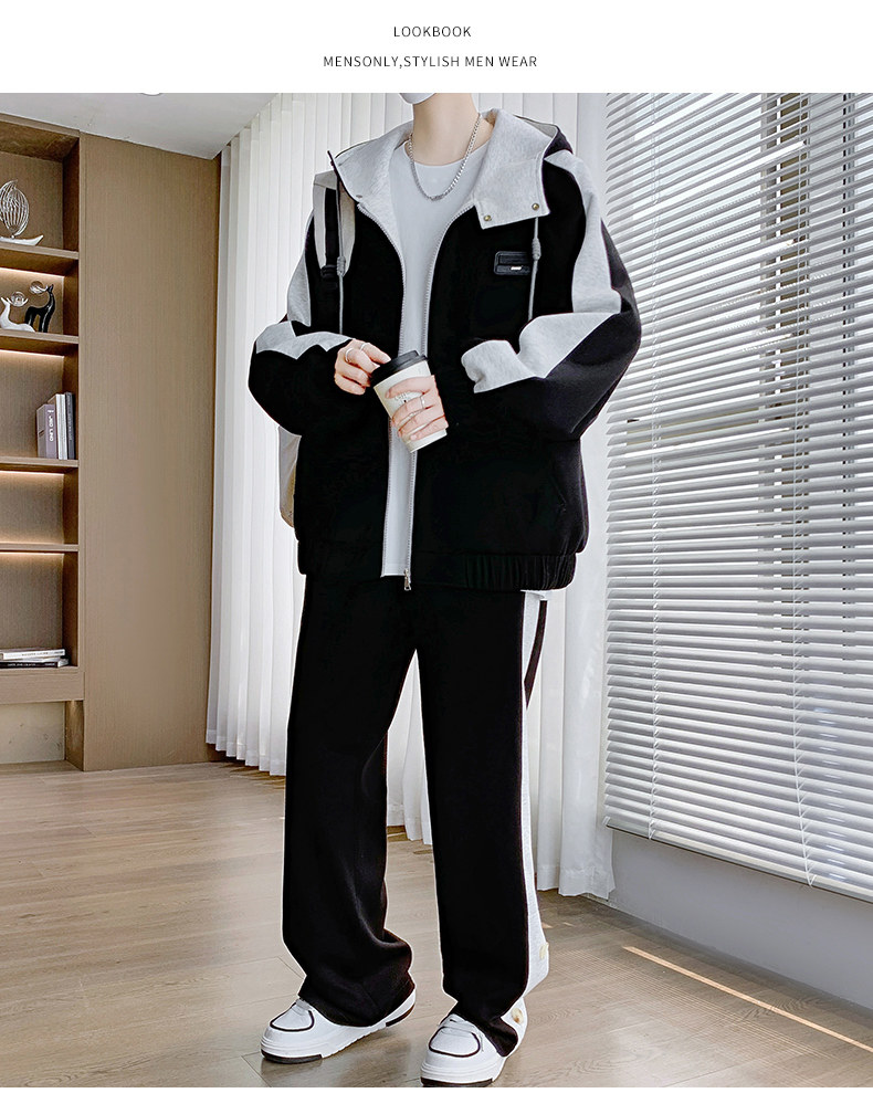 Casual sports suit men's autumn and winter jacket cotton thickened coat handsome student older children sweatshirt hoodie