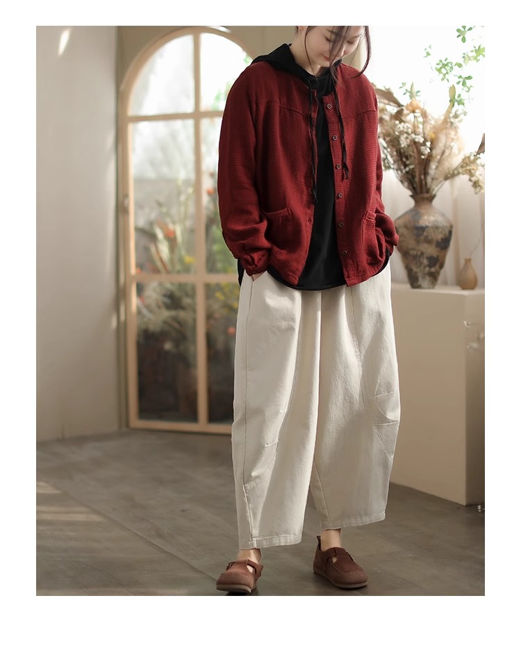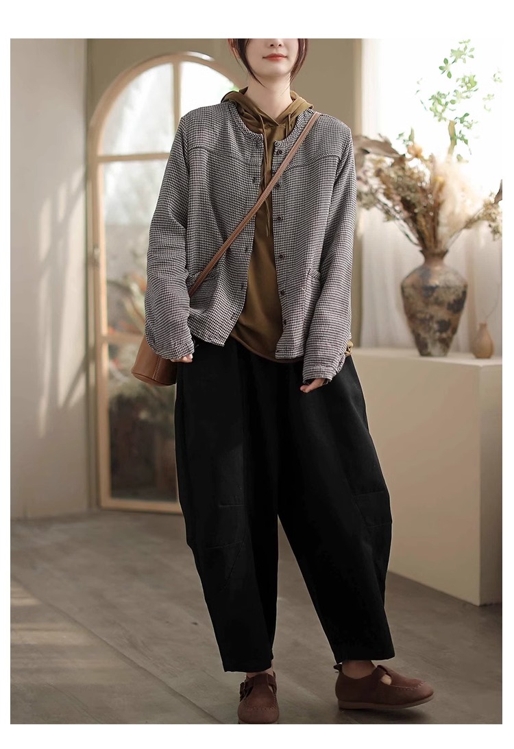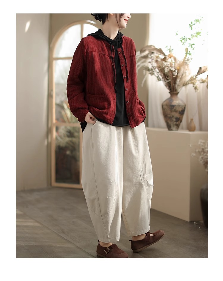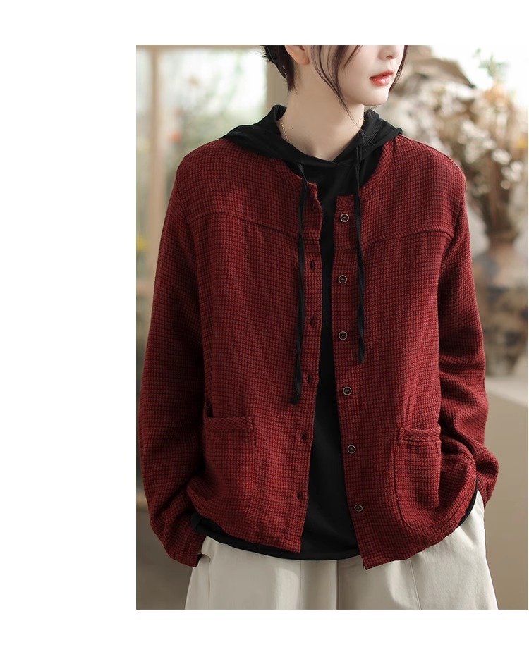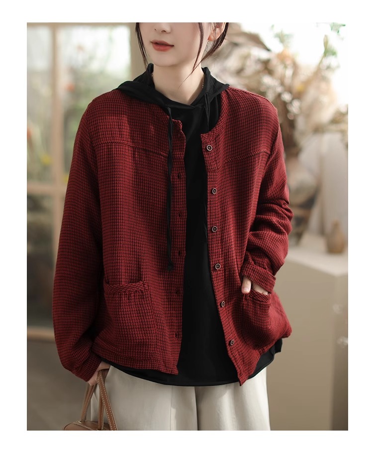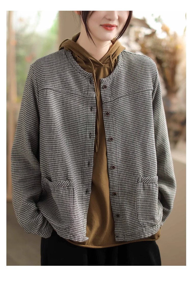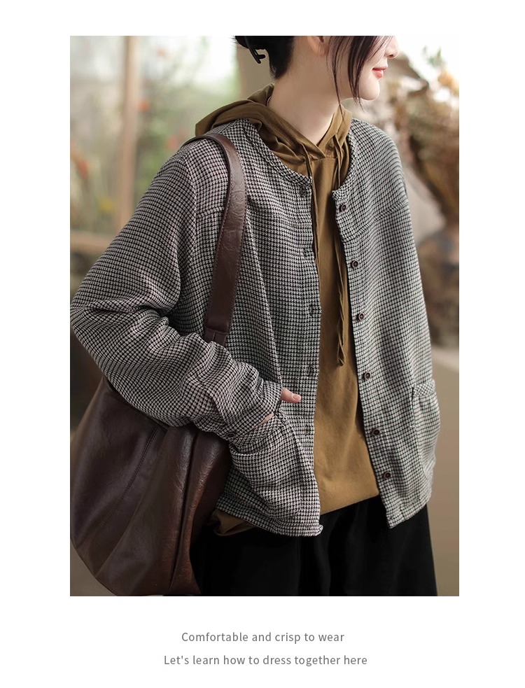 Artistic Retro Plaid Cardigan Short Jacket for Women 2025 Early Autumn New Loose Casual Versatile Cotton Jacket Top