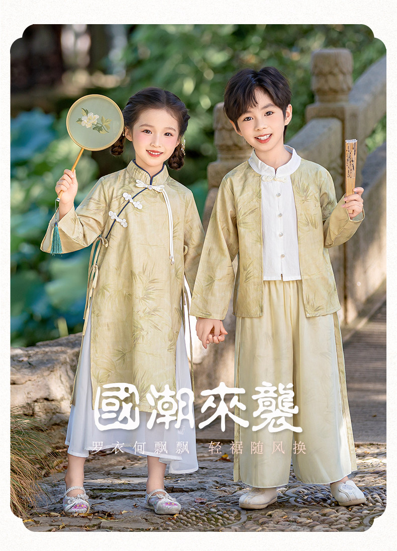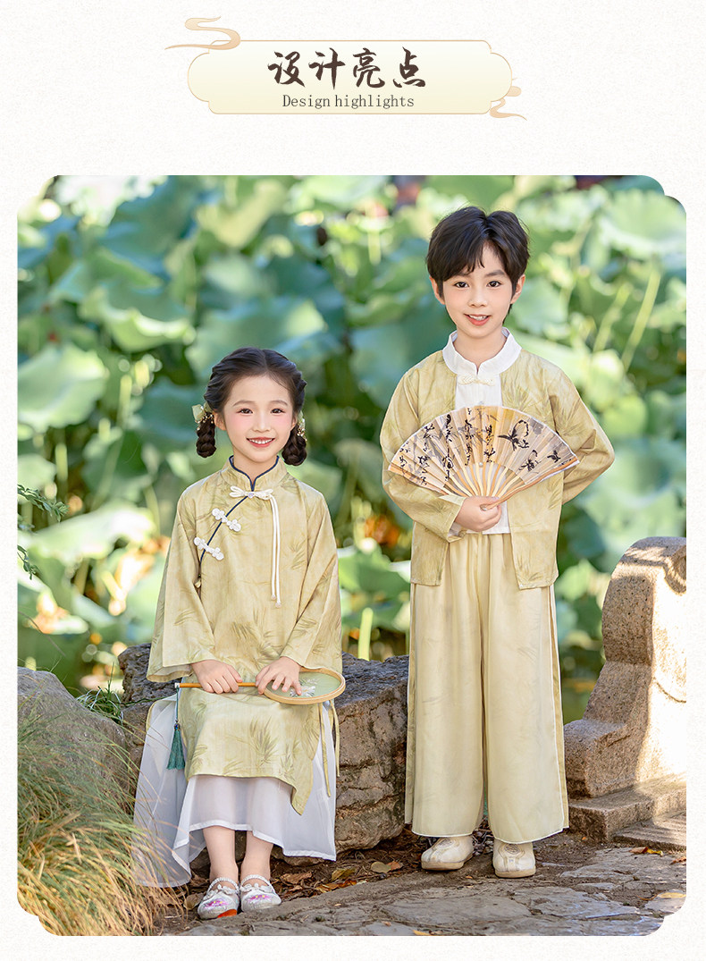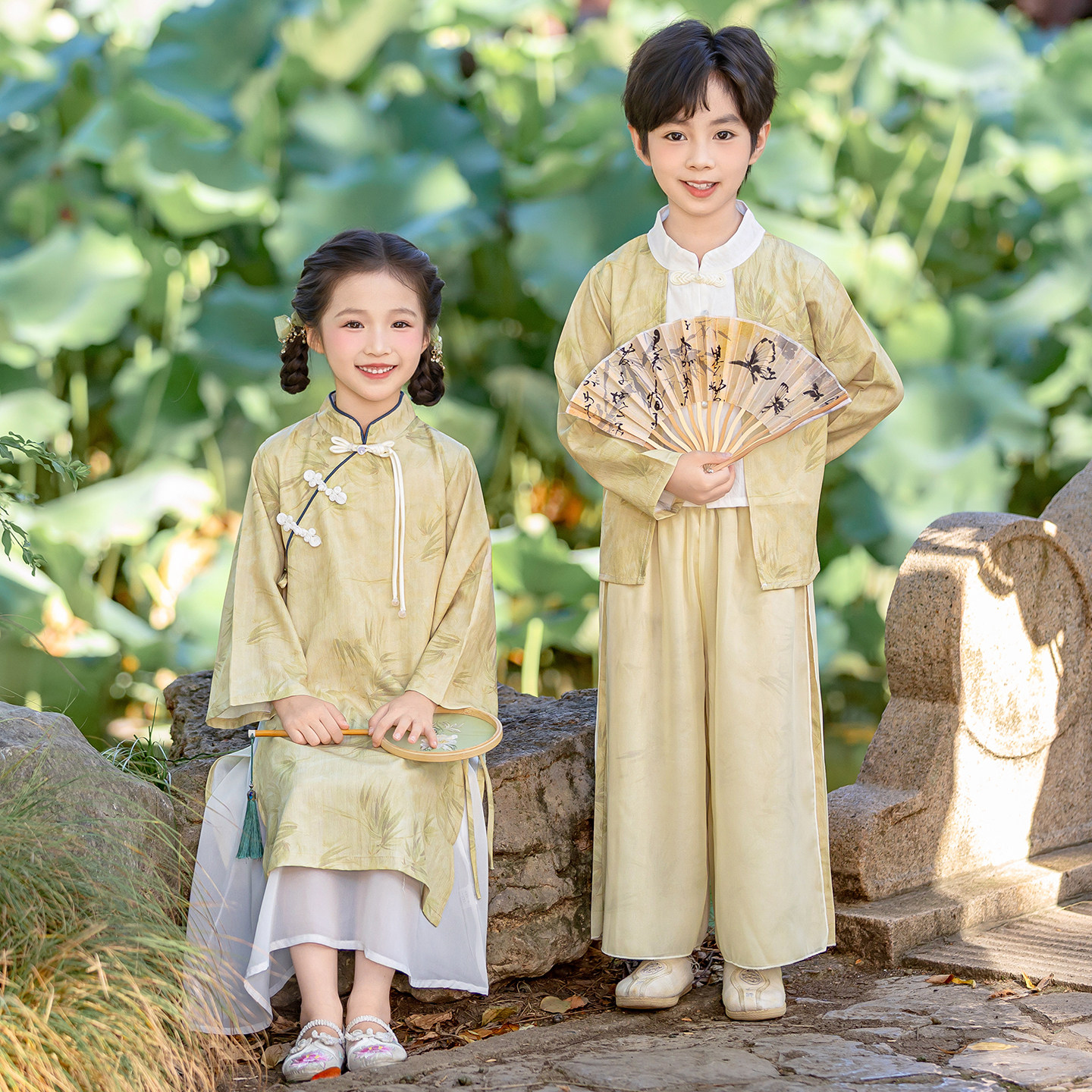Boys' Hanfu Spring and Autumn Style High-End Chinese Style Girls' Tang Suit Set Chinese Ancient Style Daily Traditional Chinese Culture Children's Performance Costume