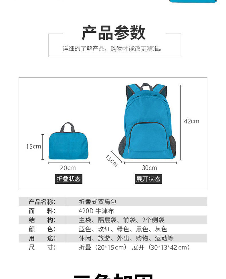 Color Classification Red (30*13*42),Green (30*13*42),Blue (30*13*42),Black (30*13*42),Orange (30*13*42),Dark Blue (30*13*42),Rose Red (30*13*42),Gray (30*13*42),Black Upgraded Version (Folding Dual-Purpose Backpack),Khaki Upgraded Version (Folding Dual-Purpose Backpack),Dark Green Upgraded Version (Folding Dual-Purpose Backpack),Navy Blue Upgraded Version (Folding Dual-Purpose Backpack),Pink Upgraded Version (Folding Dual-Purpose Backpack)
