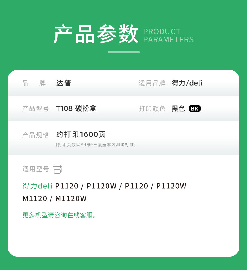 Compatible with Deli T108 Toner Cartridge for Deli P1120 P1120W P1120 P1120W Laser Printer Toner Cartridge M1120 M1120W Black and White Laser Printer Toner Cartridge T108 Toner Cartridge Dapu 1289