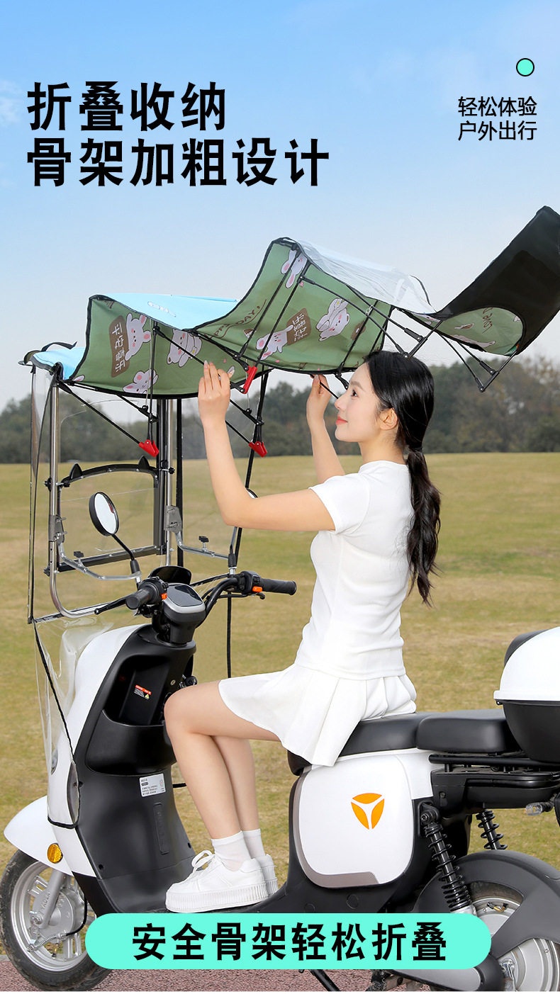New Type of Electric Vehicle with Foldable and Retractable Rain Canopy, Detachable Sunshade, Enlarged and Widened Integrated Wind and Rain Shield