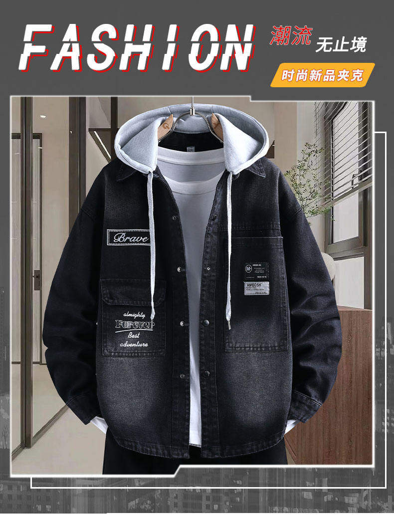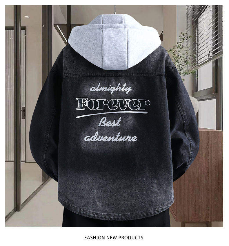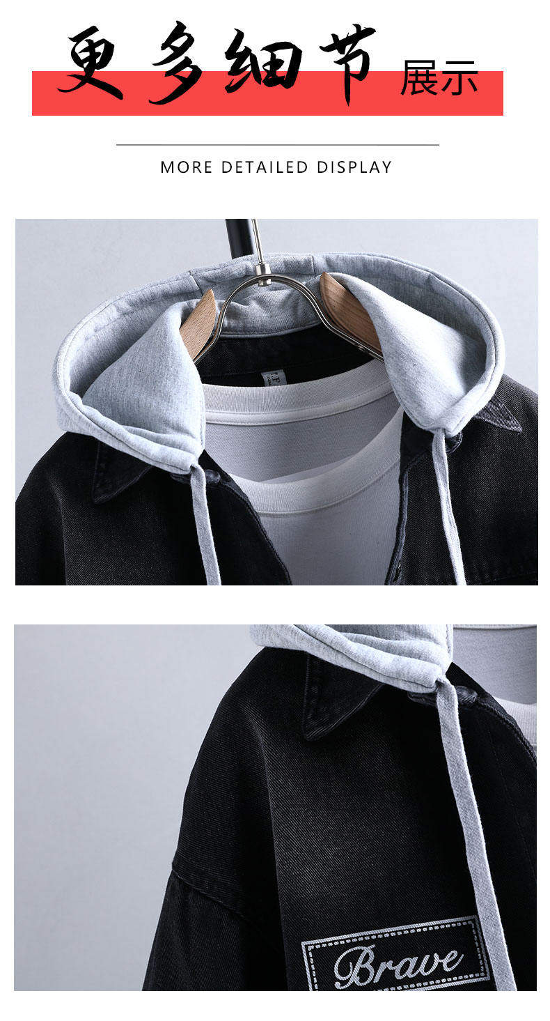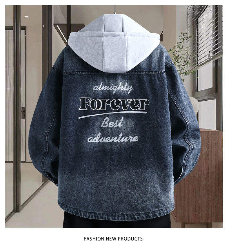 Denim jacket for men and teenagers in autumn new work style handsome loose jacket boys removable hooded coat