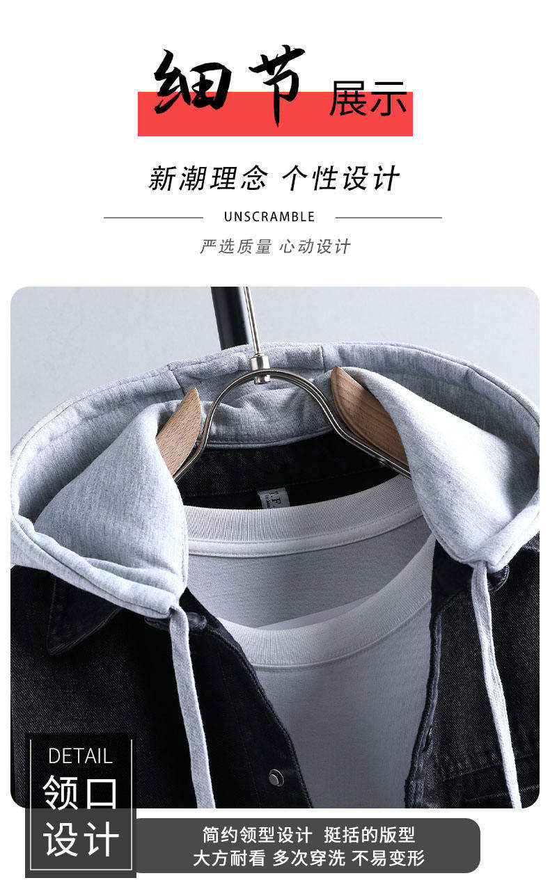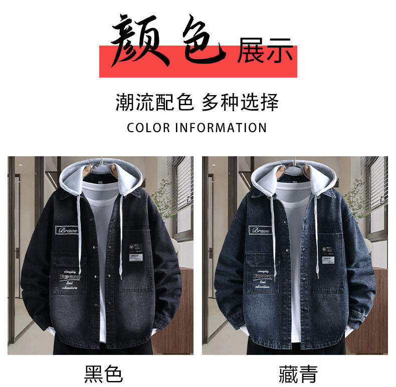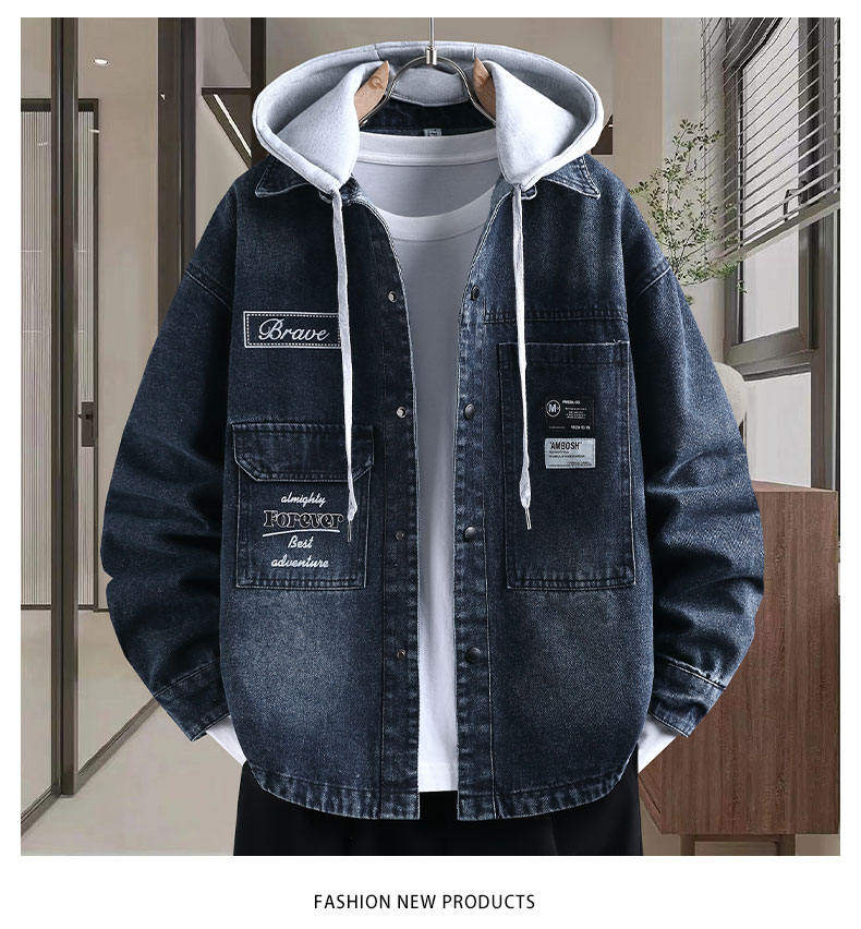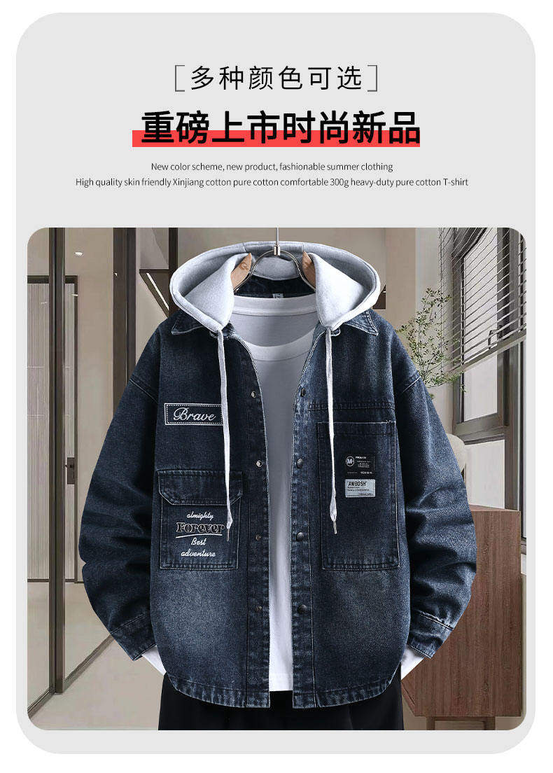 Denim jacket for men and teenagers in autumn new work style handsome loose jacket boys removable hooded coat