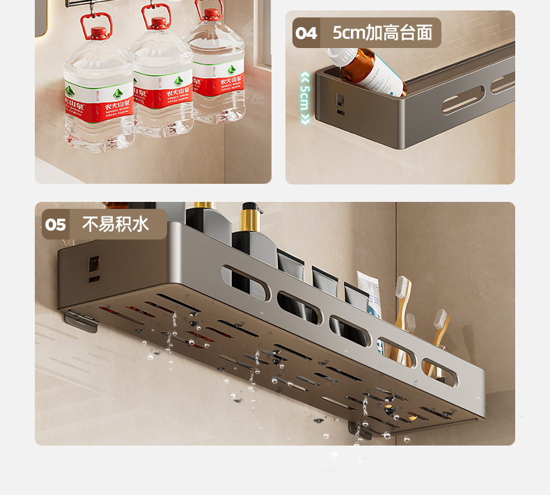 Bathroom Storage Rack, No-Drill Corner Shelf, Toilet Stand, Shower Room Washbasin Wall-Mounted Storage Rack