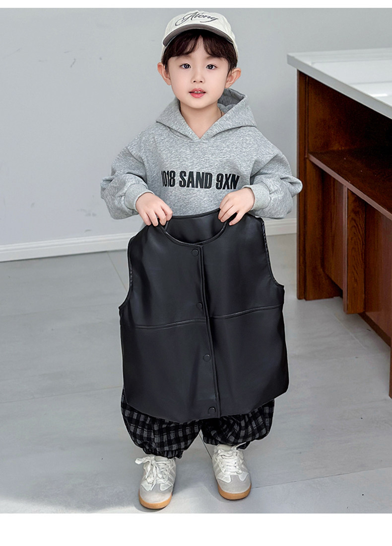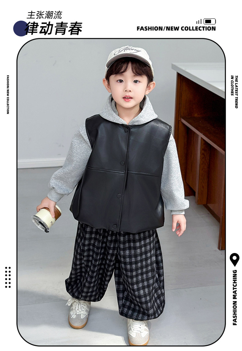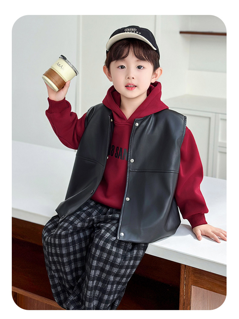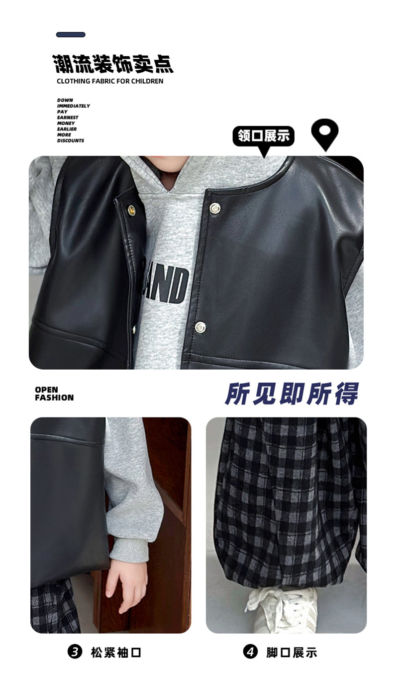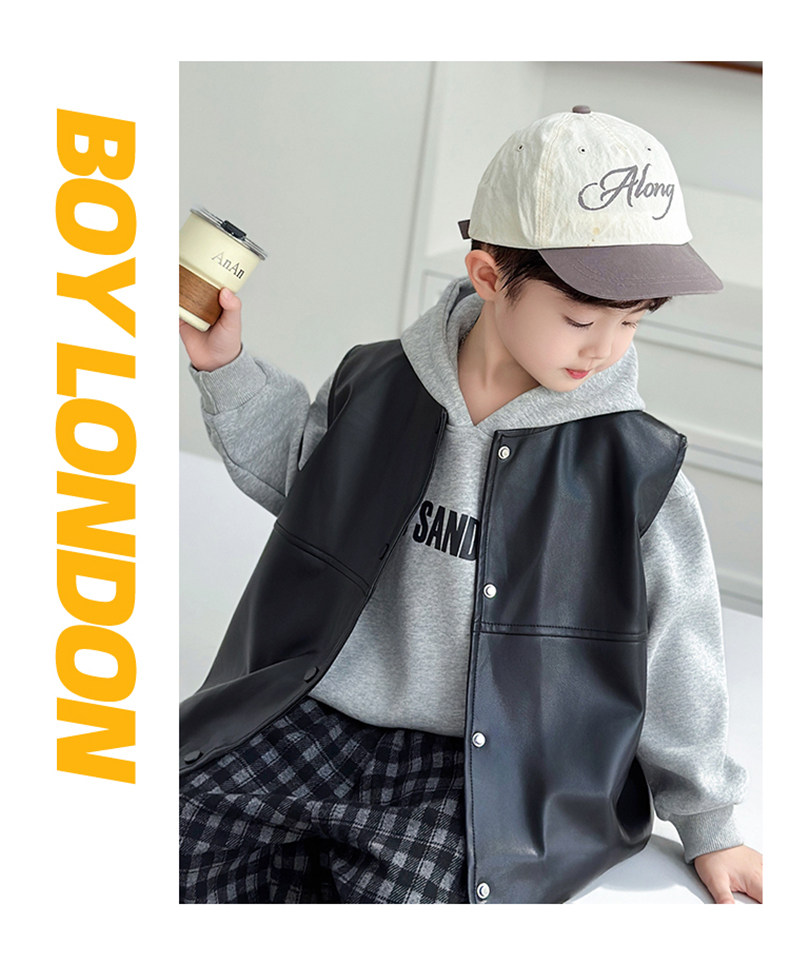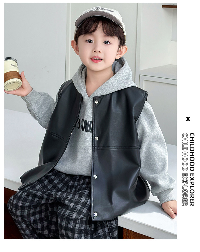 Boys' Sweatshirt Set Spring and Autumn 2025 New Children's Leather Jacket Vest Three-Piece Set Handsome Boys' Autumn Trendy Clothes