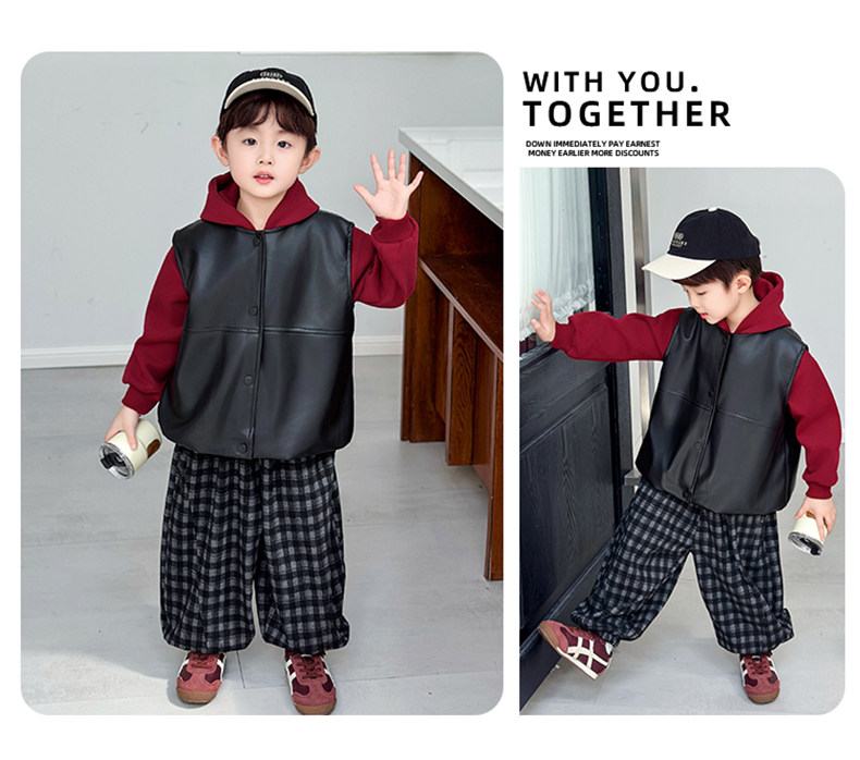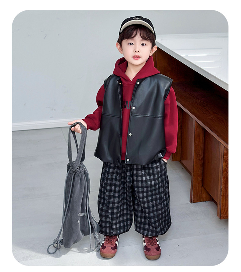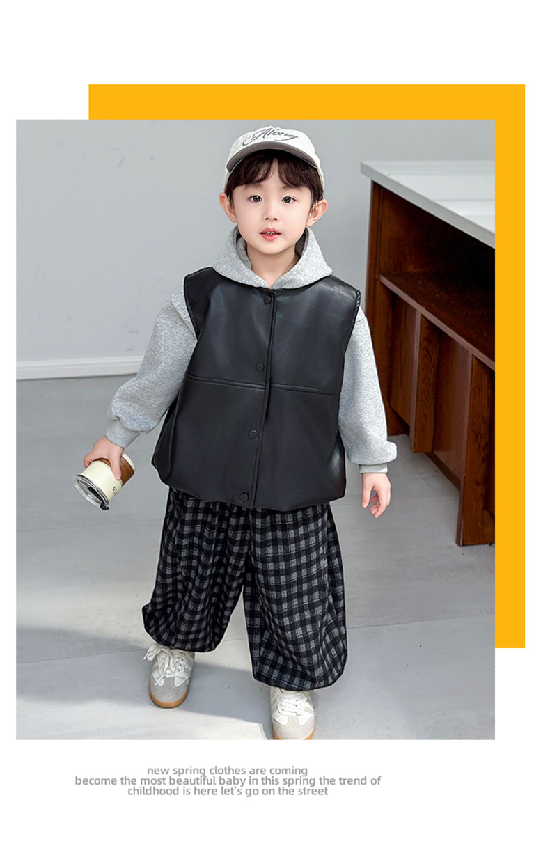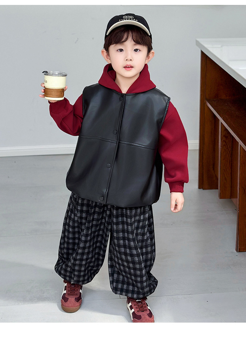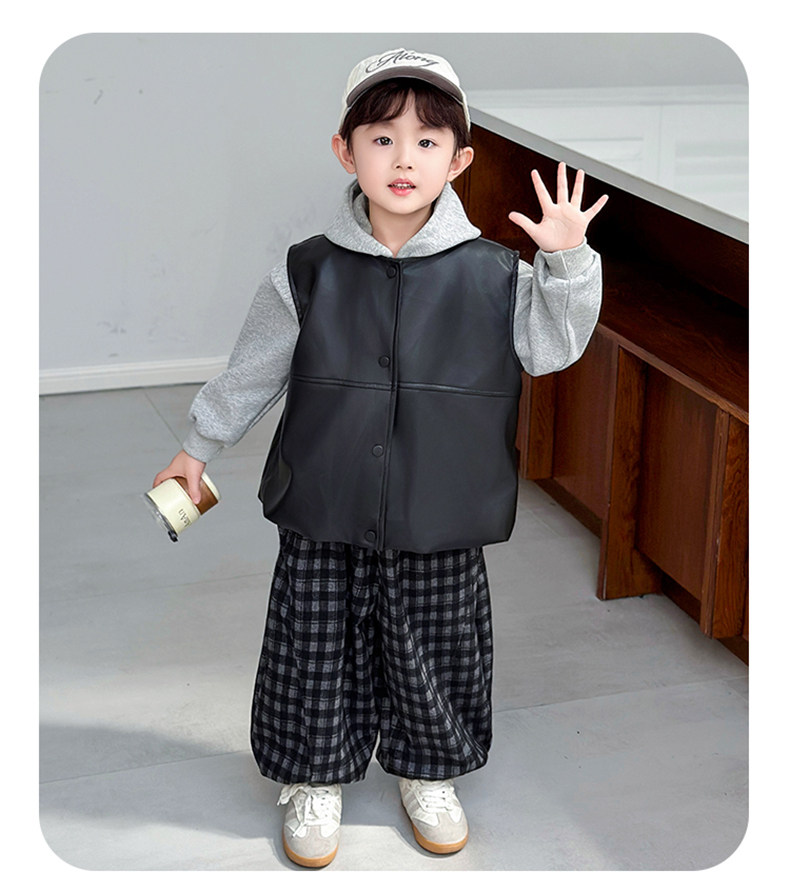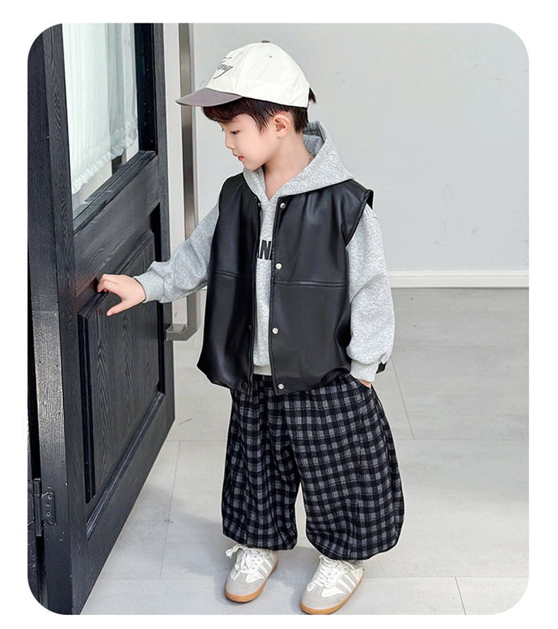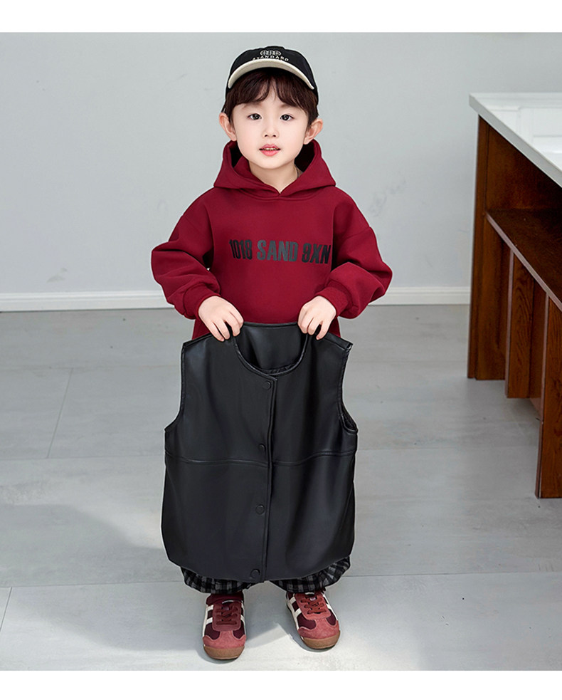 Boys' Sweatshirt Set Spring and Autumn 2025 New Children's Leather Jacket Vest Three-Piece Set Handsome Boys' Autumn Trendy Clothes