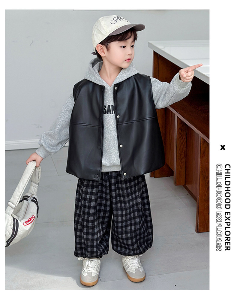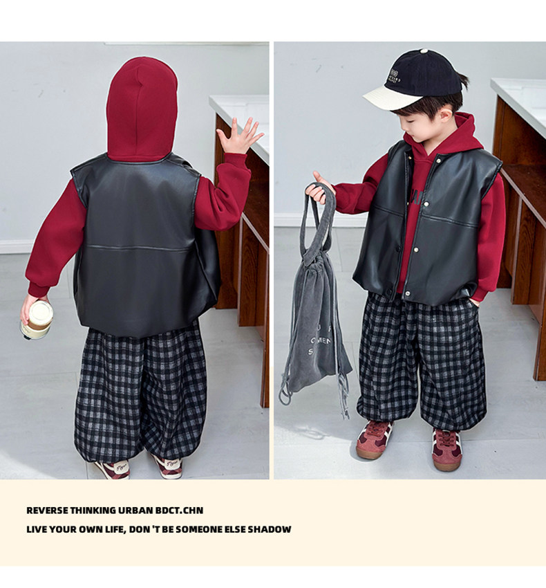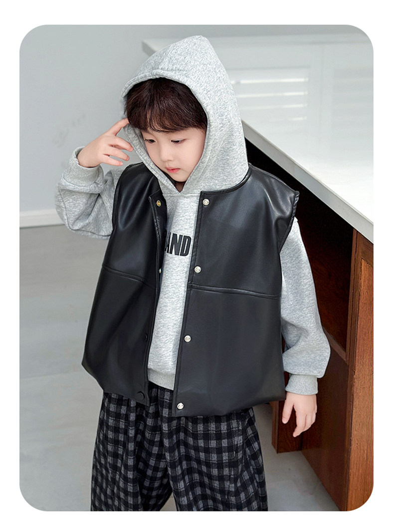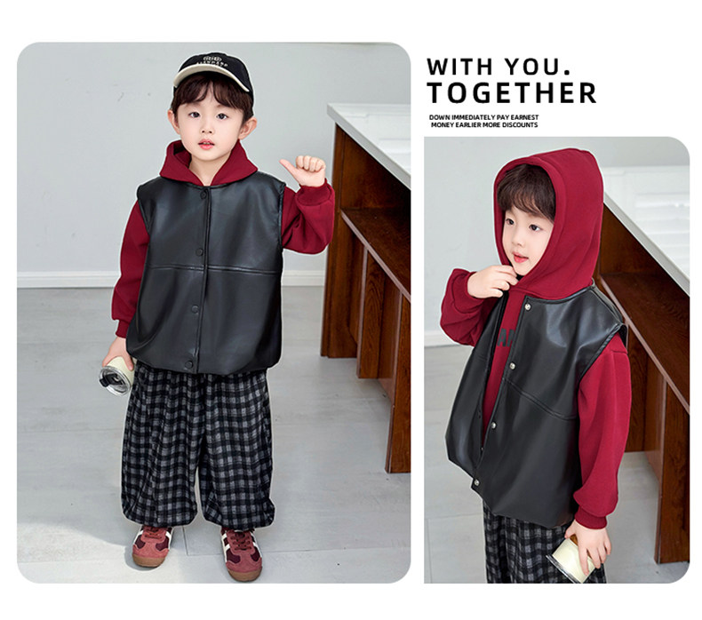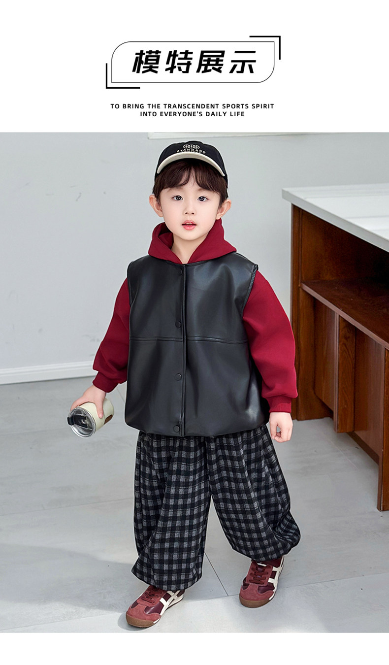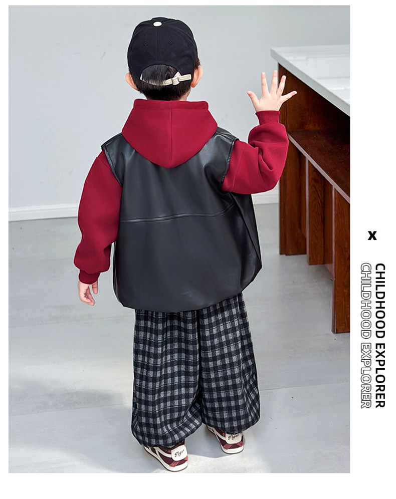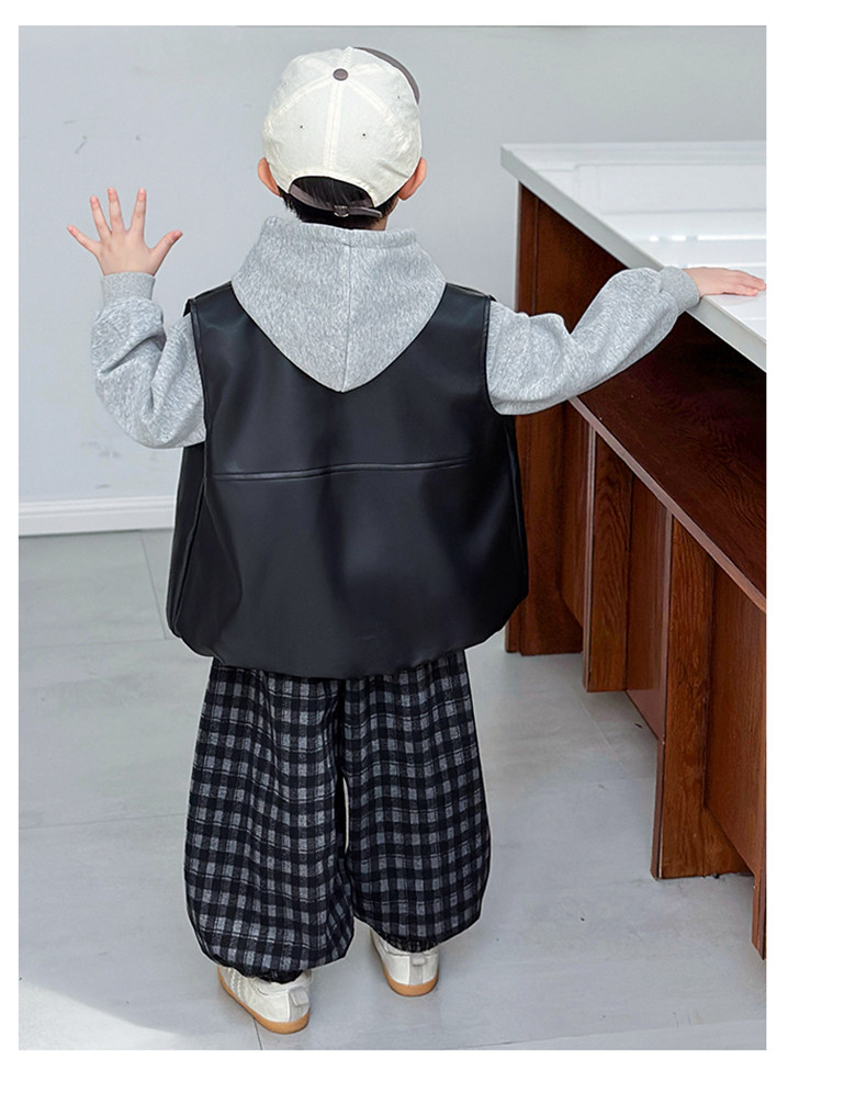Boys' Sweatshirt Set Spring and Autumn 2025 New Children's Leather Jacket Vest Three-Piece Set Handsome Boys' Autumn Trendy Clothes