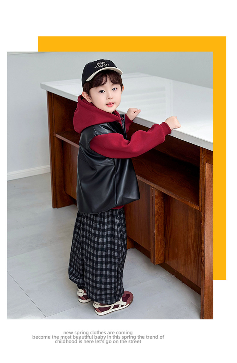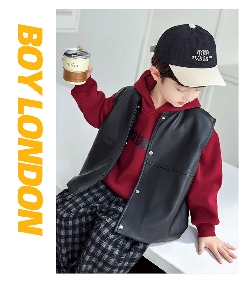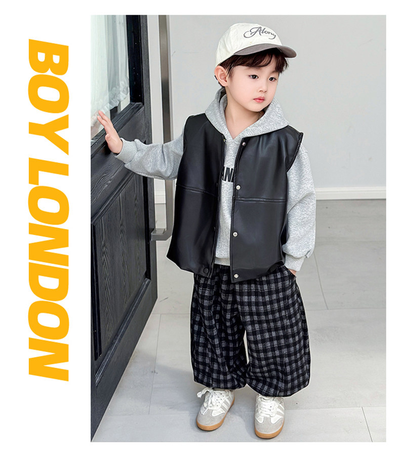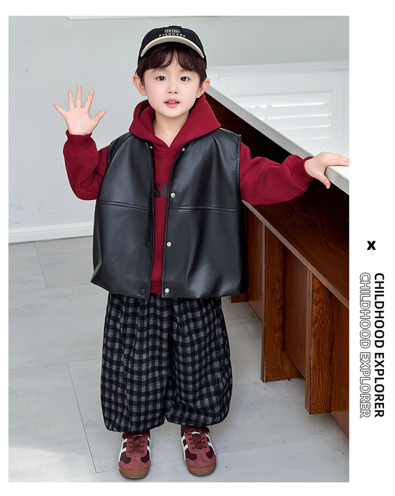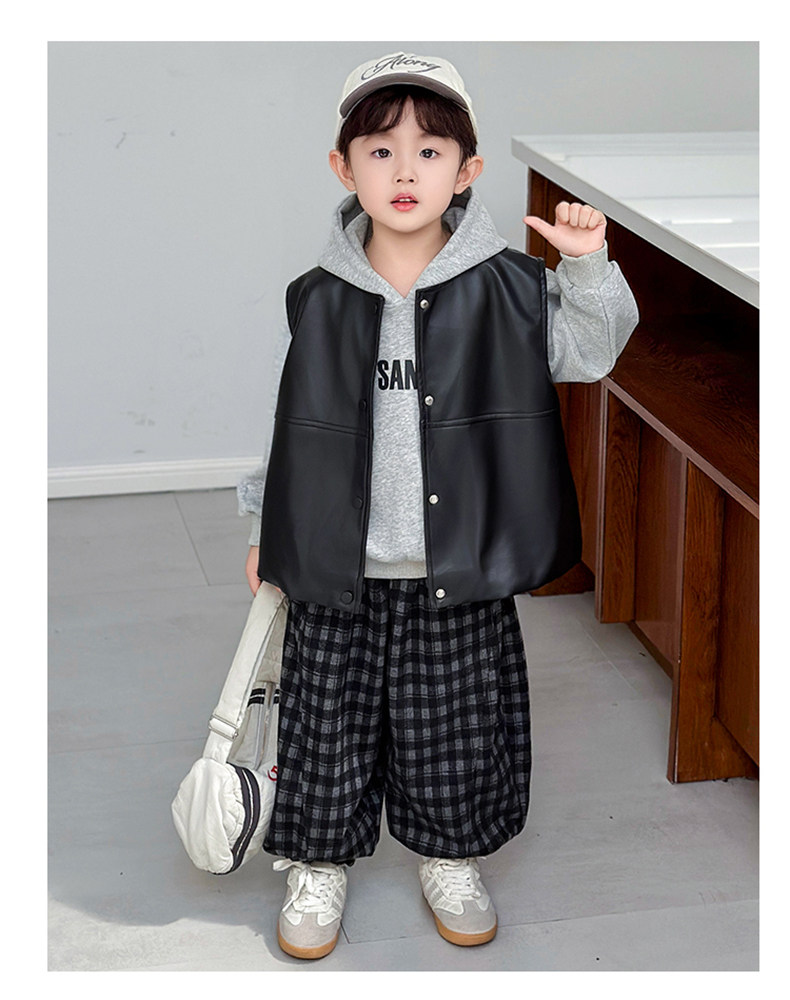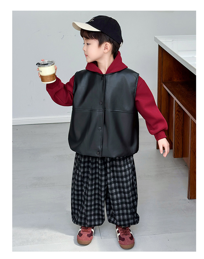 Boys' Sweatshirt Set Spring and Autumn 2025 New Children's Leather Jacket Vest Three-Piece Set Handsome Boys' Autumn Trendy Clothes