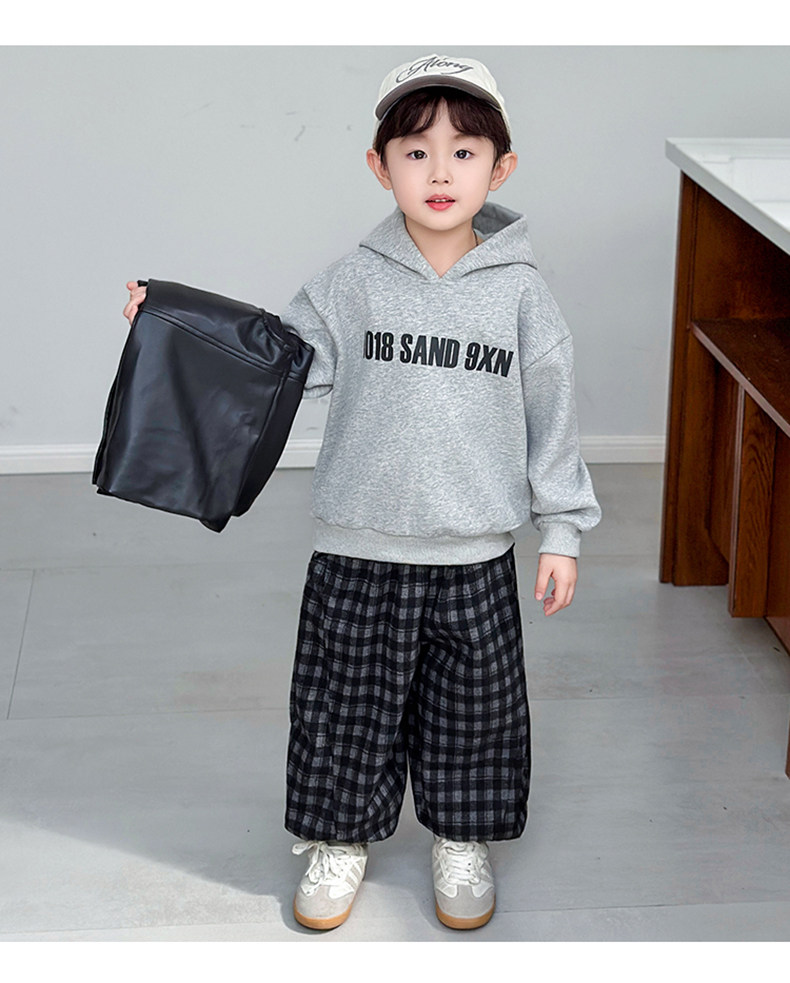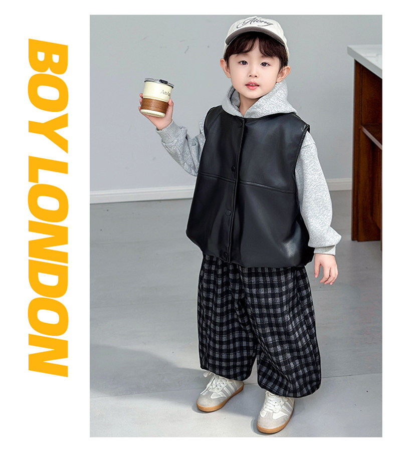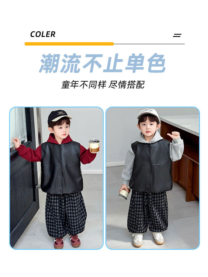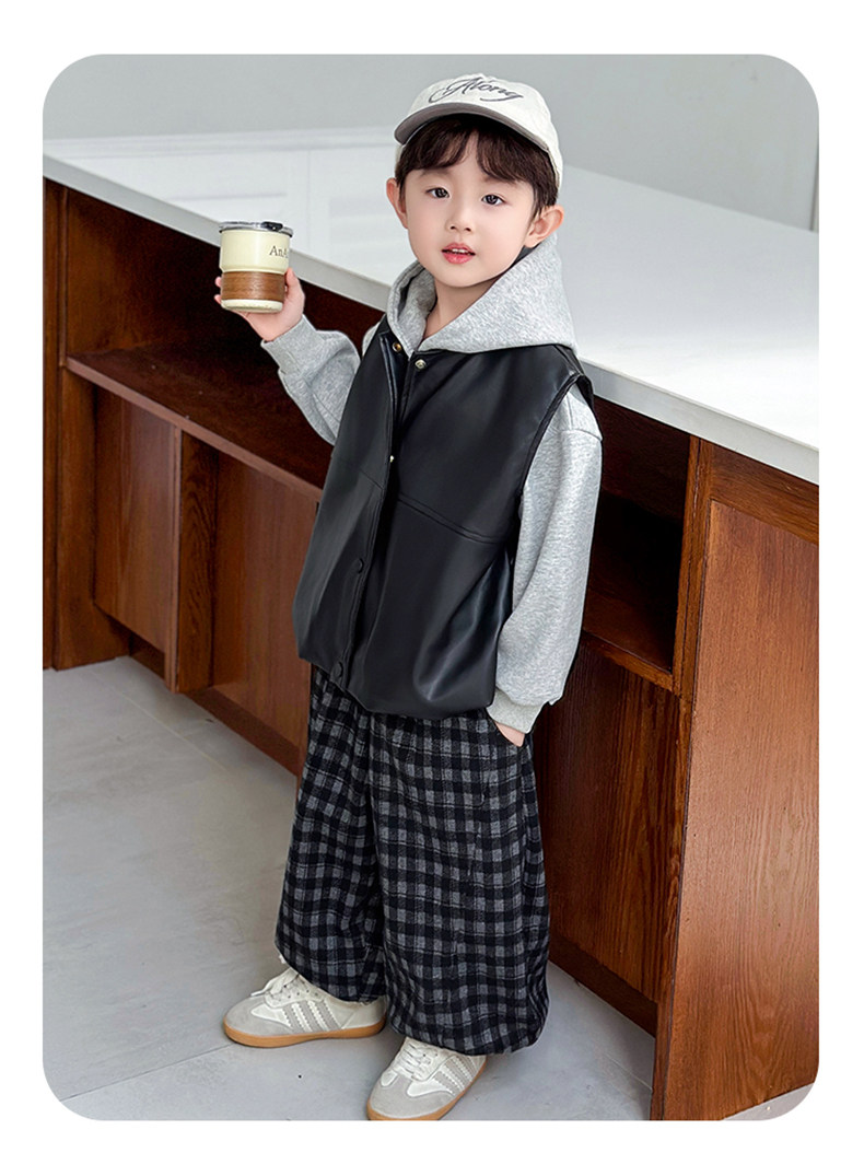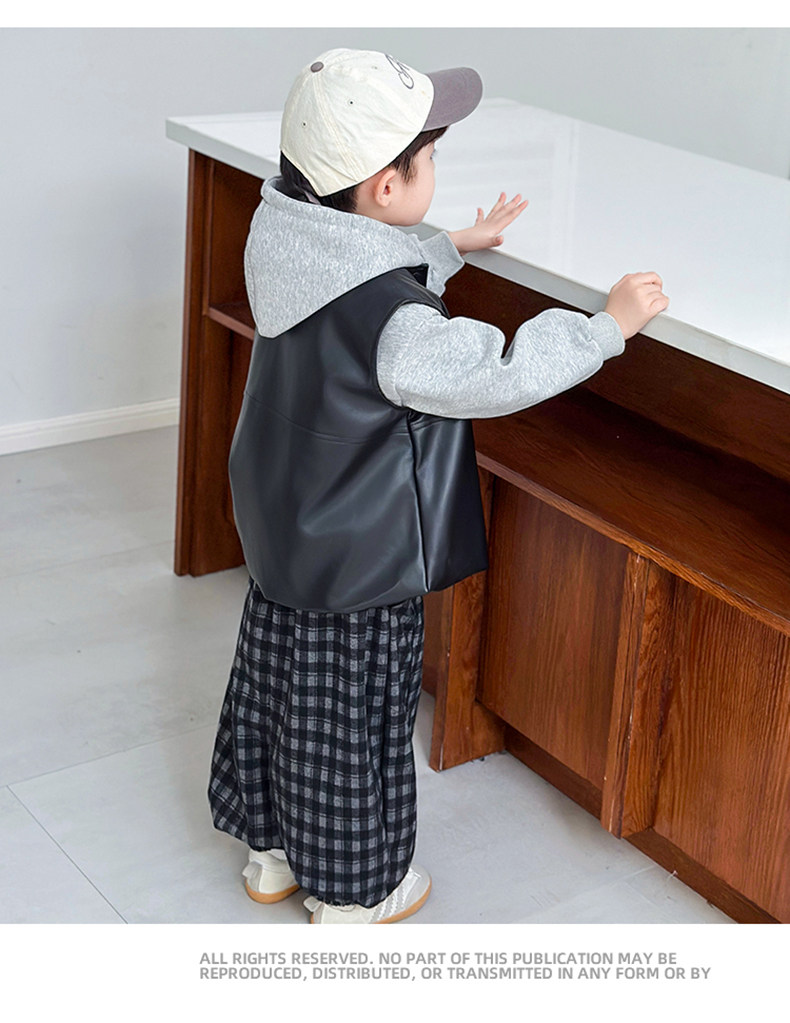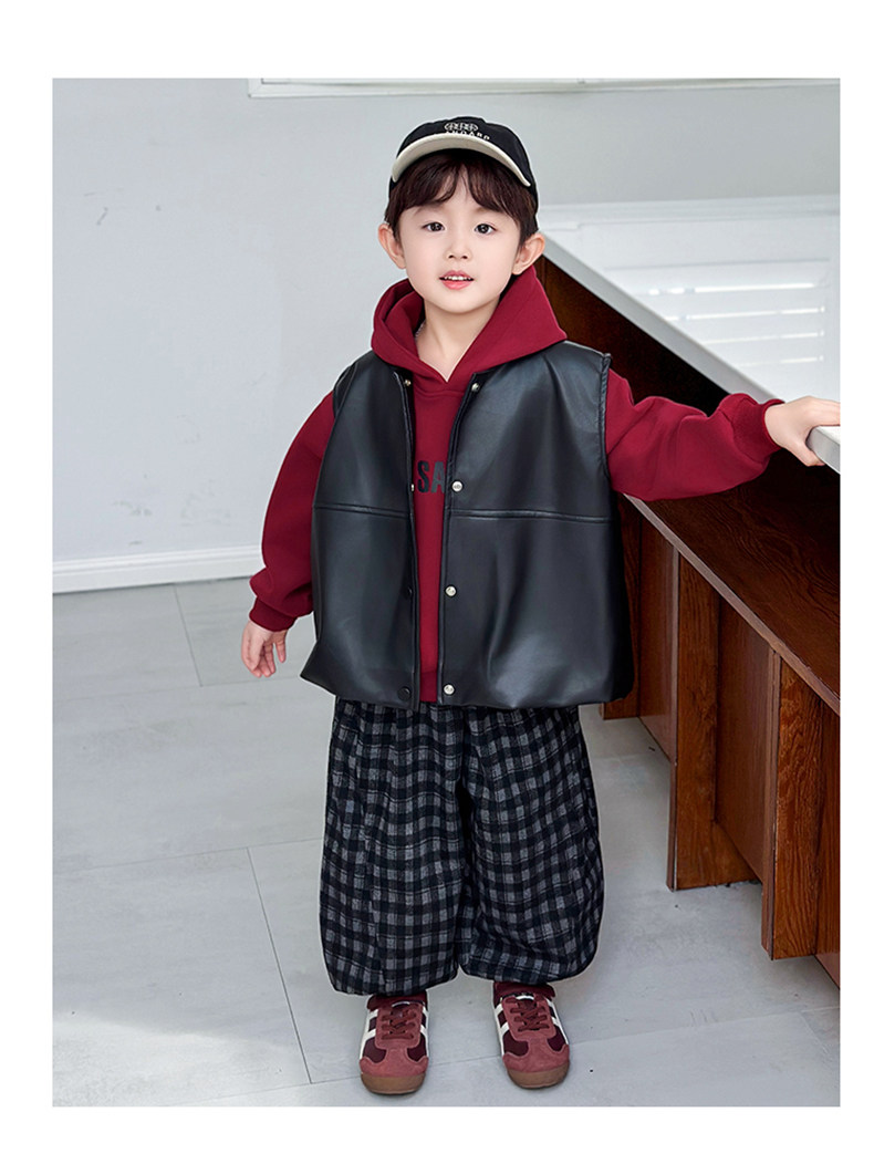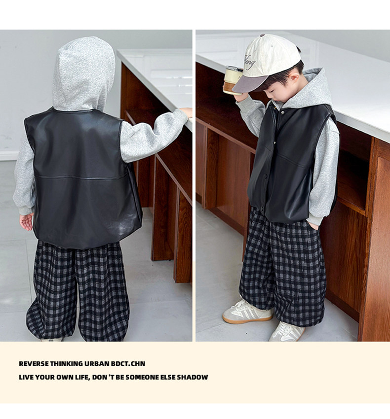 Boys' Sweatshirt Set Spring and Autumn 2025 New Children's Leather Jacket Vest Three-Piece Set Handsome Boys' Autumn Trendy Clothes