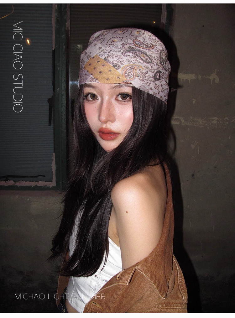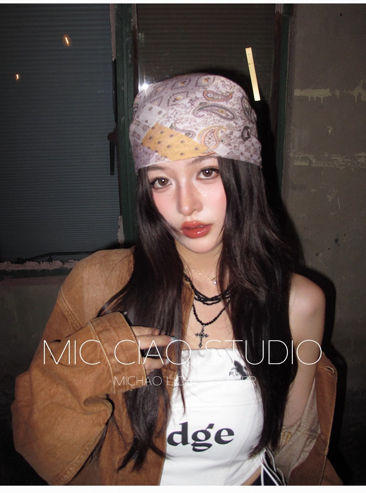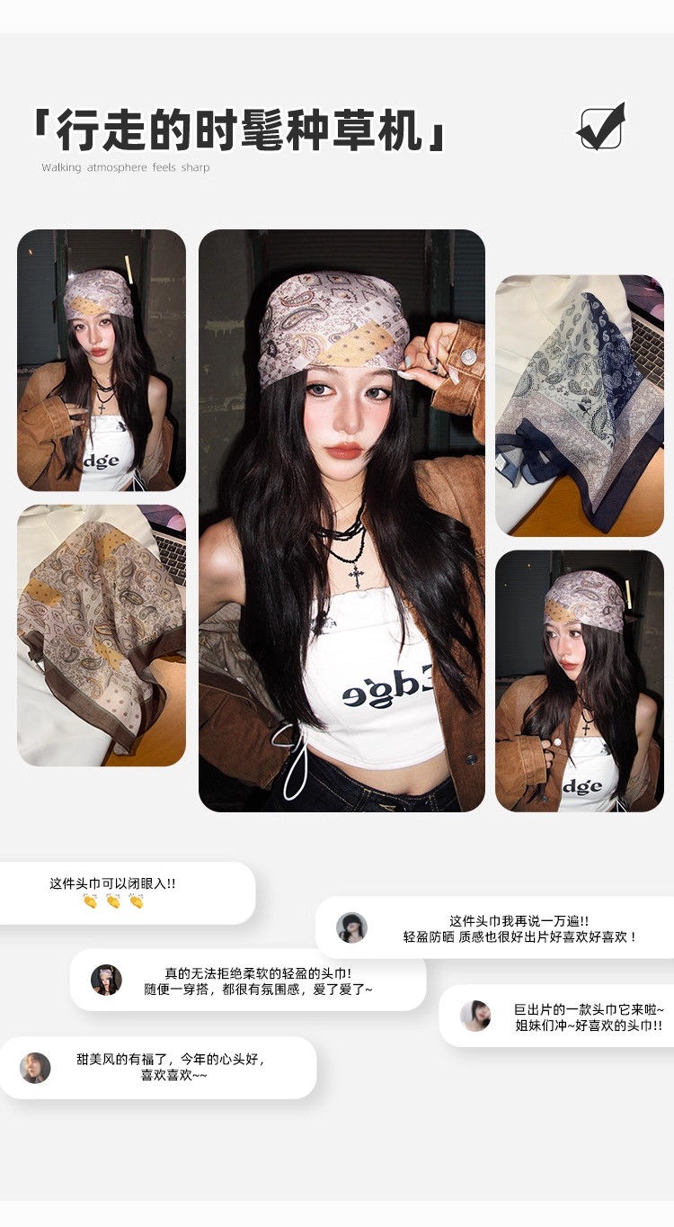 Y2K American Retro Headscarf 2025 New Millennium Hot Girl Trendy Male Street Dance Hip-Hop Square Scarf Silk Scarf Head Wrap