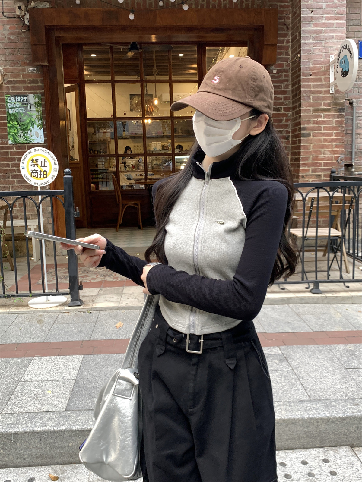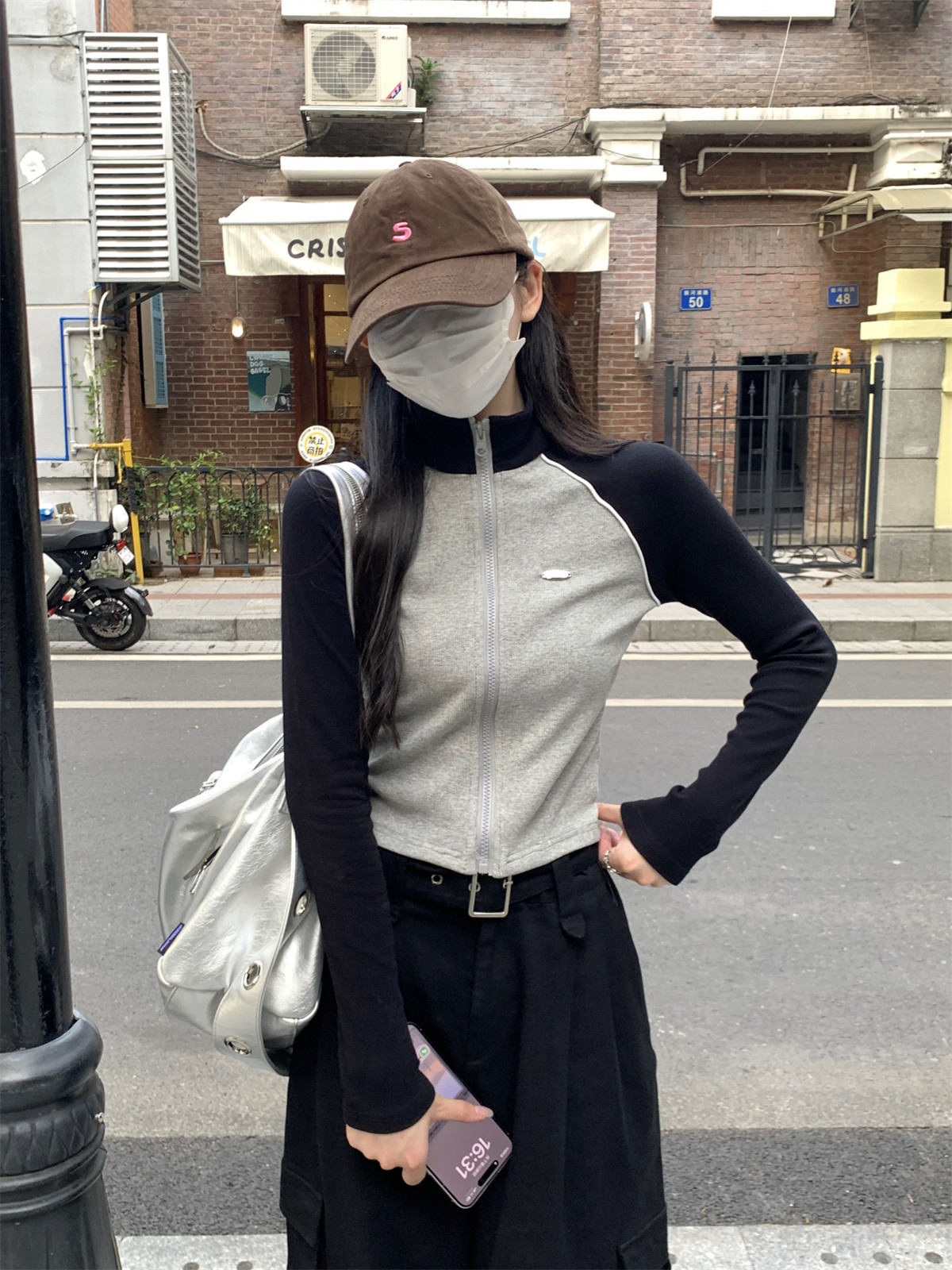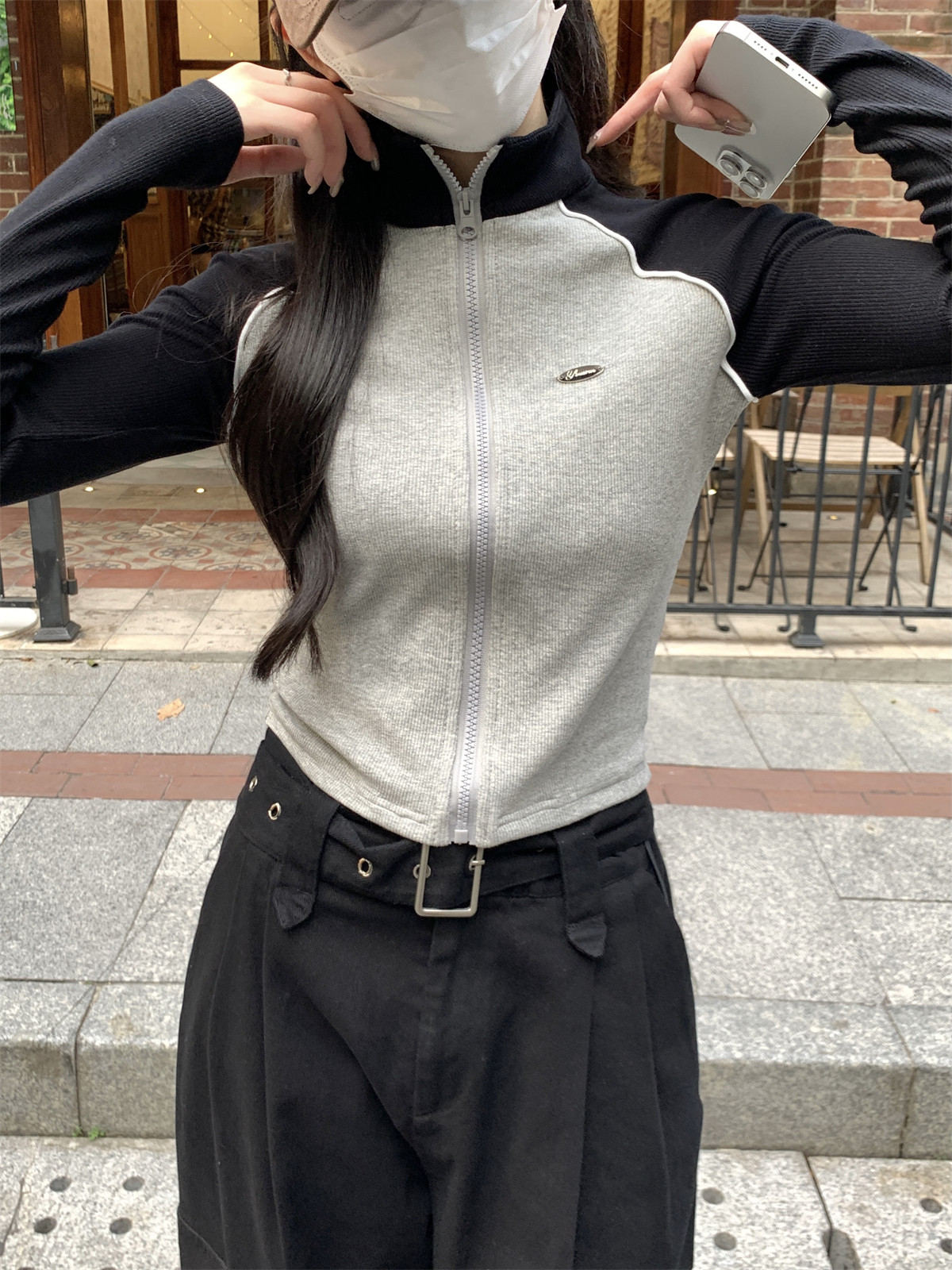 Korean Style Sporty Stand-Up Collar Color-Block Raglan Sleeve Cardigan for Women 2026 Spring New Short Zip-Up Top for Petite Figures