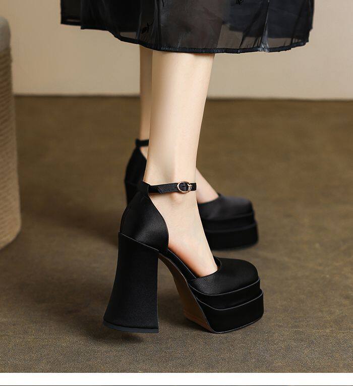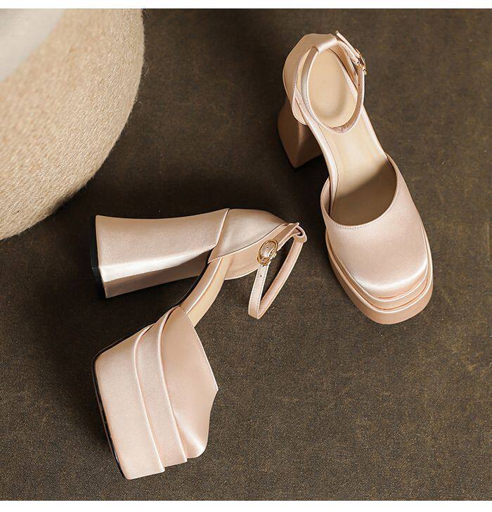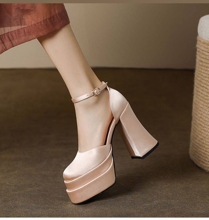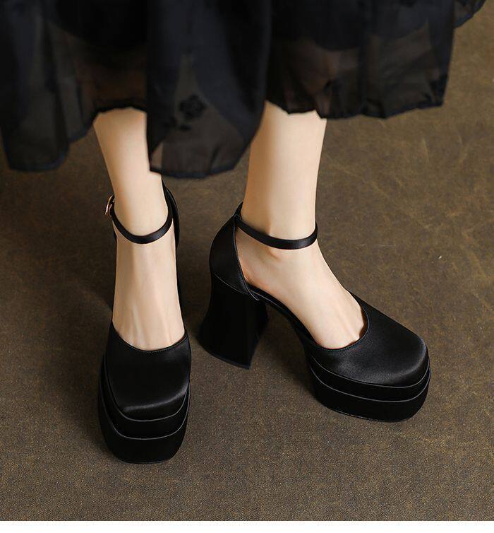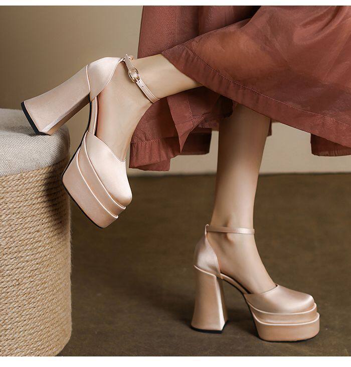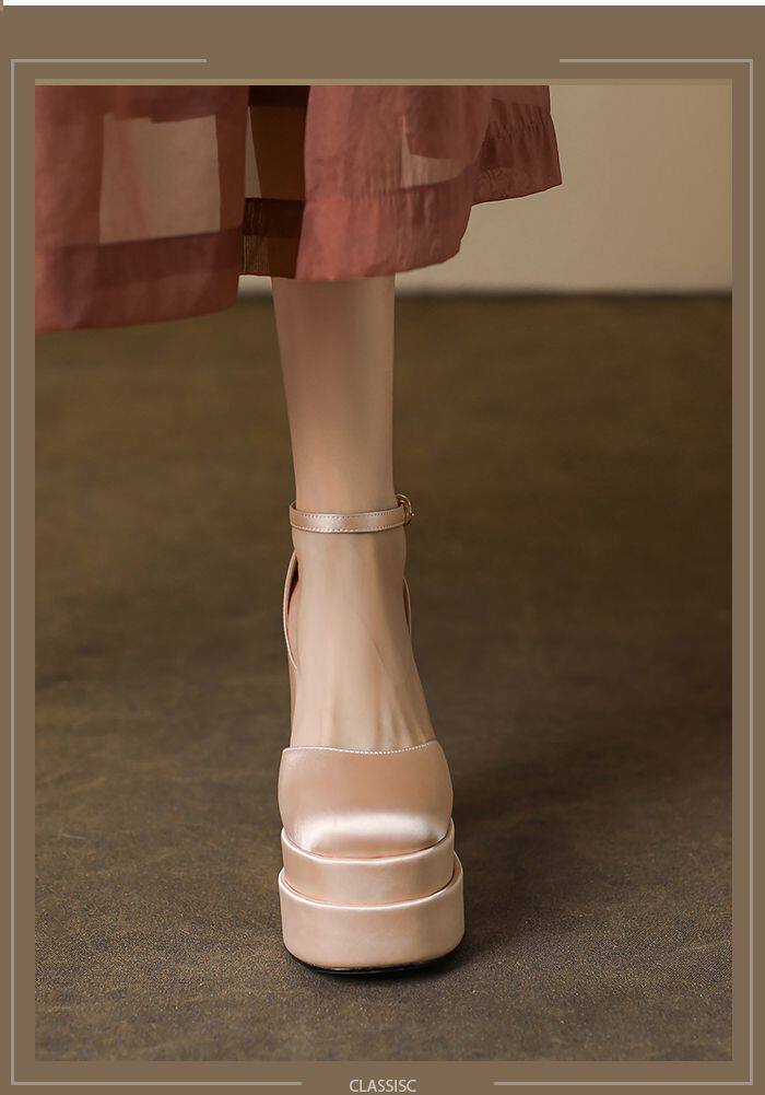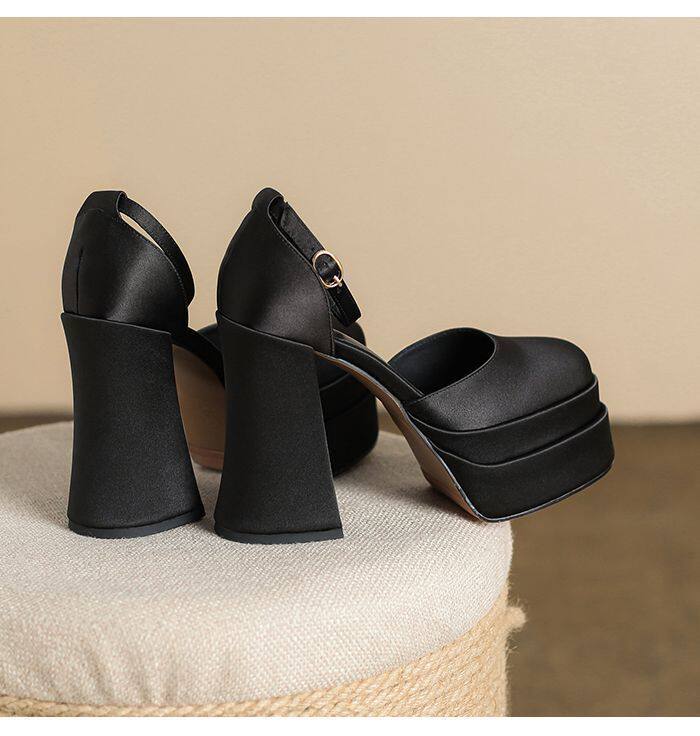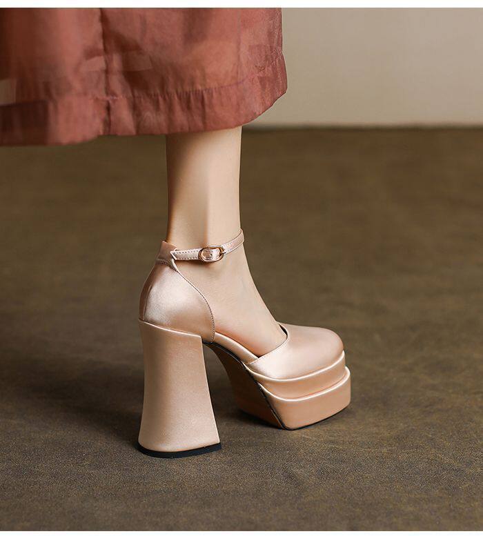 12cm Wedding Shoes, Wedding Dress Essential, Petite-Friendly, Chunky Heel, Platform Sole, Mary Jane High Heels, Fall 2024