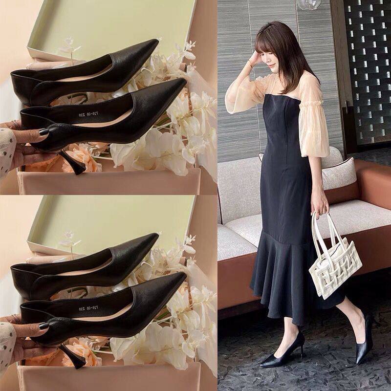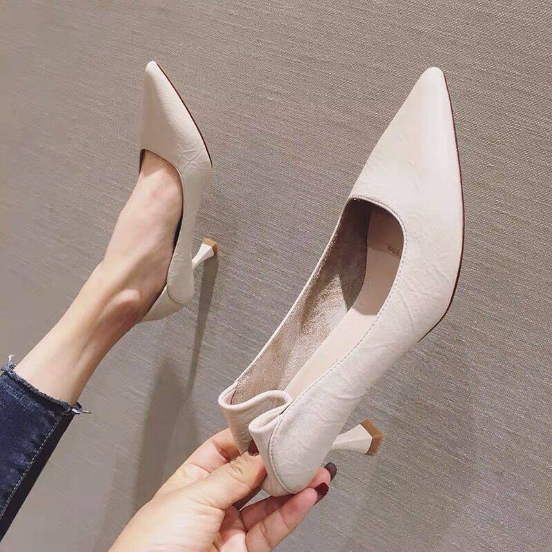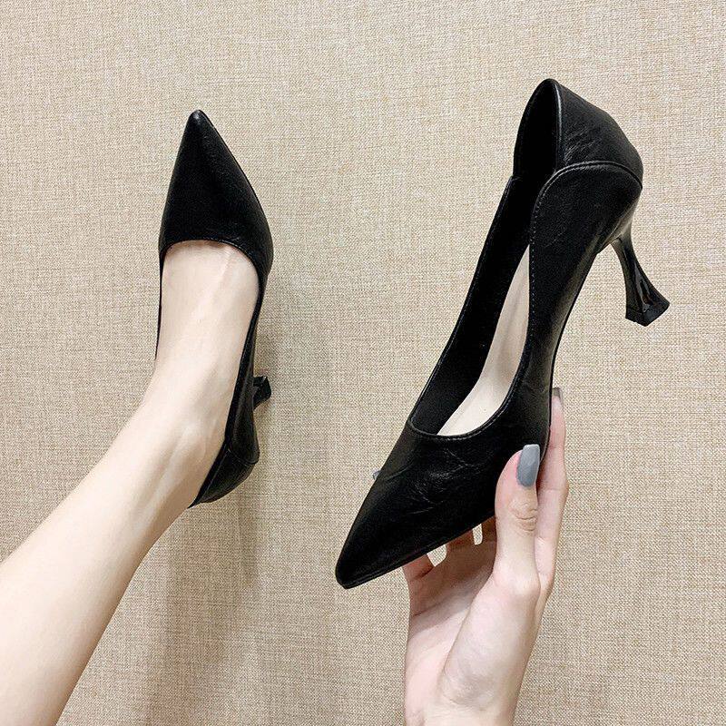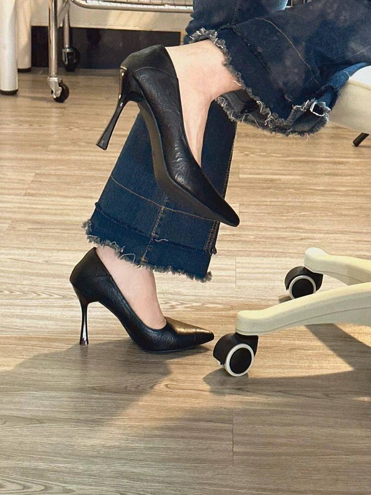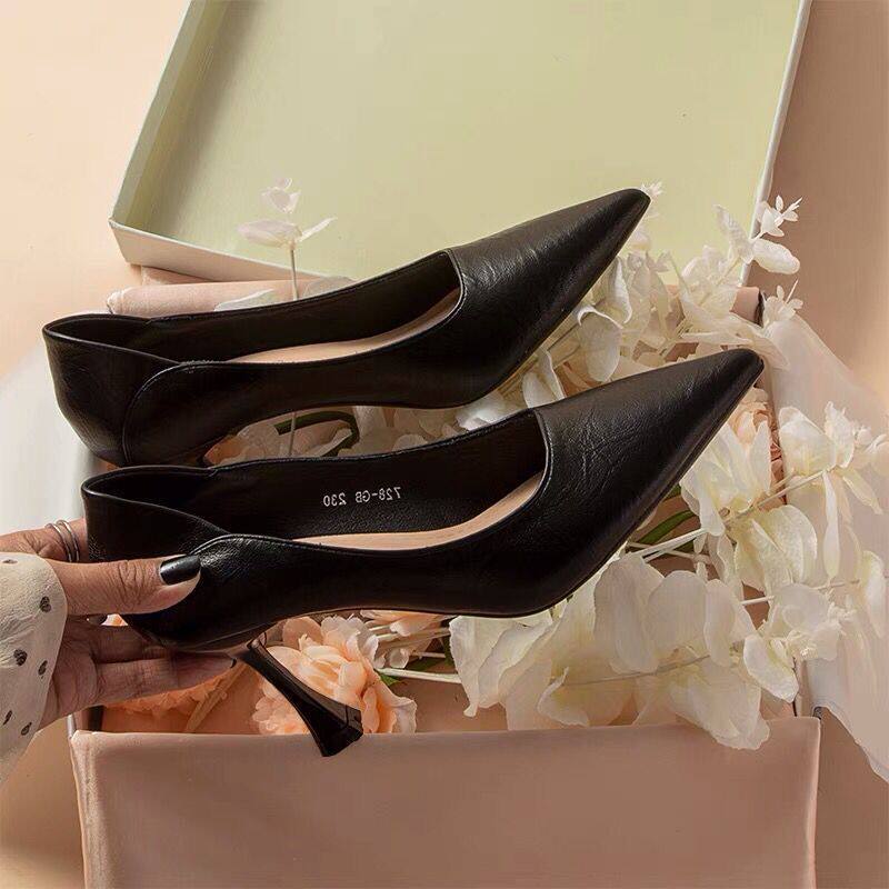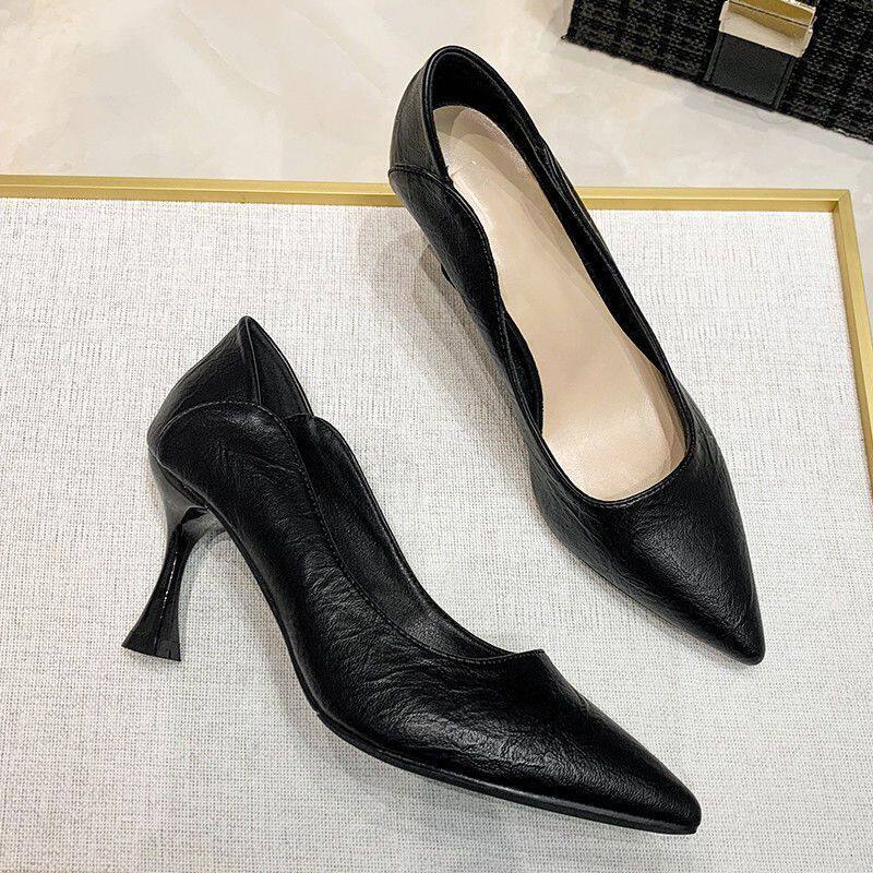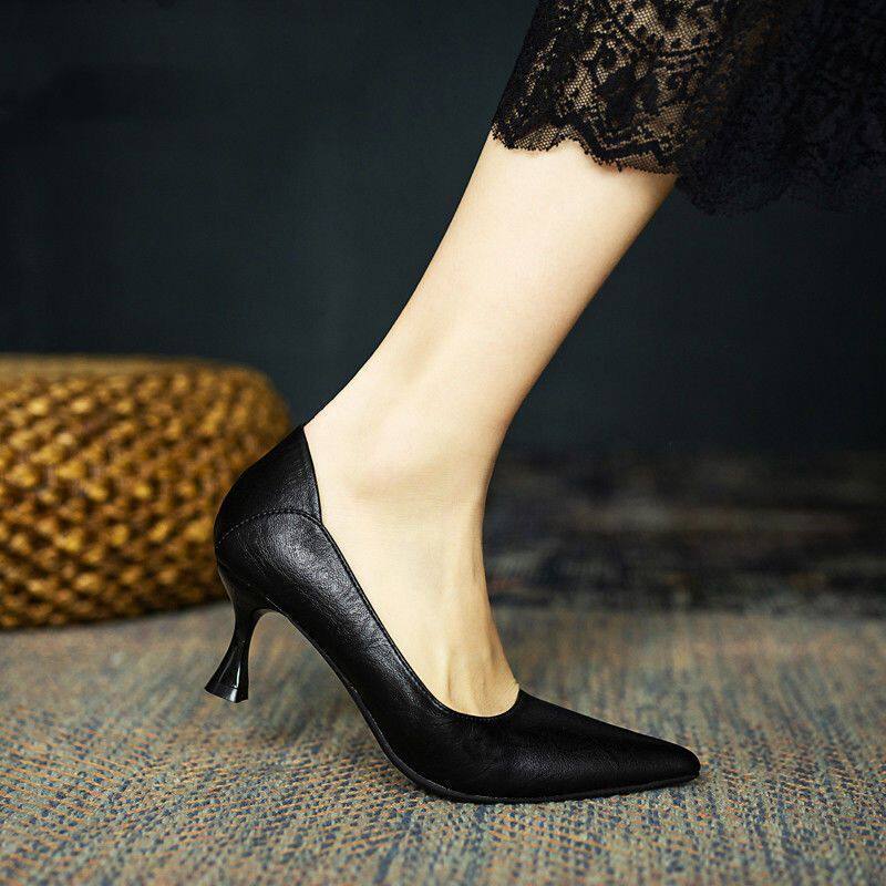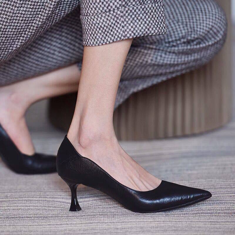 High-Heeled Shoes for Women, New Style, Soft Leather, Comfortable for Feet, Professional Work Shoes, Pointed Toe, Interview Etiquette Shoes, 2024