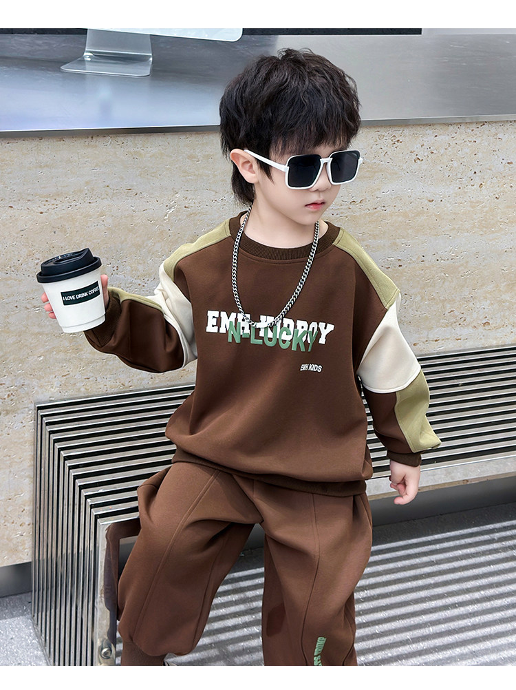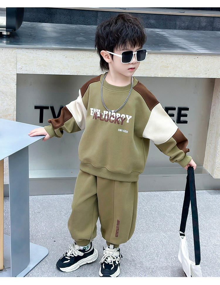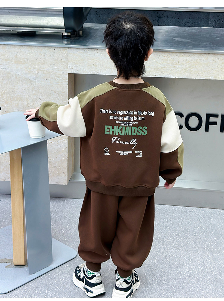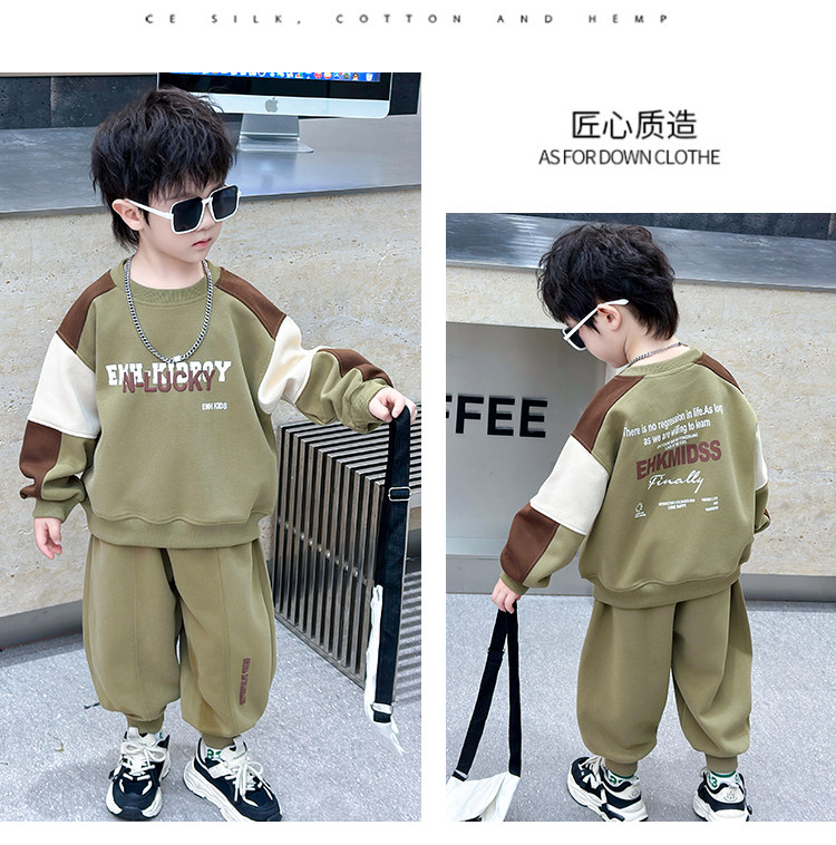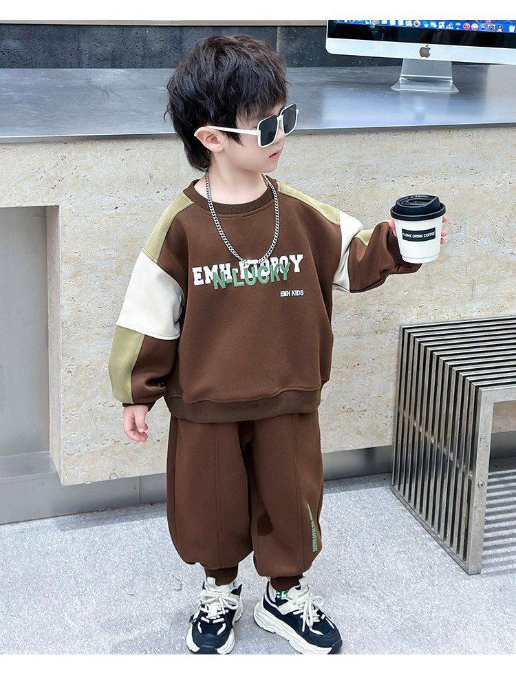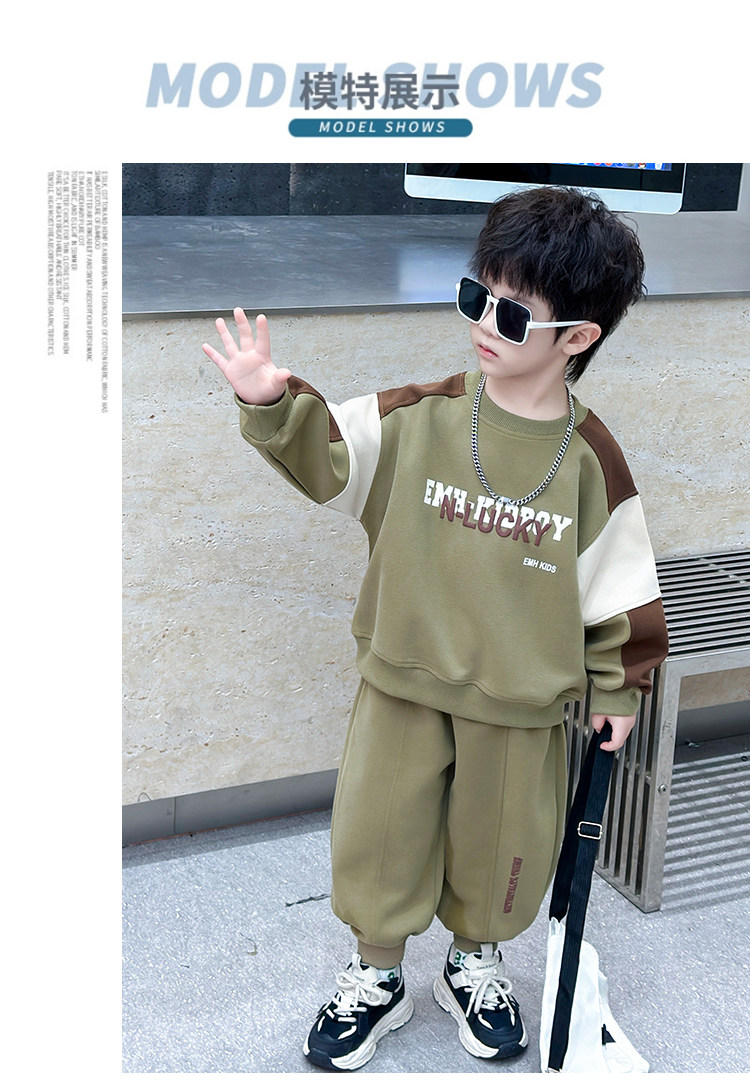 Boys' Autumn and Winter Fleece-Lined Thickened Suit 2025 New Stylish Warm Sweatshirt Two-Piece Set for Boys Trendy Children's Clothing