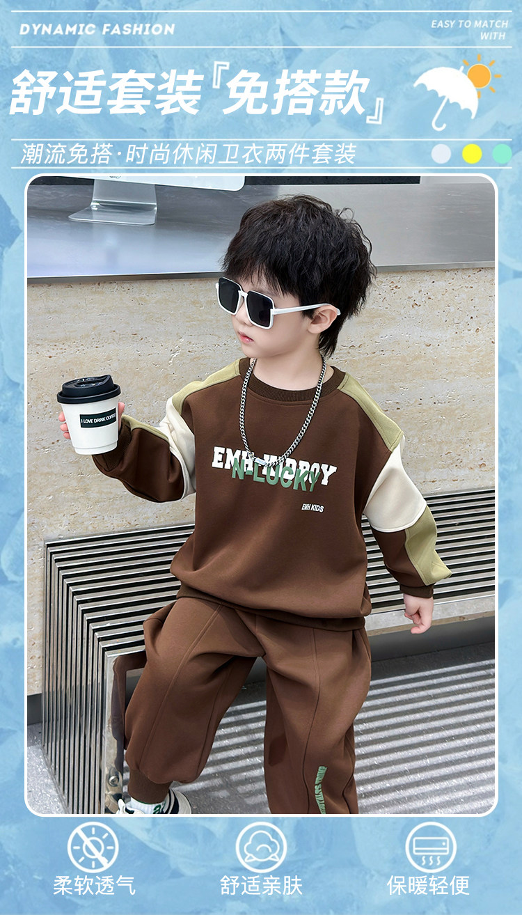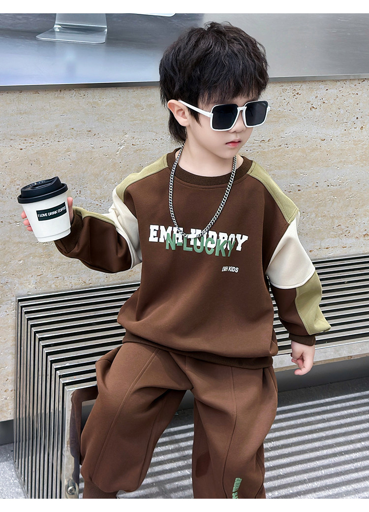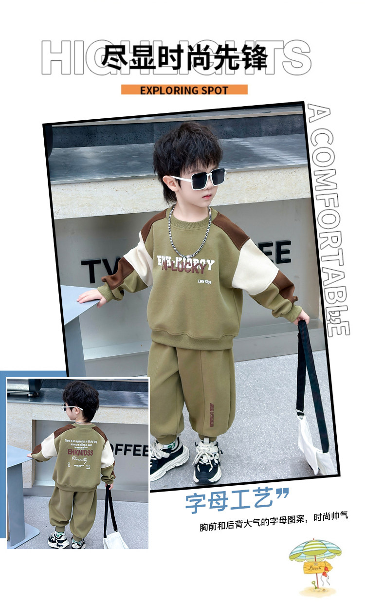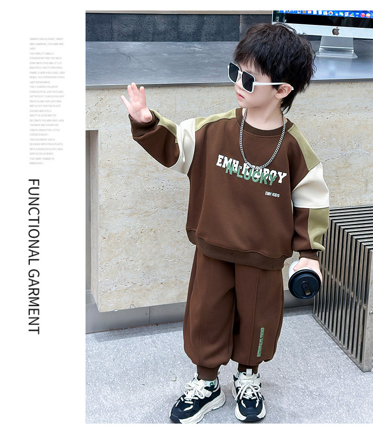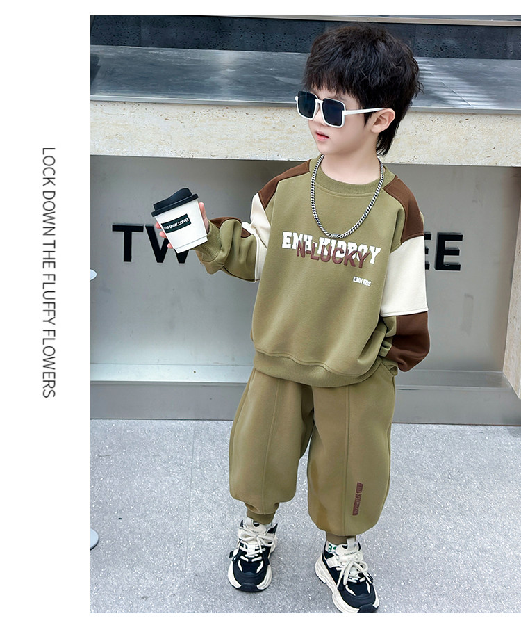 Boys' Autumn and Winter Fleece-Lined Thickened Suit 2025 New Stylish Warm Sweatshirt Two-Piece Set for Boys Trendy Children's Clothing