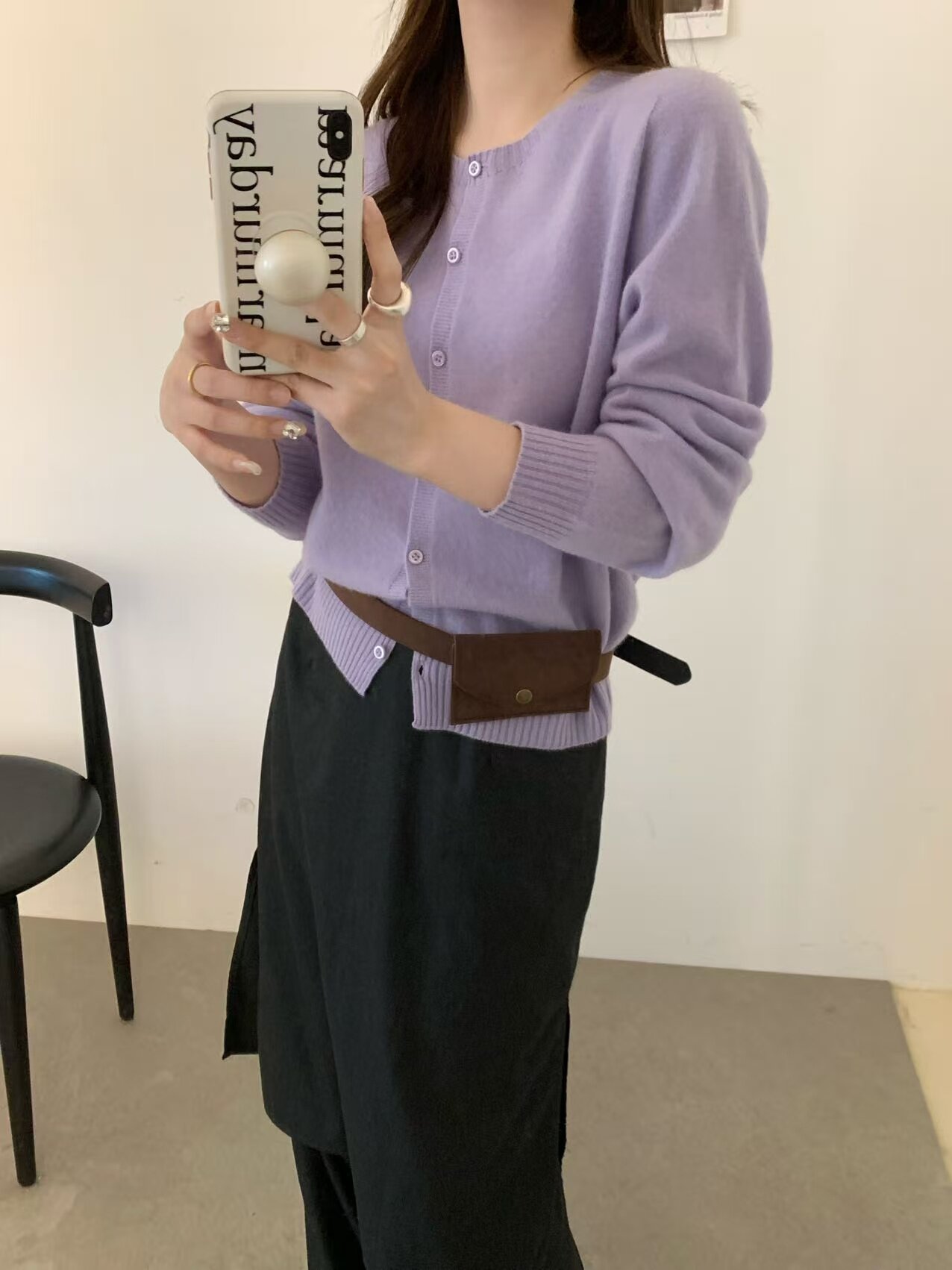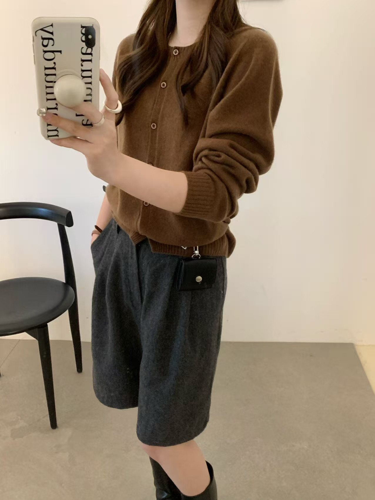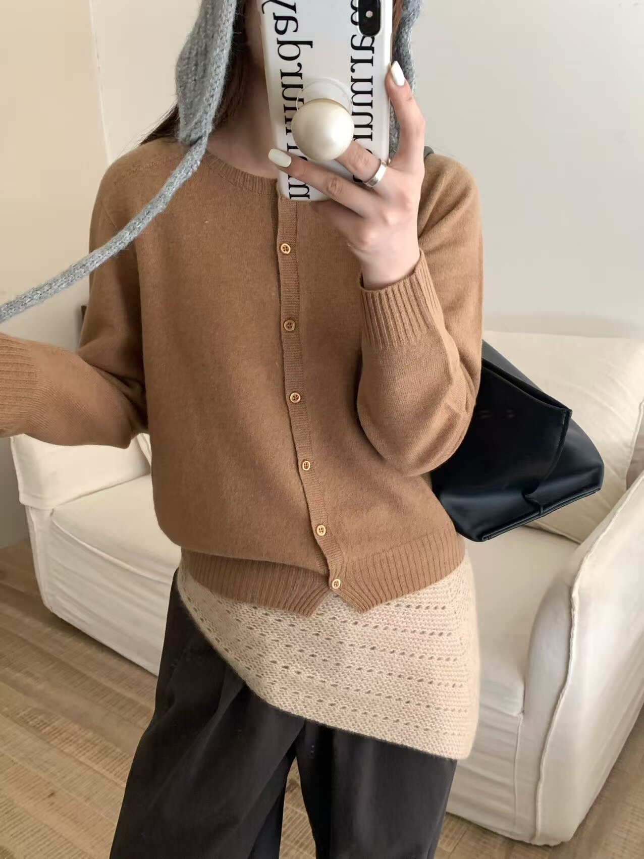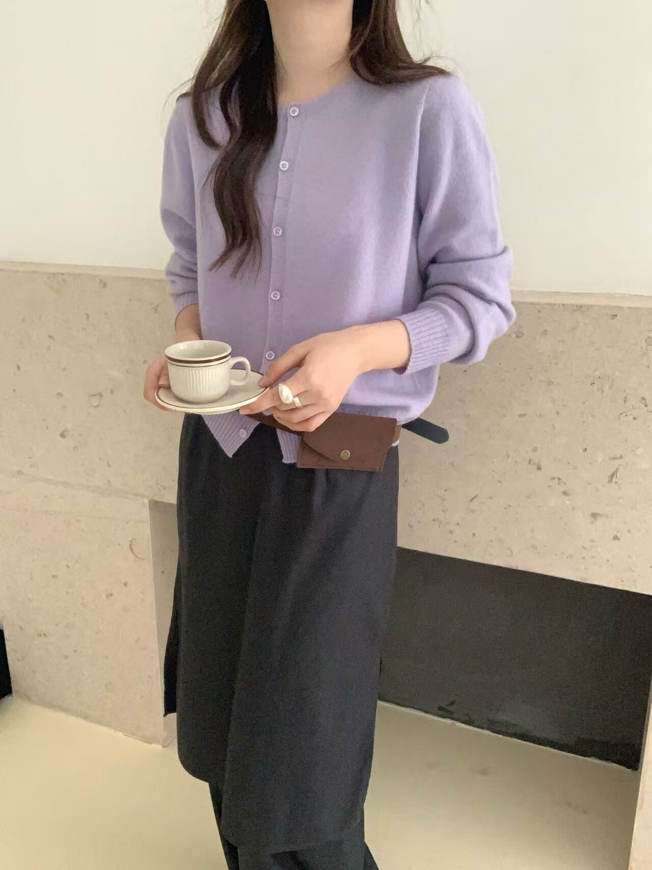 All wool seamless 6629 early spring new korean style round neck single breasted wool knitted cardigan women's loose top trendy