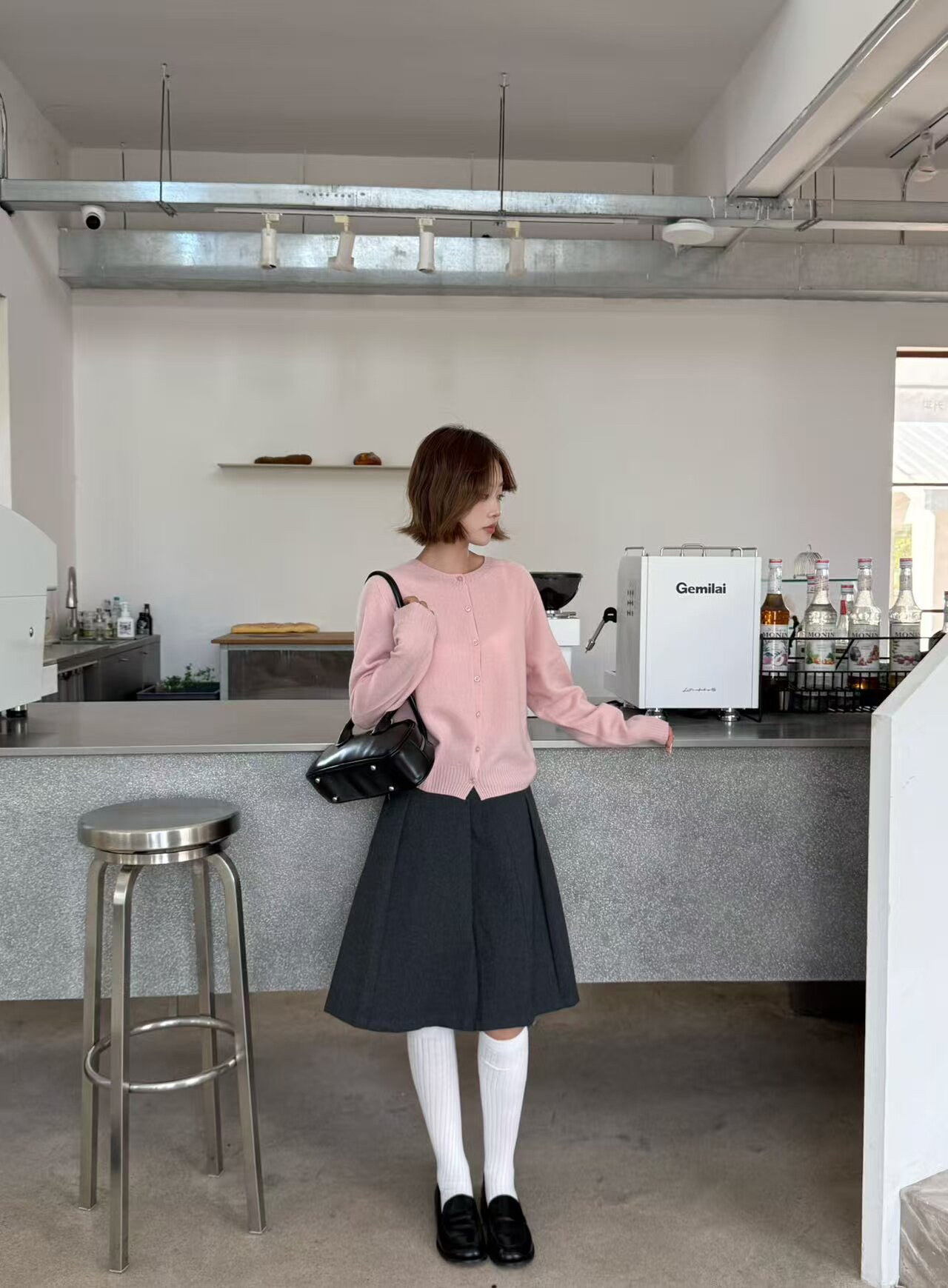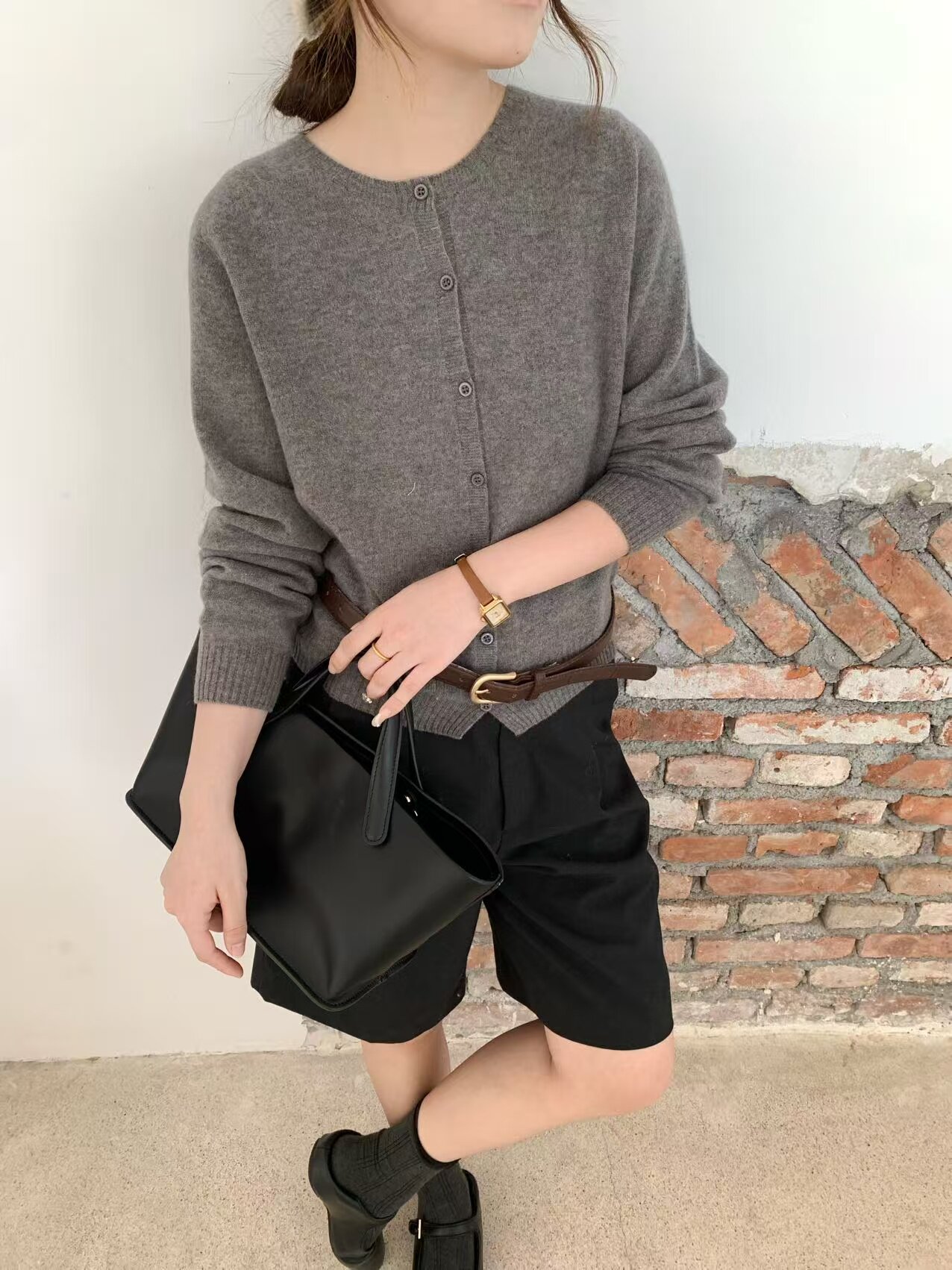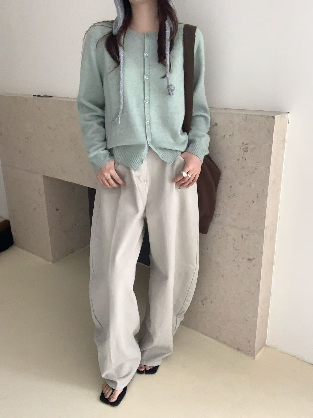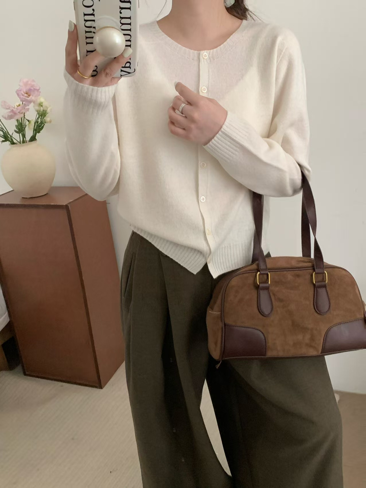 All wool seamless 6629 early spring new korean style round neck single breasted wool knitted cardigan women's loose top trendy