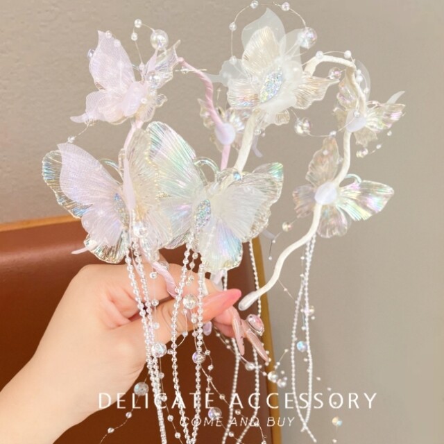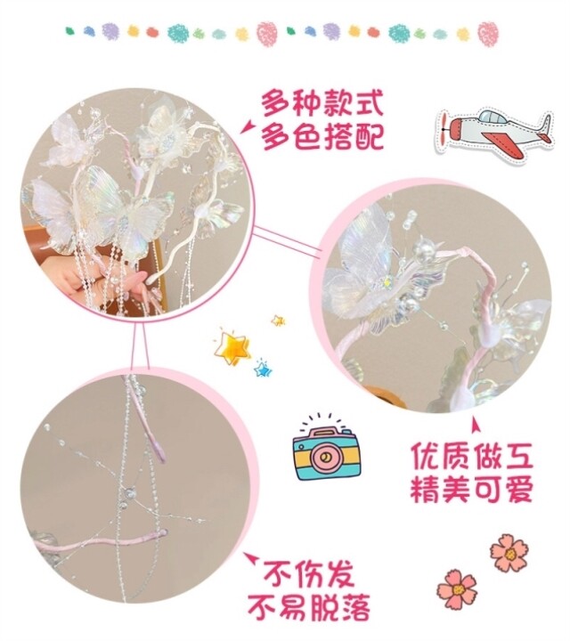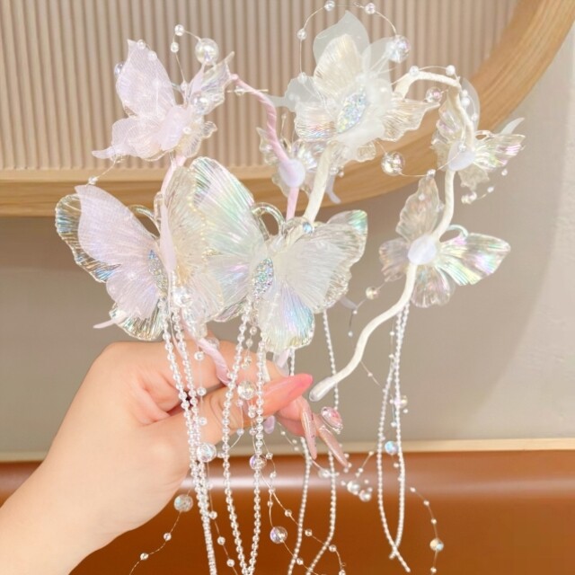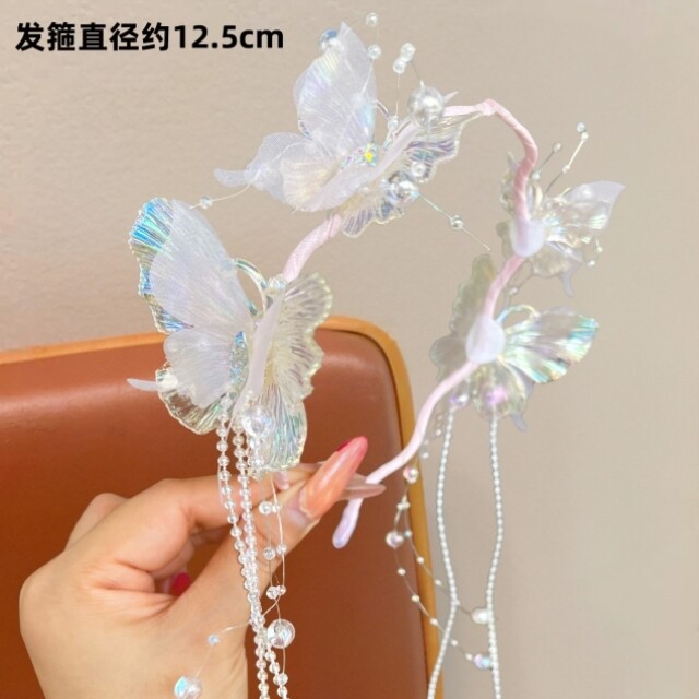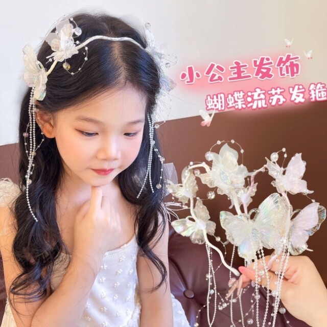 Super Fairy Butterfly Tassel Headband for Girls, Ancient Style Hanfu Headwear, Little Girl Performance Catwalk Hairpin, Girls' Headband