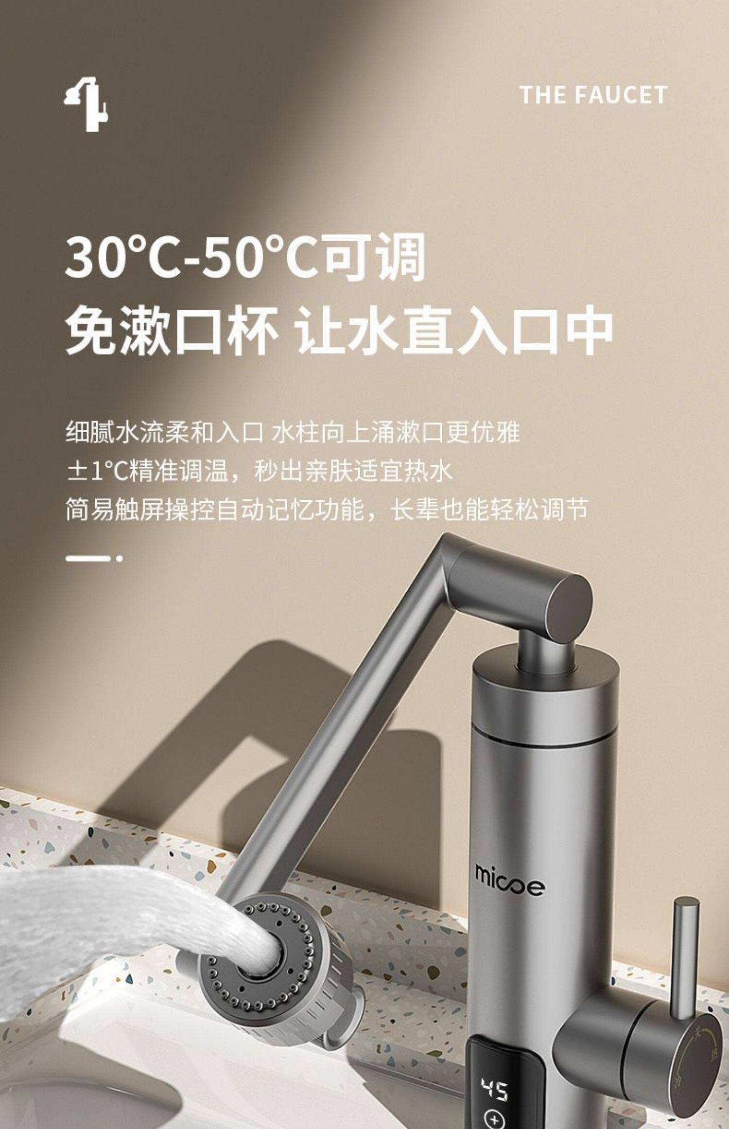 Four Seasons Muge Electric Hot Water Faucet Instant Heating Mechanical Arm Bathroom Kitchen Tap Water Small Water Heater