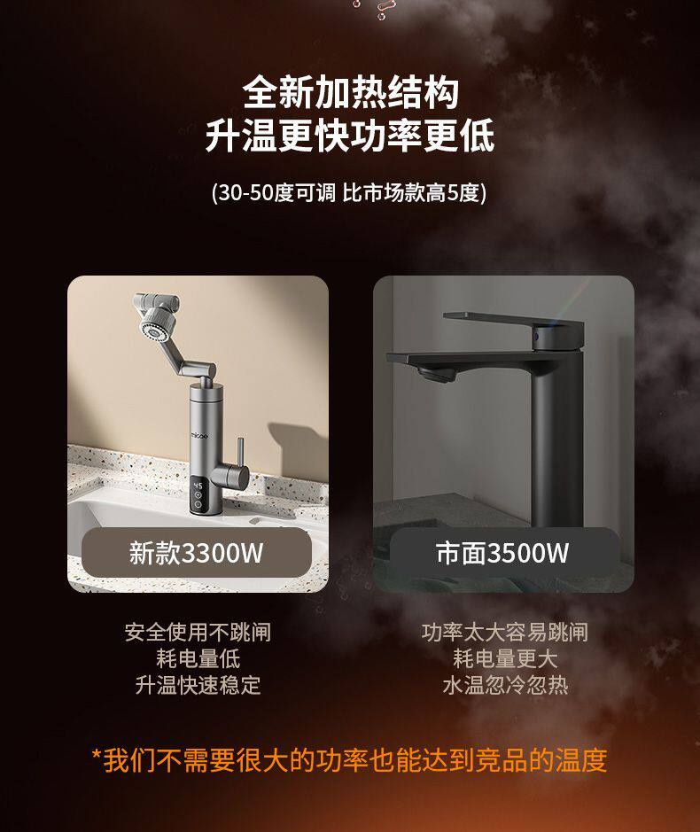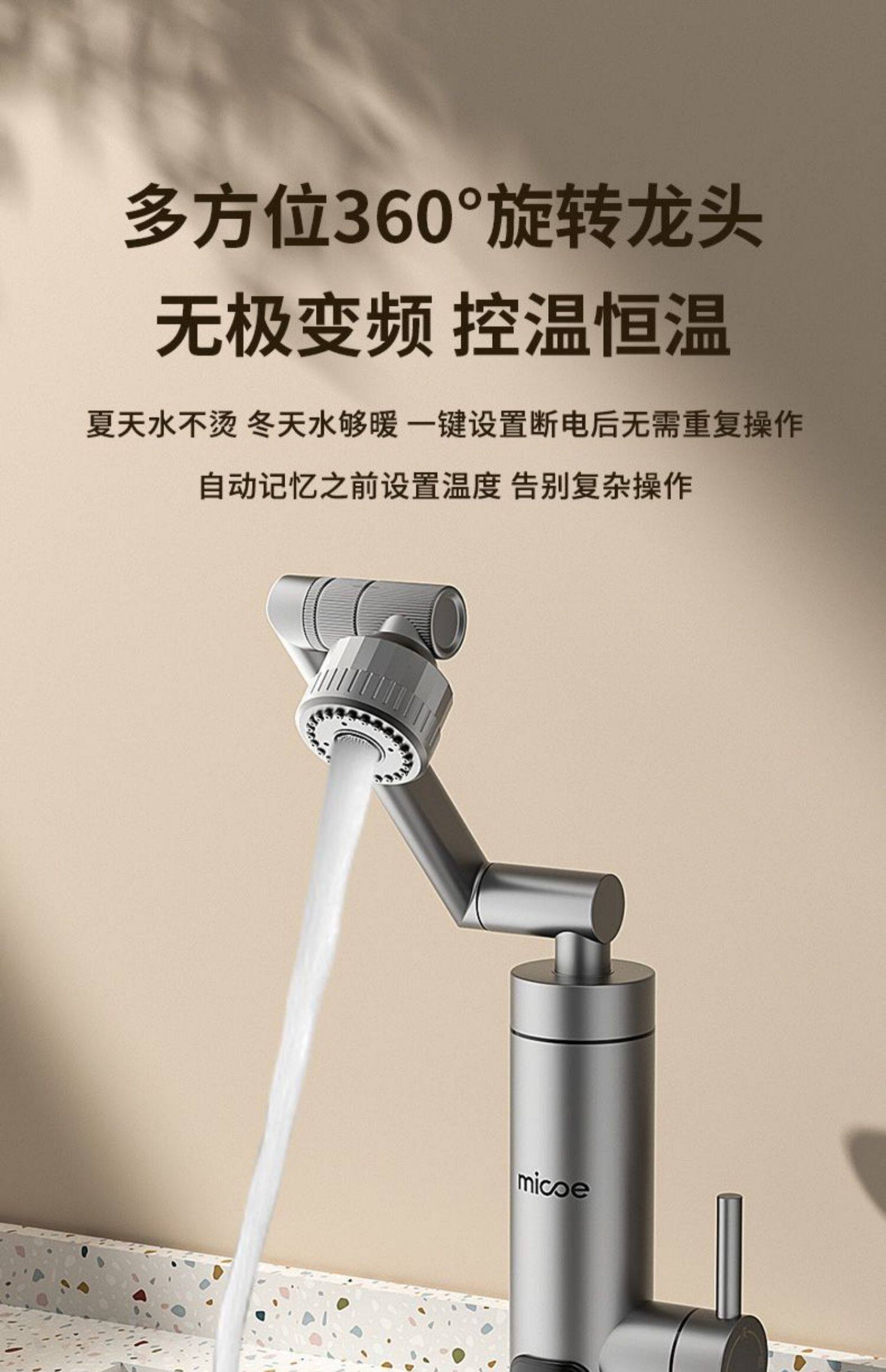 Four Seasons Muge Electric Hot Water Faucet for Home Use with Mechanical Arm and Variable Frequency for Kitchen and Bathroom Tap Water Heater