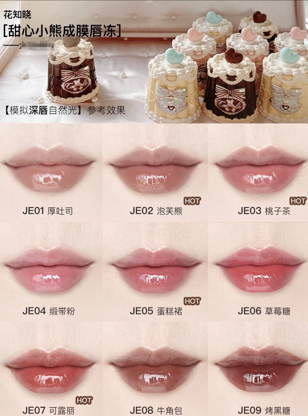 Color Number He01#Thick Toast,He02#Puff Bear,He03#Peach Tea,He04 # Ribbon Powder,He05#Cake Skirt,He06#Strawberry Candy,He07#Keluli,He08#Croissant,He09#Roasted Brown Sugar