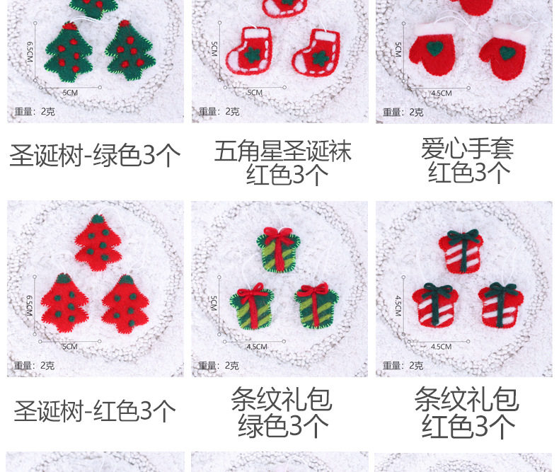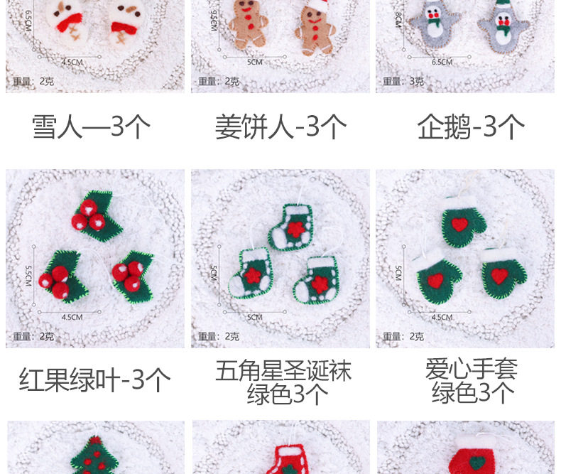 Color Classification Snowman-3,Bell Deer-3 Pieces,Bells - 3 Pieces,Penguin-3,Five-Pointed Star Christmas Stockings-Green 3 Pieces,Love Gloves-Green 3 Pieces,Love Gloves-Red 3 Pieces,Striped Gift Pack-Green 3 Pieces,Christmas Tree-Green 3 Pieces,Christmas Tree-Red 3 Pieces