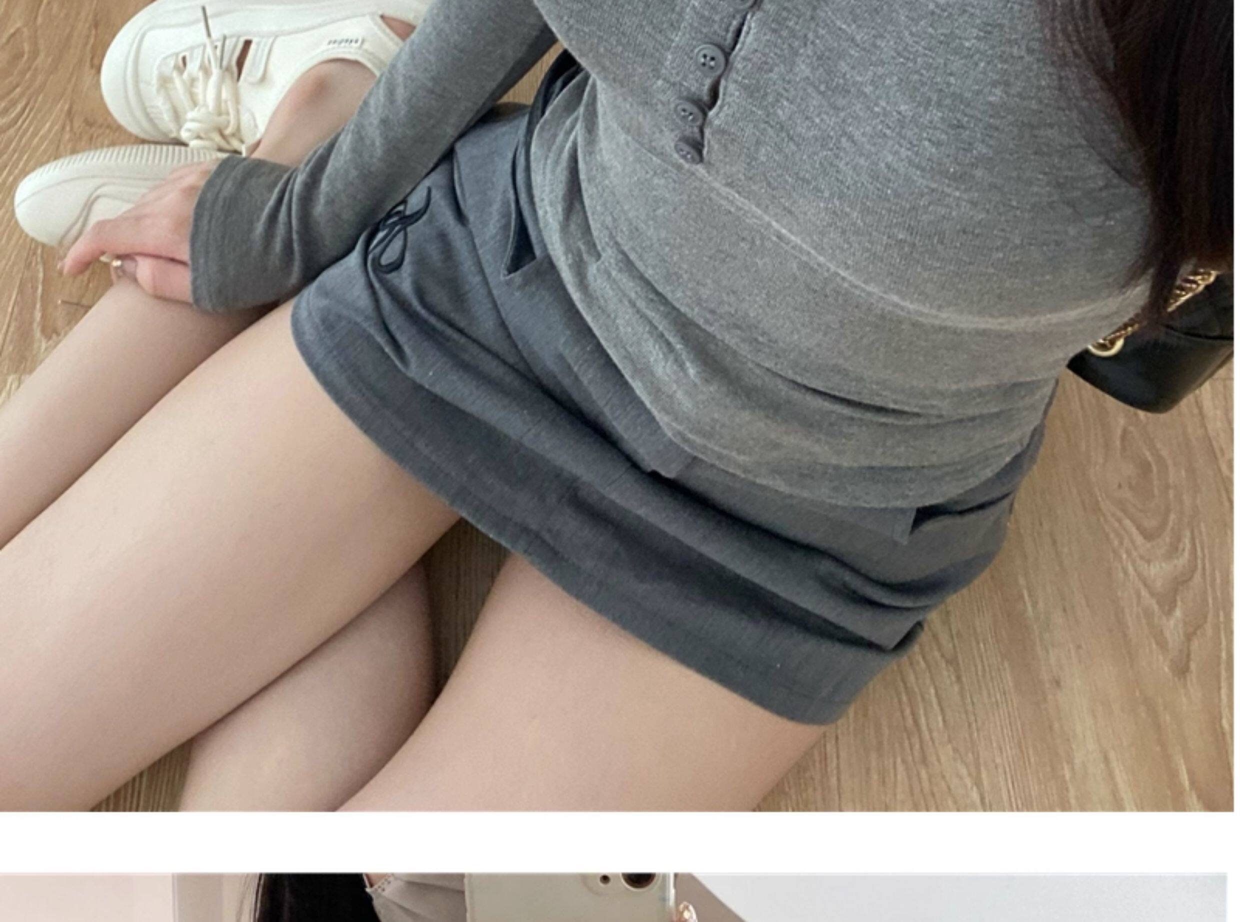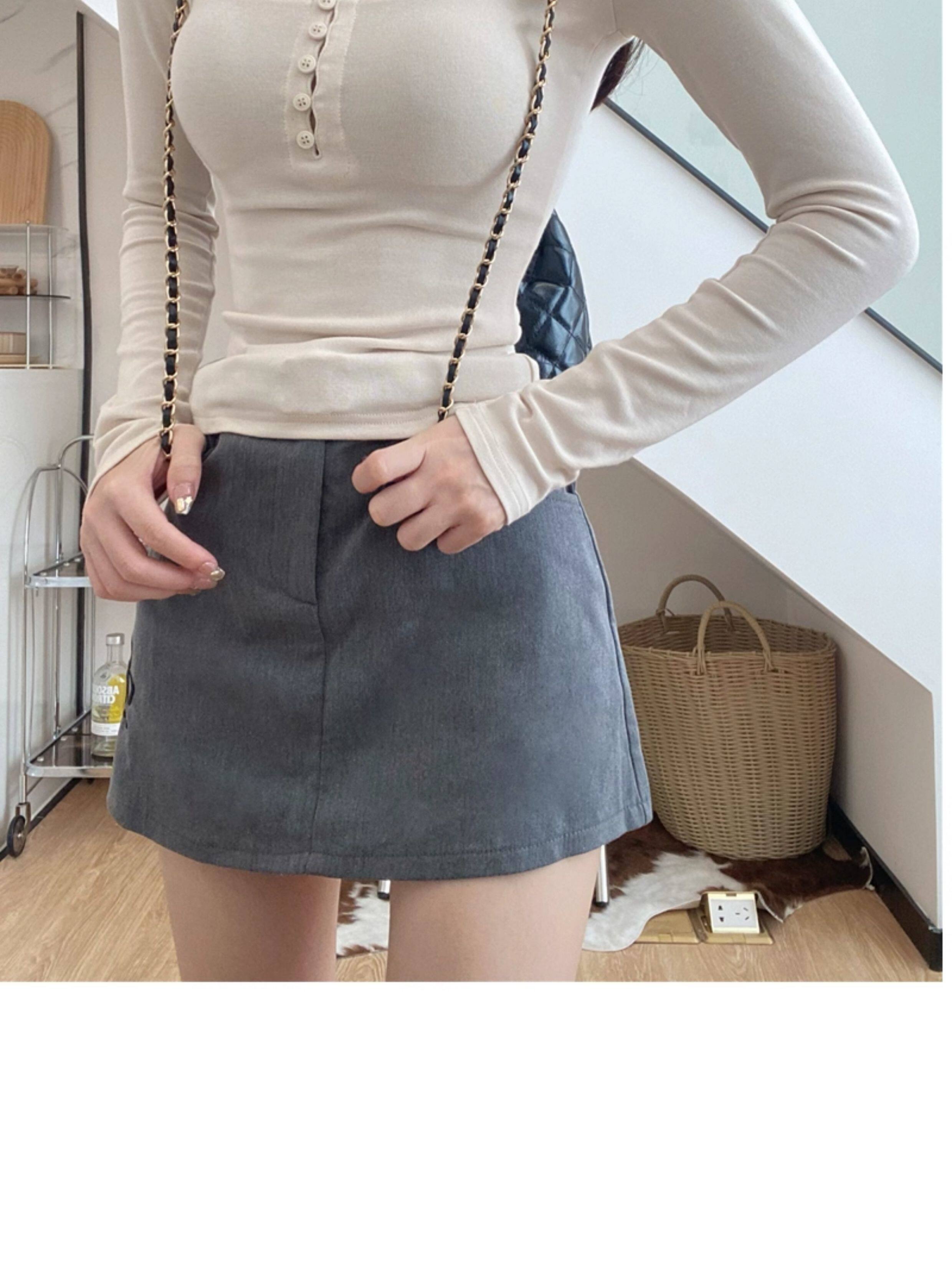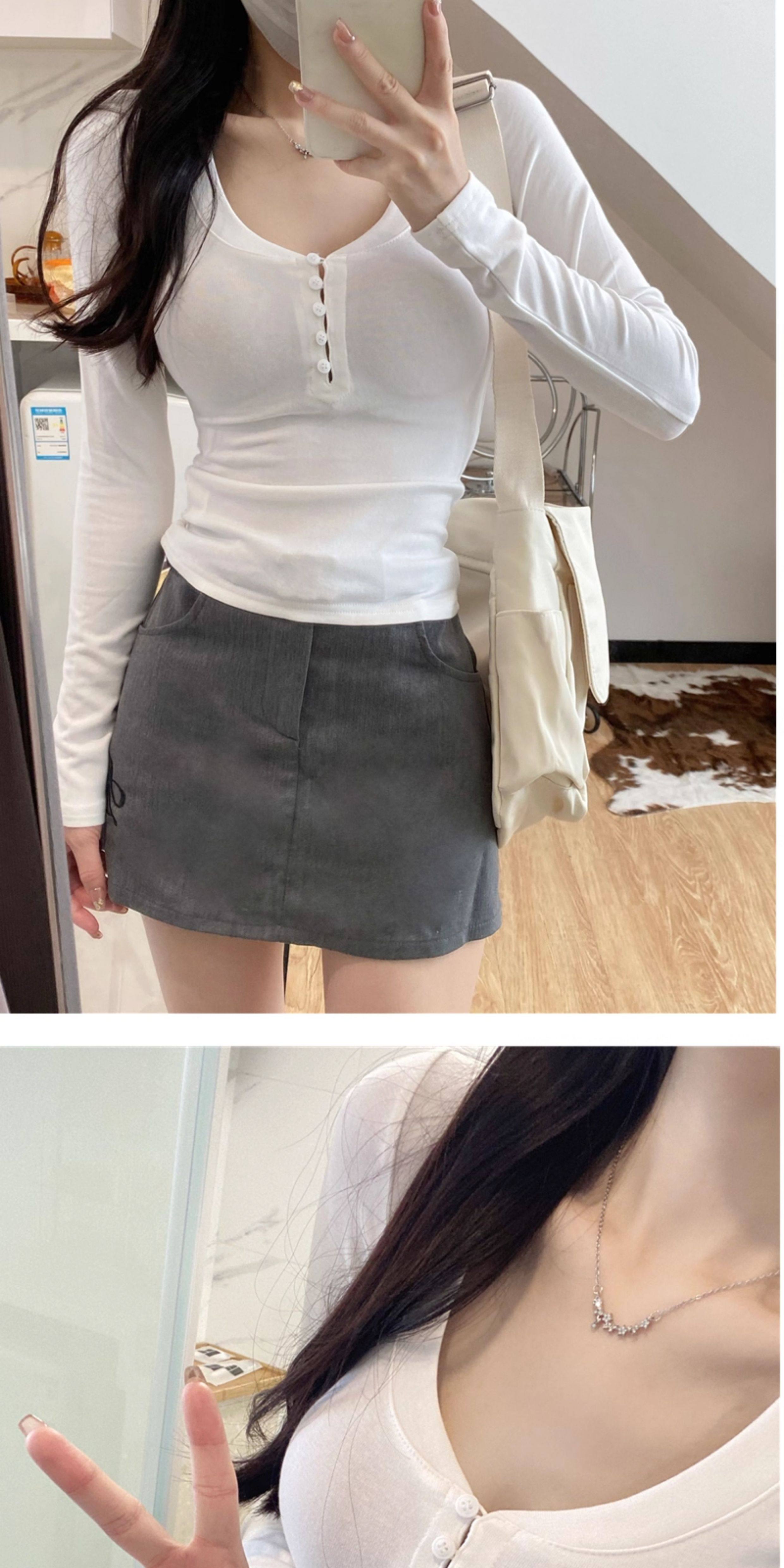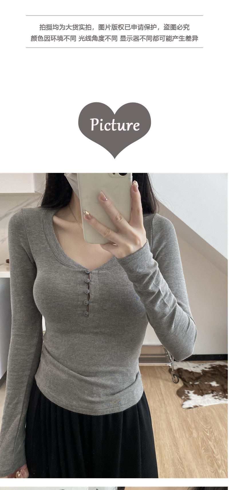 Large U-Neck Gray Long-Sleeve Base Shirt T-Shirt for Women, Autumn and Winter Slim Fit, Flattering and Stylish Inner Top