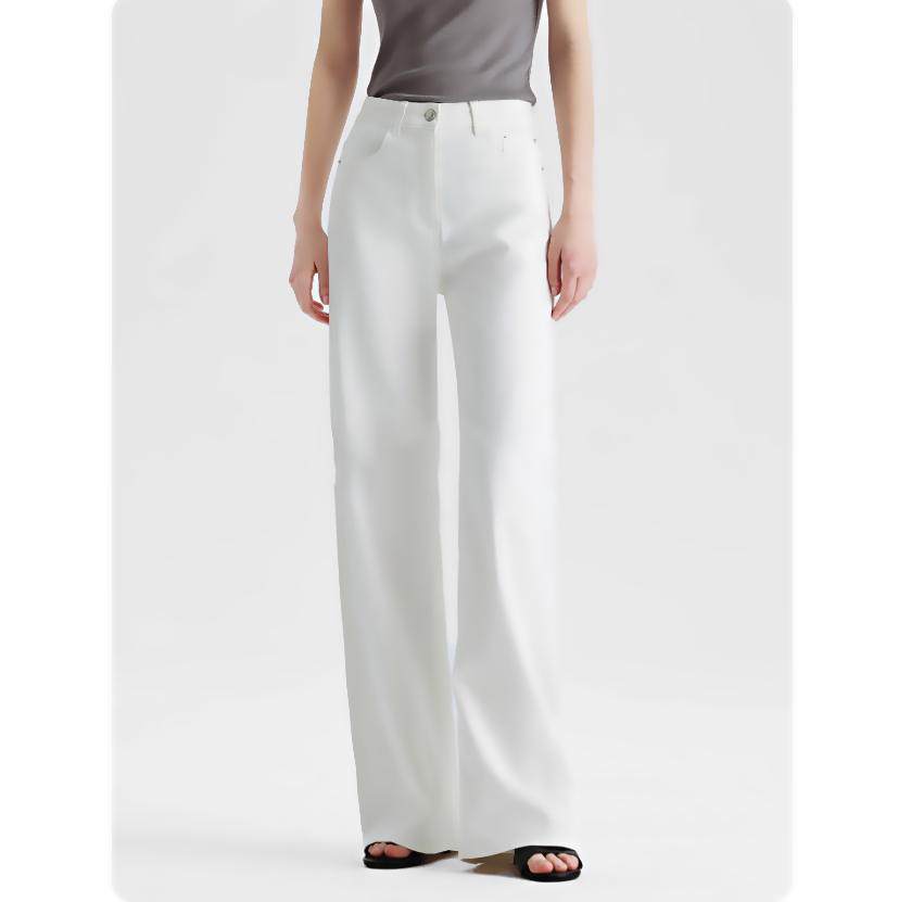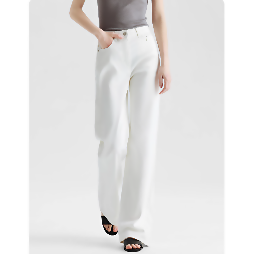 High-Waisted Wide-Leg Casual White Jeans for Women 2025 New Summer Straight Loose Floor-Length Pants